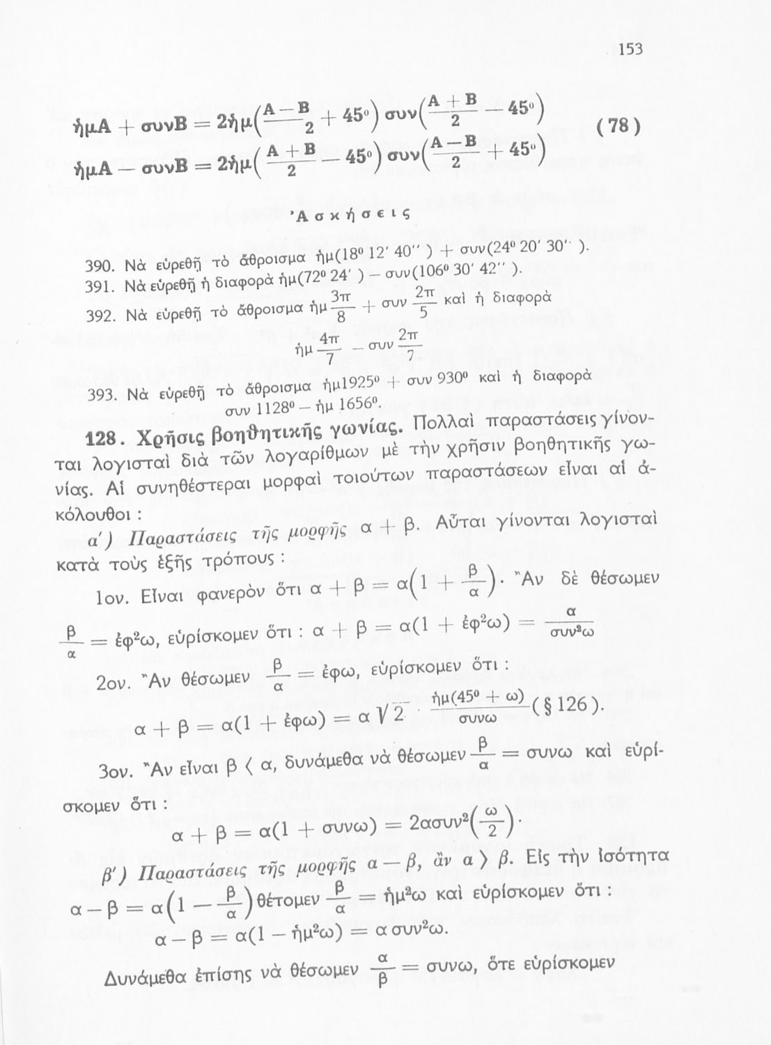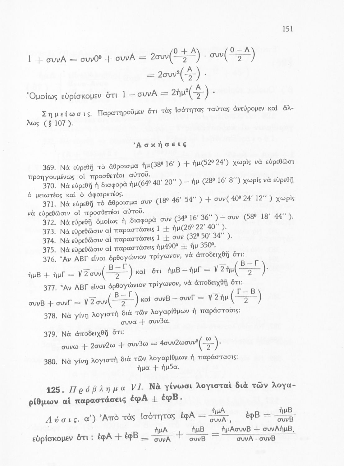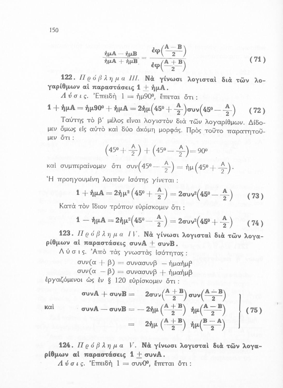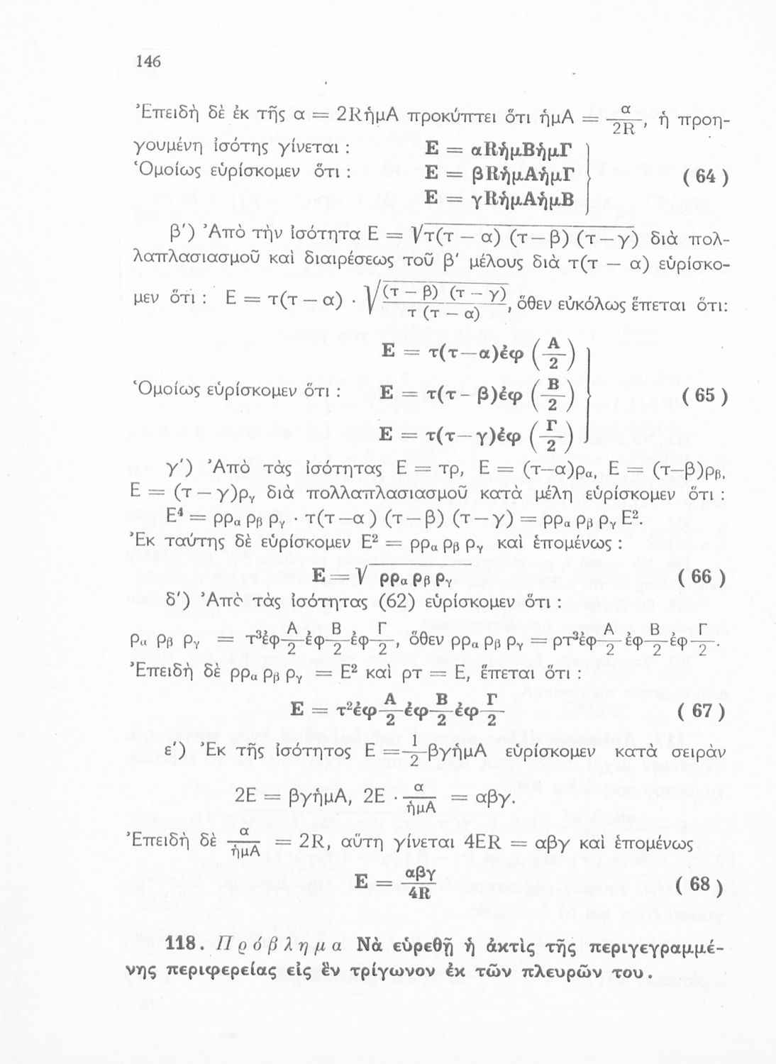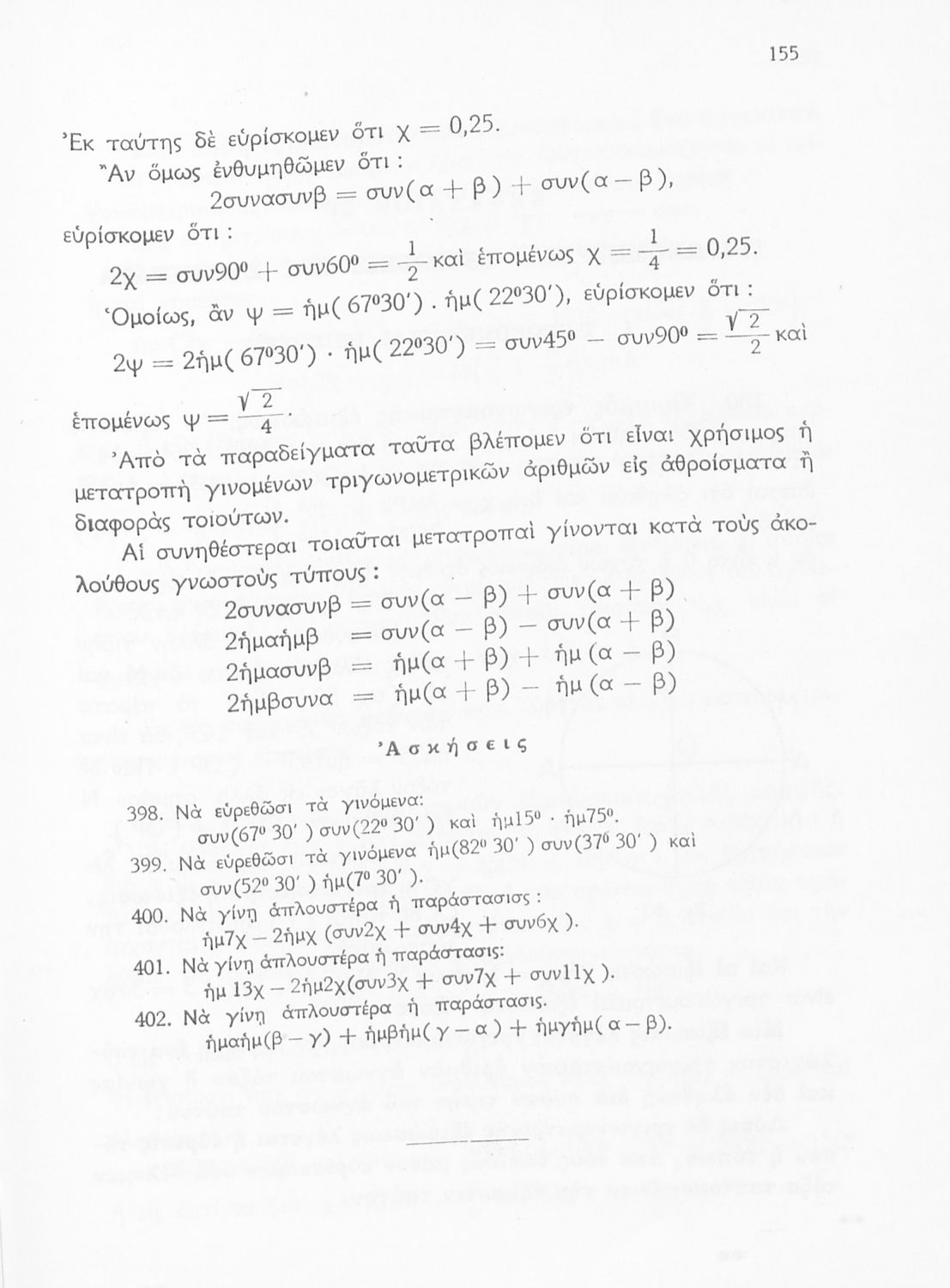 Βαθμίδα εκπαίδευσης: Δευτεροβάθμια Τάξη: Η' Γυμνασίου Μάθημα: Μαθηματικά Γλώσσα: Καθαρεύουσα Παρουσίαση περιεχομένου: Σχολικό εγχειρίδιο Τριγωνομετρίας της ΣΤ΄ Γυμνασίου. Το βιβλίο περιέχει ασκήσεις τριγωνομετρίας. Εισάγει τους μαθητές στα διαφορετικά είδη τριγώνων, τις ιδιότητες και τα χαρακτηριστικά τους καθώς και στον τρόπο υπολογισμού διαφόρων στοιχείων τους όπως το εμβαδόν και η περιφέρεια. |