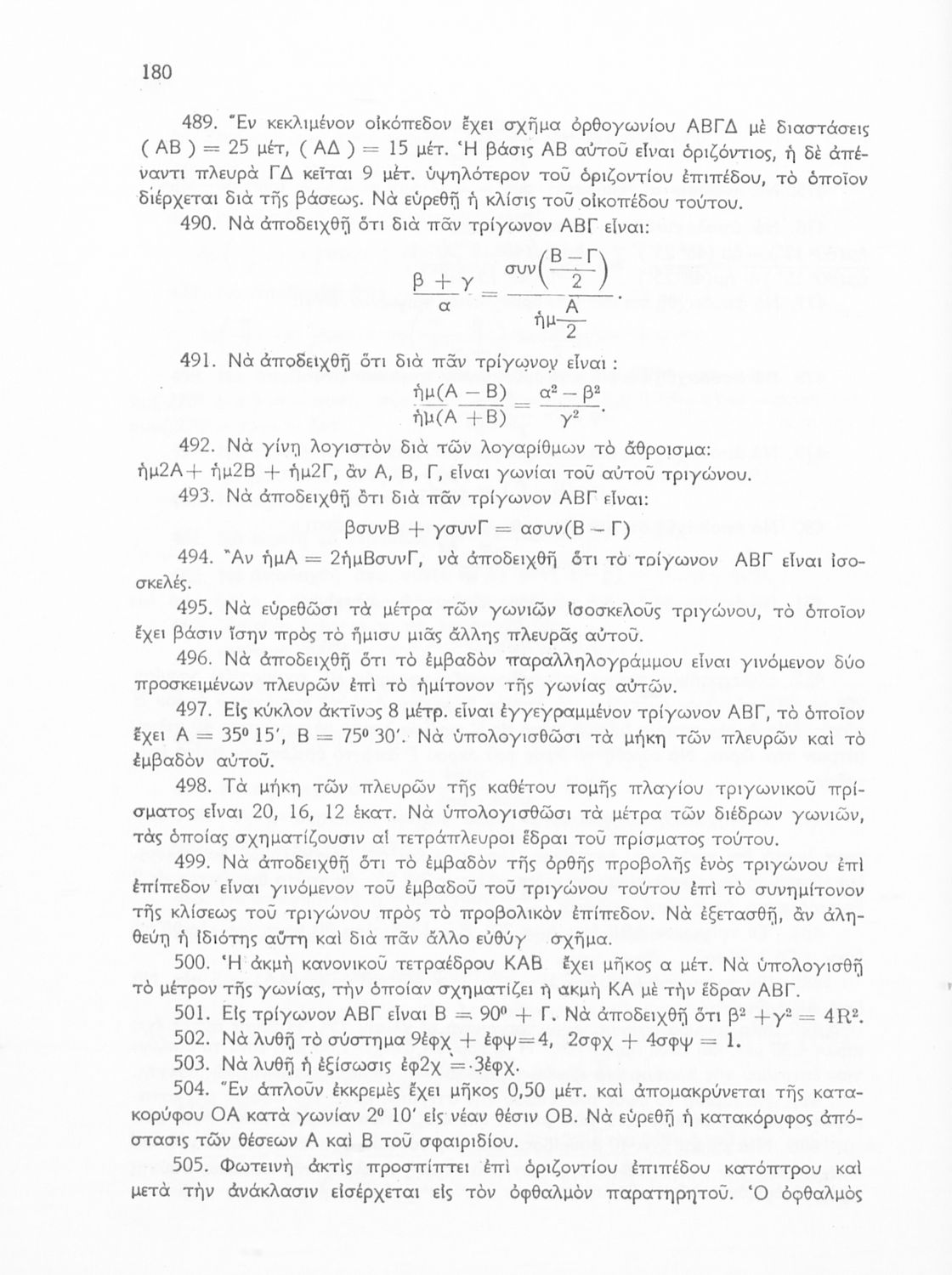 Τριγωνομετρία δια την Η' τάξιν των Γυμνασίων