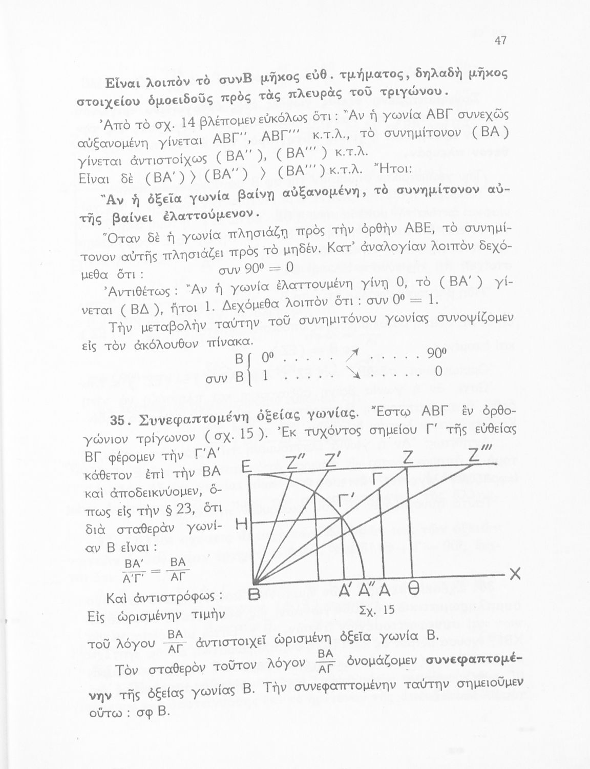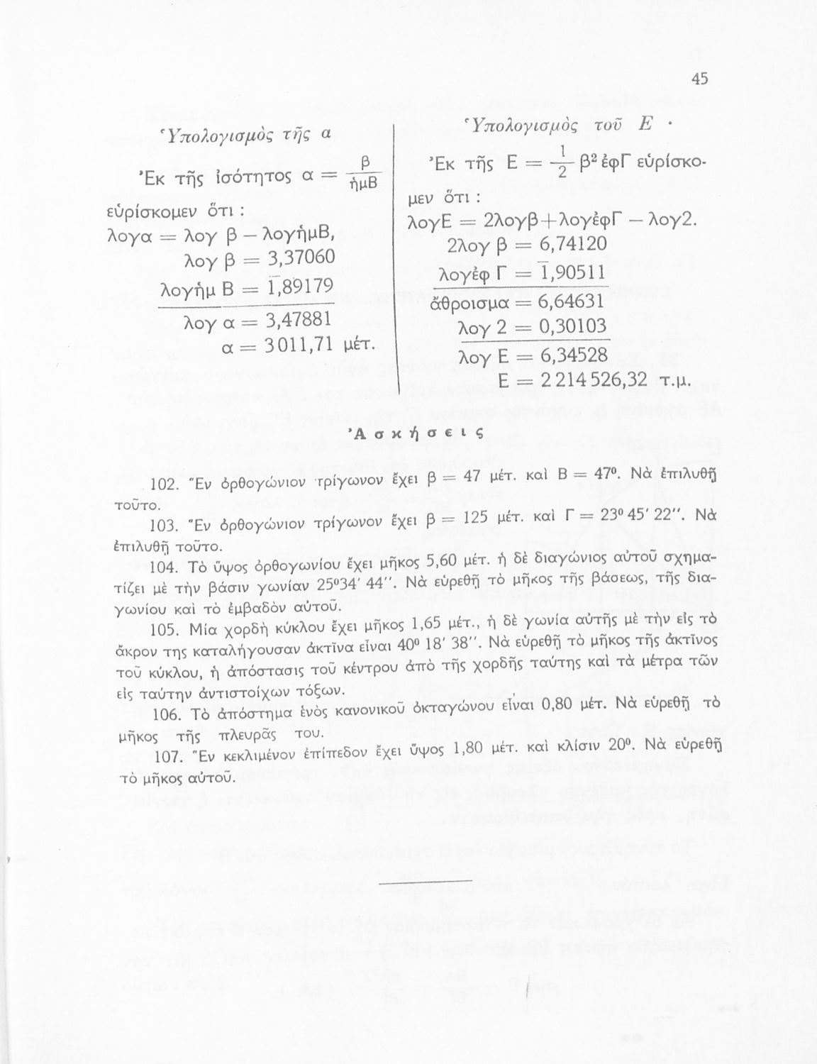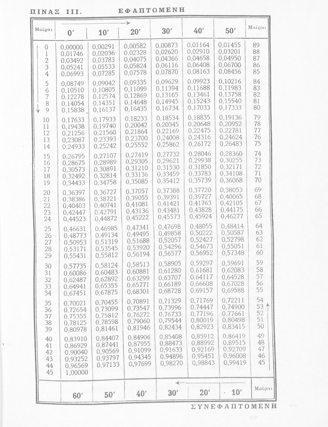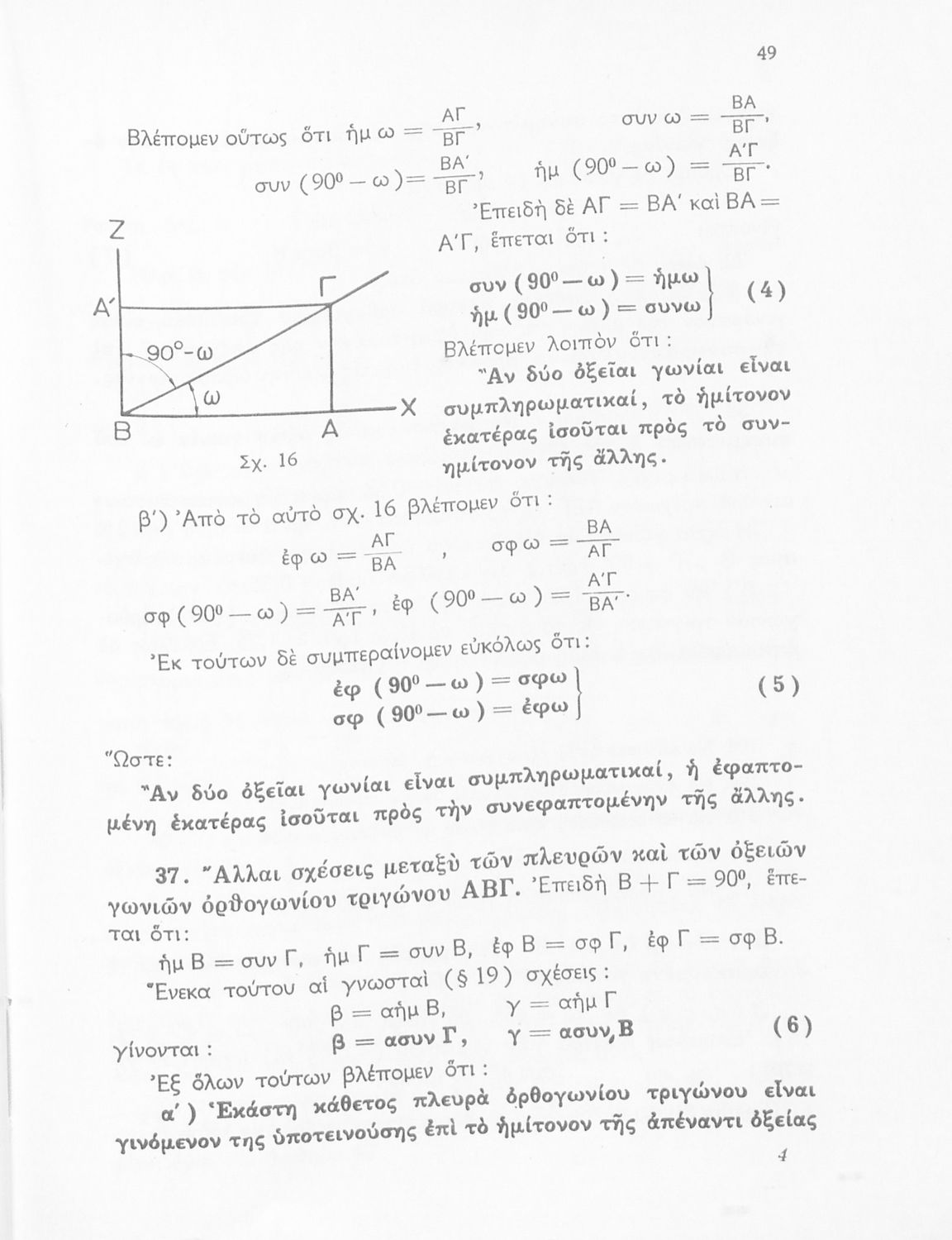 Βαθμίδα εκπαίδευσης: Δευτεροβάθμια Τάξη: Η' Γυμνασίου Μάθημα: Μαθηματικά Γλώσσα: Καθαρεύουσα Παρουσίαση περιεχομένου: Σχολικό εγχειρίδιο Τριγωνομετρίας της ΣΤ΄ Γυμνασίου. Το βιβλίο περιέχει ασκήσεις τριγωνομετρίας. Εισάγει τους μαθητές στα διαφορετικά είδη τριγώνων, τις ιδιότητες και τα χαρακτηριστικά τους καθώς και στον τρόπο υπολογισμού διαφόρων στοιχείων τους όπως το εμβαδόν και η περιφέρεια. |