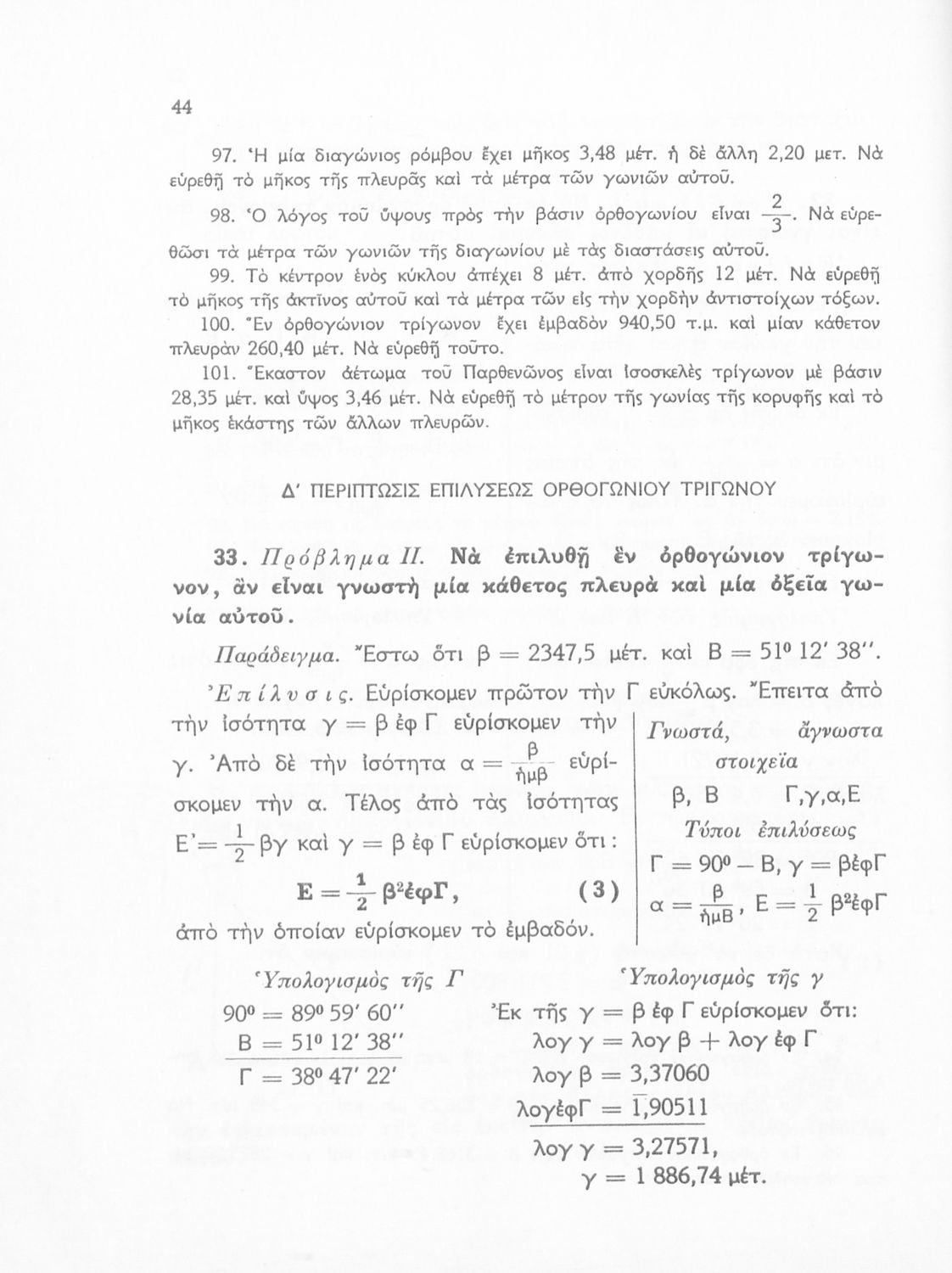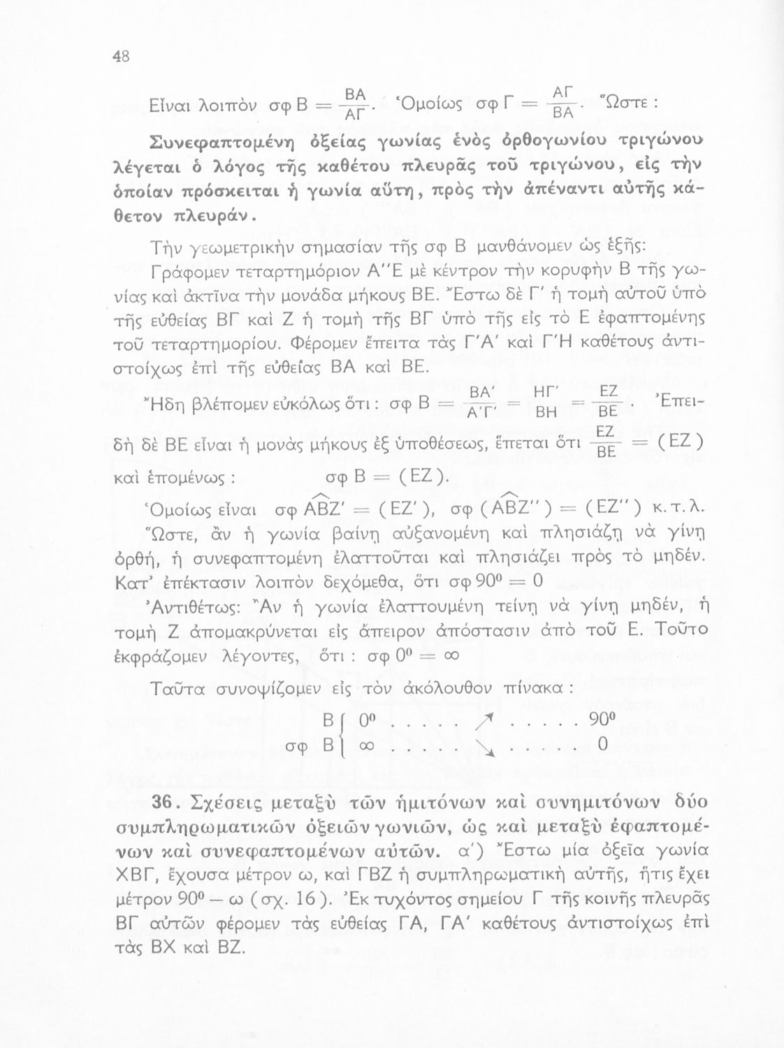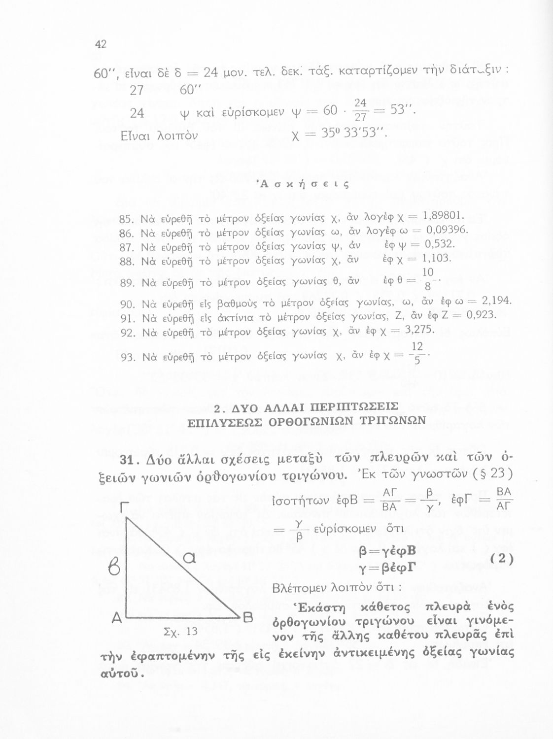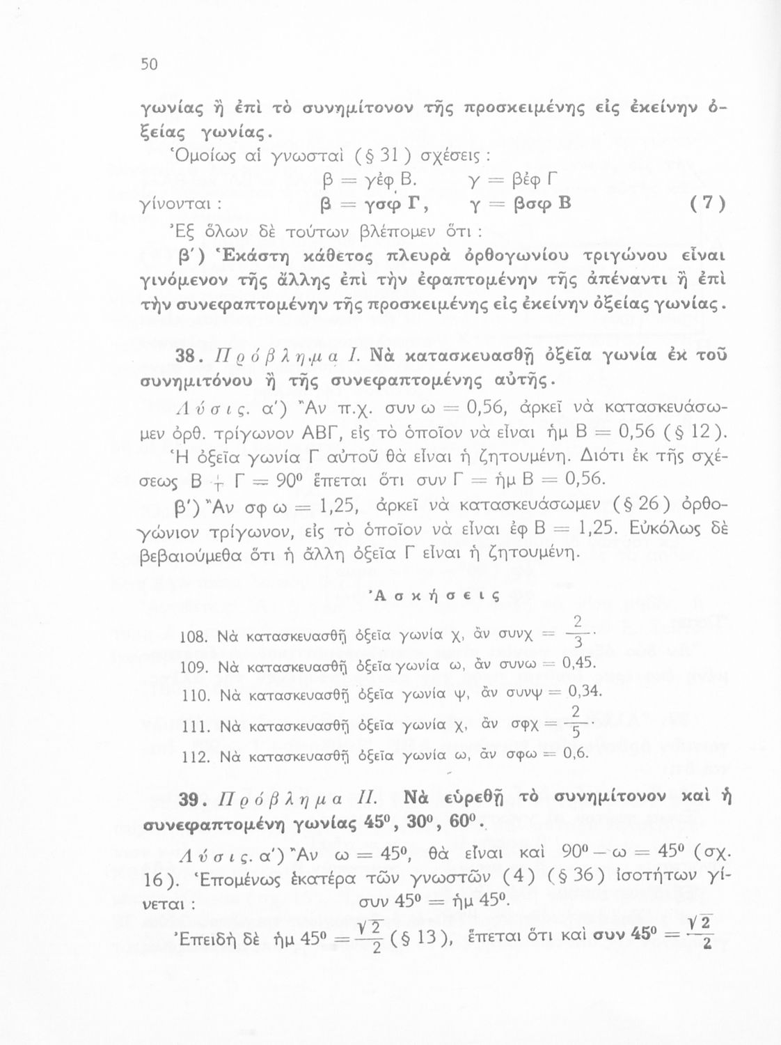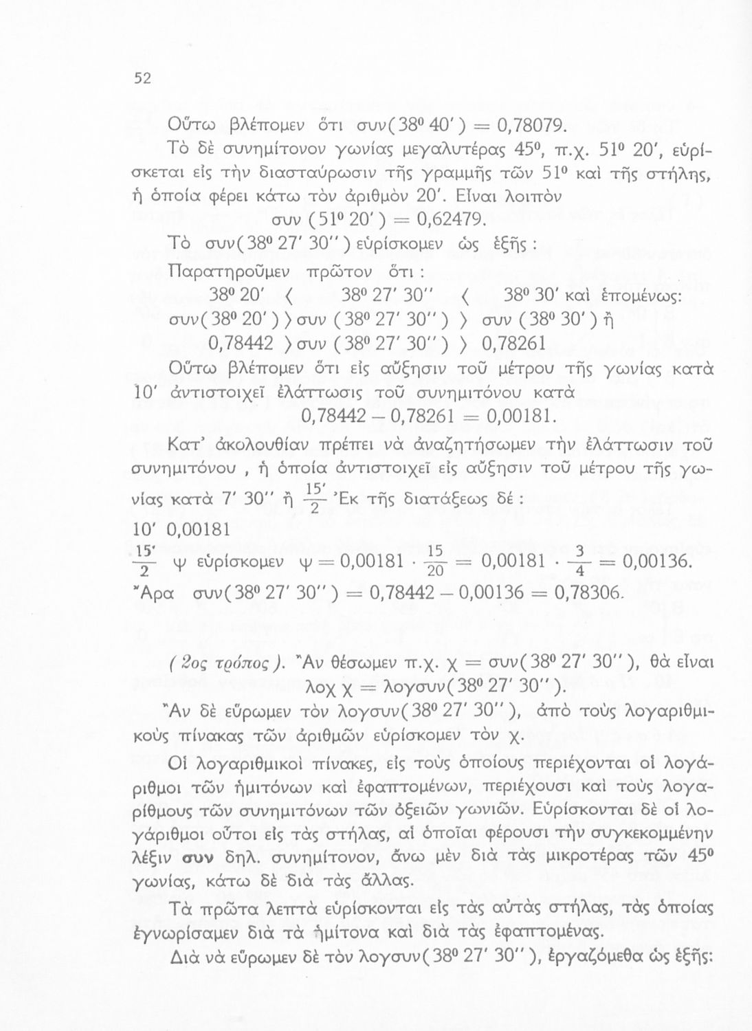 Βαθμίδα εκπαίδευσης: Δευτεροβάθμια Τάξη: Η' Γυμνασίου Μάθημα: Μαθηματικά Γλώσσα: Καθαρεύουσα Παρουσίαση περιεχομένου: Σχολικό εγχειρίδιο Τριγωνομετρίας της ΣΤ΄ Γυμνασίου. Το βιβλίο περιέχει ασκήσεις τριγωνομετρίας. Εισάγει τους μαθητές στα διαφορετικά είδη τριγώνων, τις ιδιότητες και τα χαρακτηριστικά τους καθώς και στον τρόπο υπολογισμού διαφόρων στοιχείων τους όπως το εμβαδόν και η περιφέρεια. |