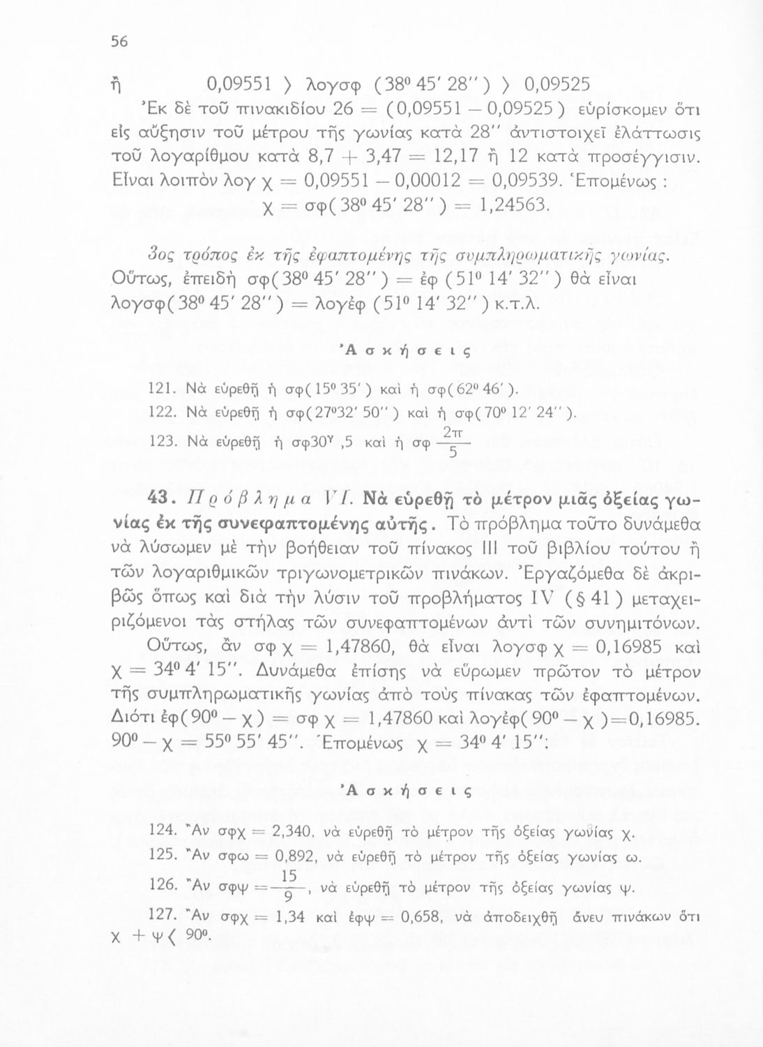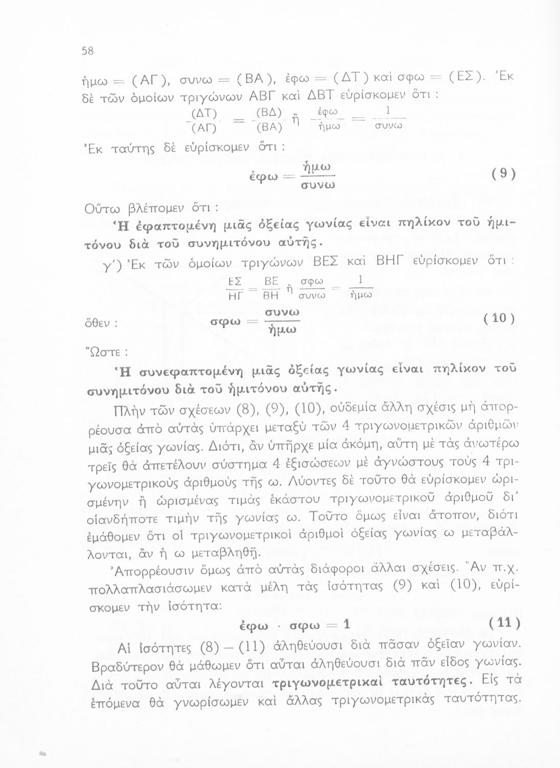 Σχολικό εγχειρίδιο Τριγωνομετρίας της ΣΤ΄ Γυμνασίου. Το βιβλίο περιέχει ασκήσεις τριγωνομετρίας. Εισάγει τους μαθητές στα διαφορετικά είδη τριγώνων, τις ιδιότητες και τα χαρακτηριστικά τους καθώς και στον τρόπο υπολογισμού διαφόρων στοιχείων τους όπως το εμβαδόν και η περιφέρεια.