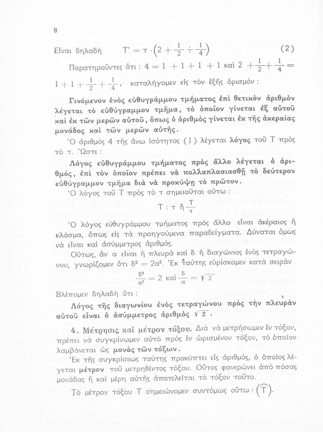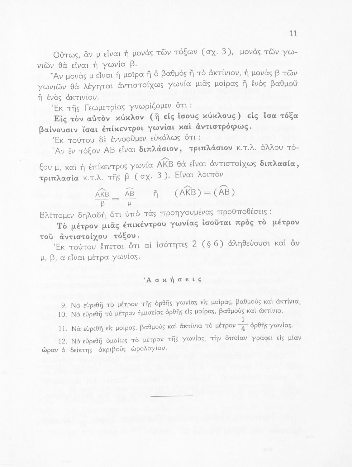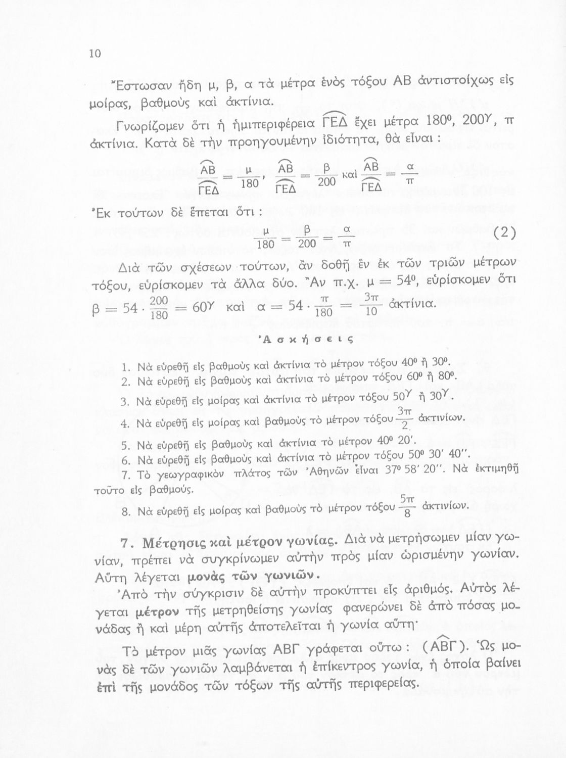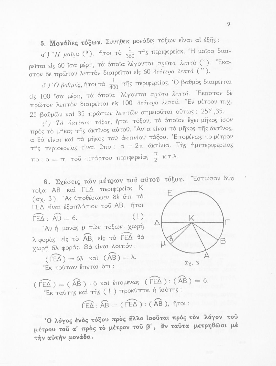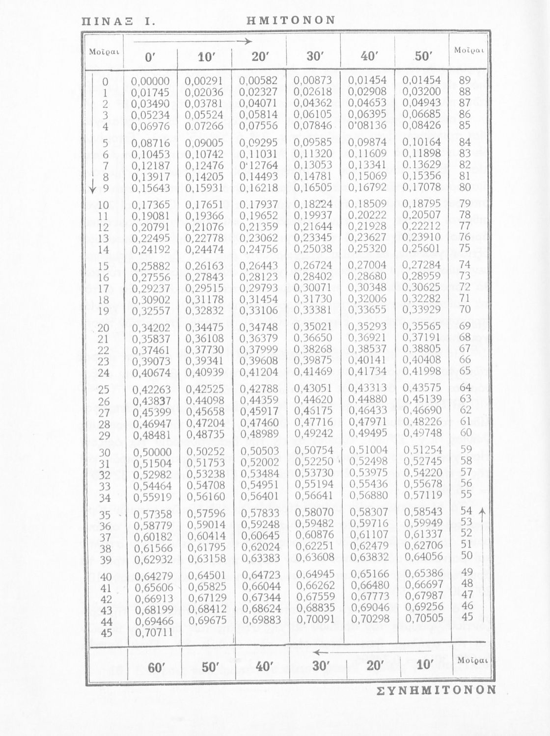 Βαθμίδα εκπαίδευσης: Δευτεροβάθμια Τάξη: Η' Γυμνασίου Μάθημα: Μαθηματικά Γλώσσα: Καθαρεύουσα Παρουσίαση περιεχομένου: Σχολικό εγχειρίδιο Τριγωνομετρίας της ΣΤ΄ Γυμνασίου. Το βιβλίο περιέχει ασκήσεις τριγωνομετρίας. Εισάγει τους μαθητές στα διαφορετικά είδη τριγώνων, τις ιδιότητες και τα χαρακτηριστικά τους καθώς και στον τρόπο υπολογισμού διαφόρων στοιχείων τους όπως το εμβαδόν και η περιφέρεια. |