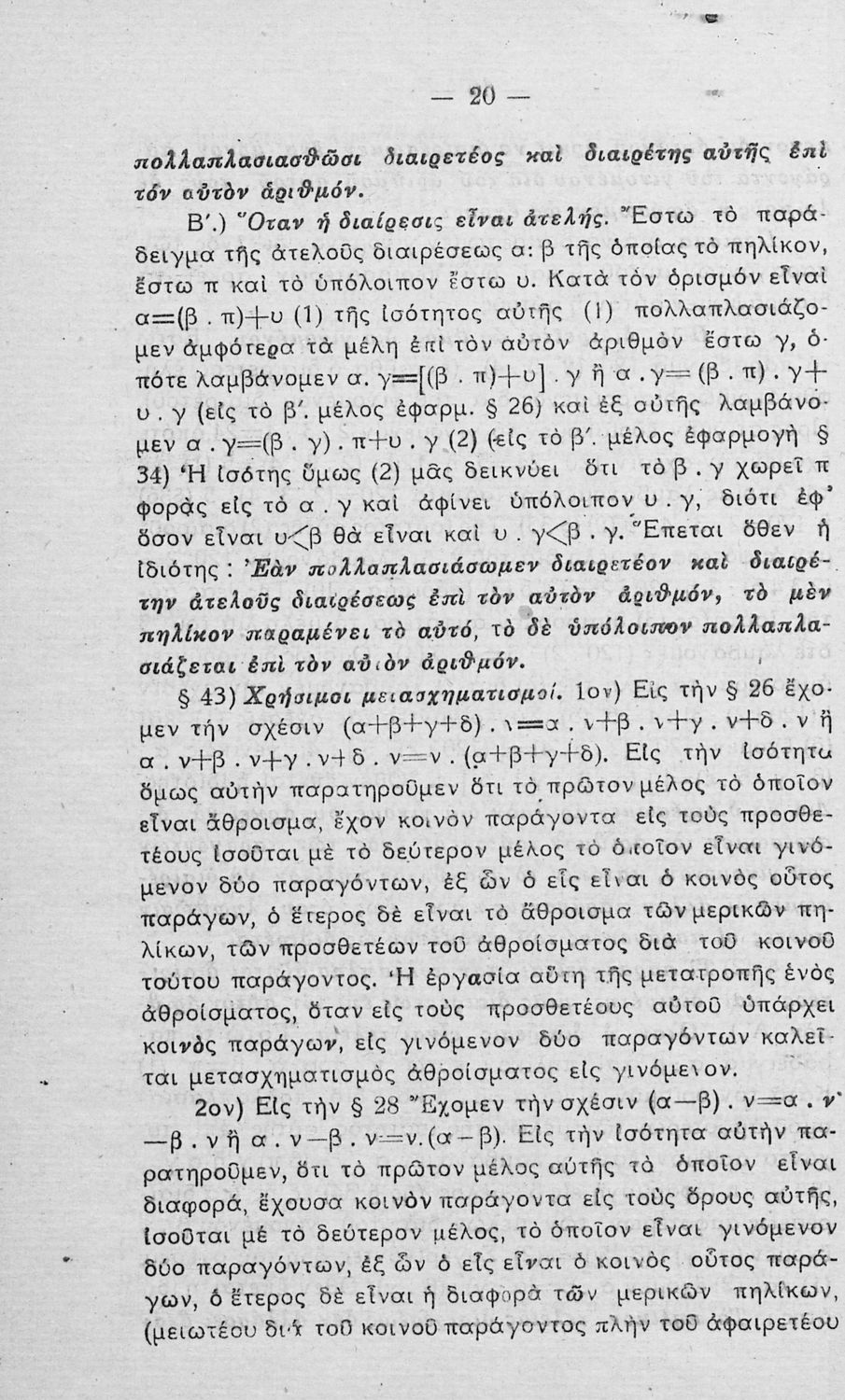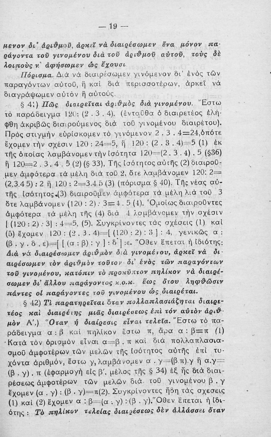 Σχολικό εγχειρίδιο Αριθμητικής Γυμνασίου που είναι χωρισμένο σε θεωρήματα και ασκήσεις και εστιάζει στις αριθμητικές πράξεις και τις ιδιότητές τους.