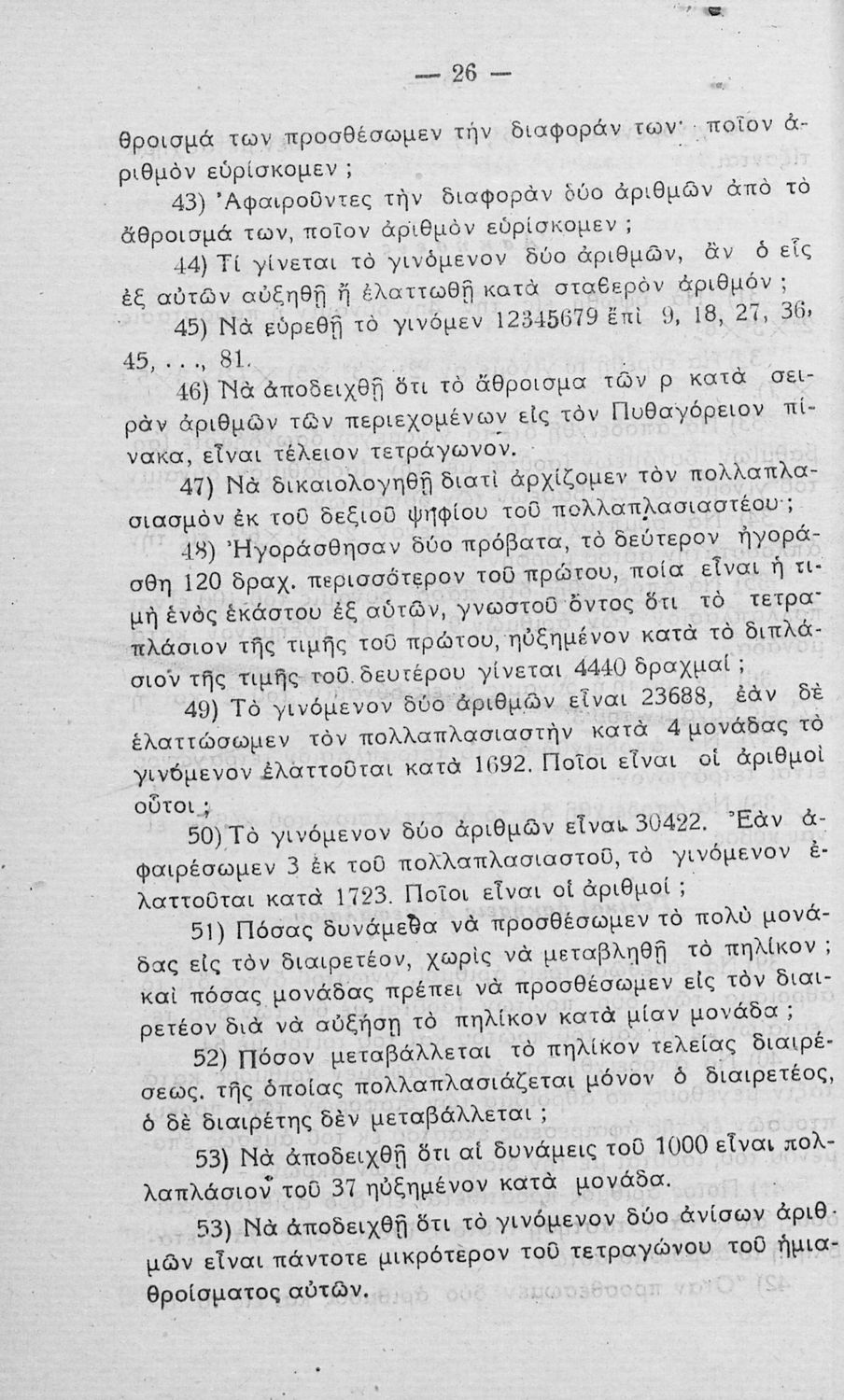 Μαθητικό βοήθημα Μαθηματικών για τους μαθητές των Κλασικών Γυμνασίων και Πρακτικών Λυκείων και τους υποψήφιους των Ανωτάτων Σχολών που πραγματεύεται ζητήματα θεωρητικής αριθμητικής και εστιάζει στις ιδιότητες των ακέραιων αριθμών, τα κλάσματα και τις τετραγωνικές ρίζες.