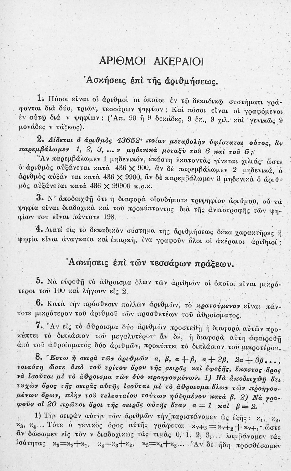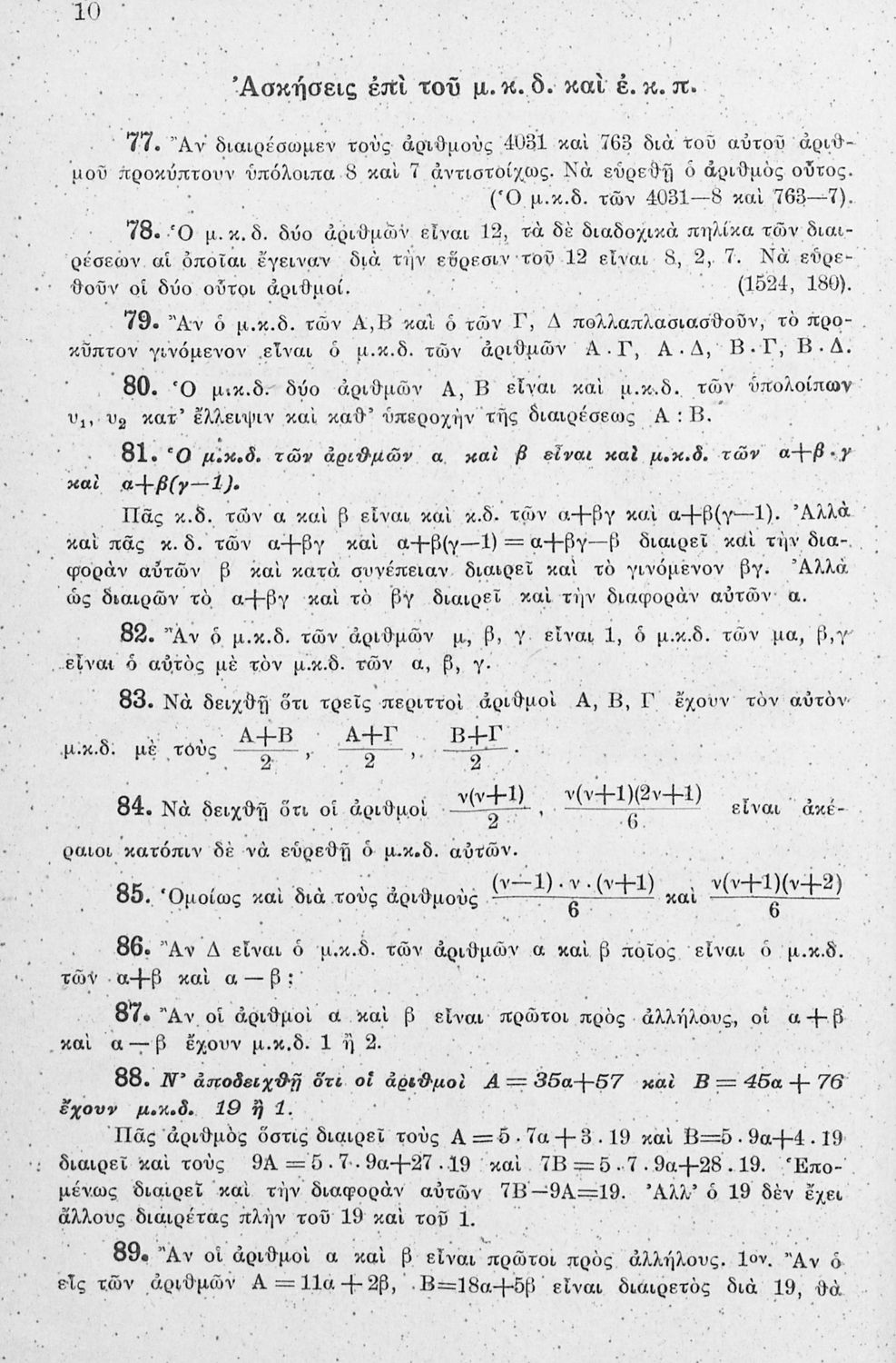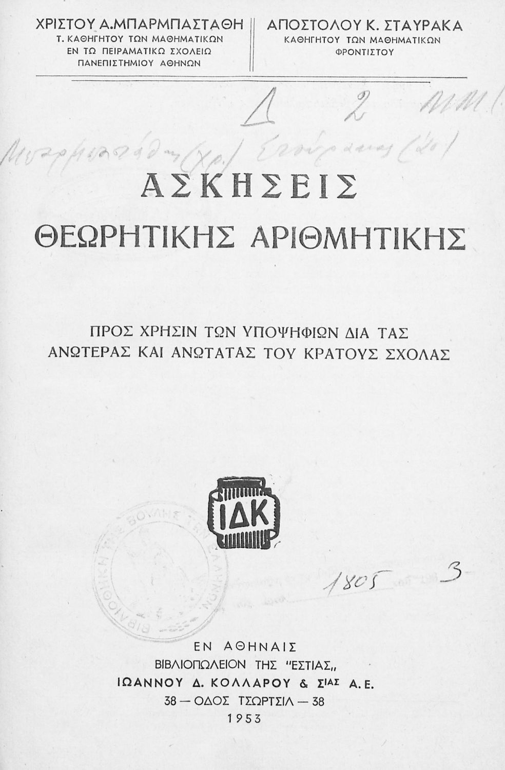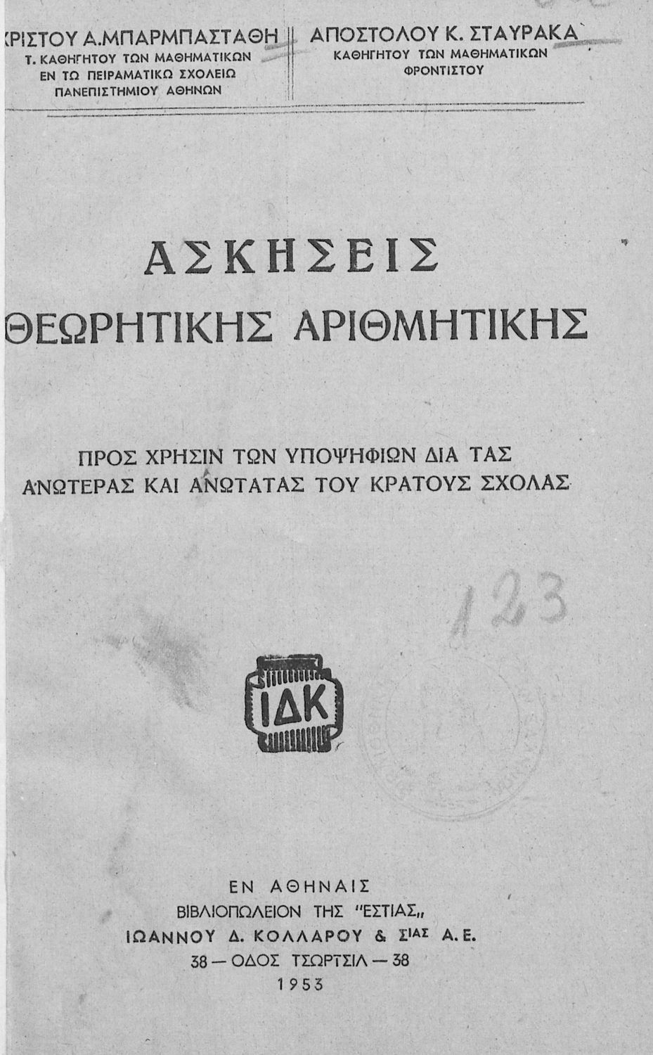 Μαθητικό βοήθημα Αριθμητικής για τους υποψήφιους των Ανωτέρων και Ανωτάτων Σχολών του κράτους που περιέχει λύσεις ασκήσεων θεωρητικής αριθμητικής.