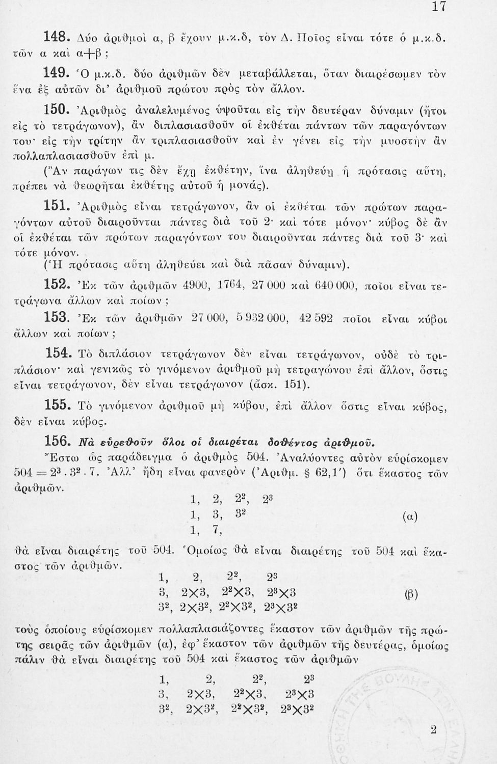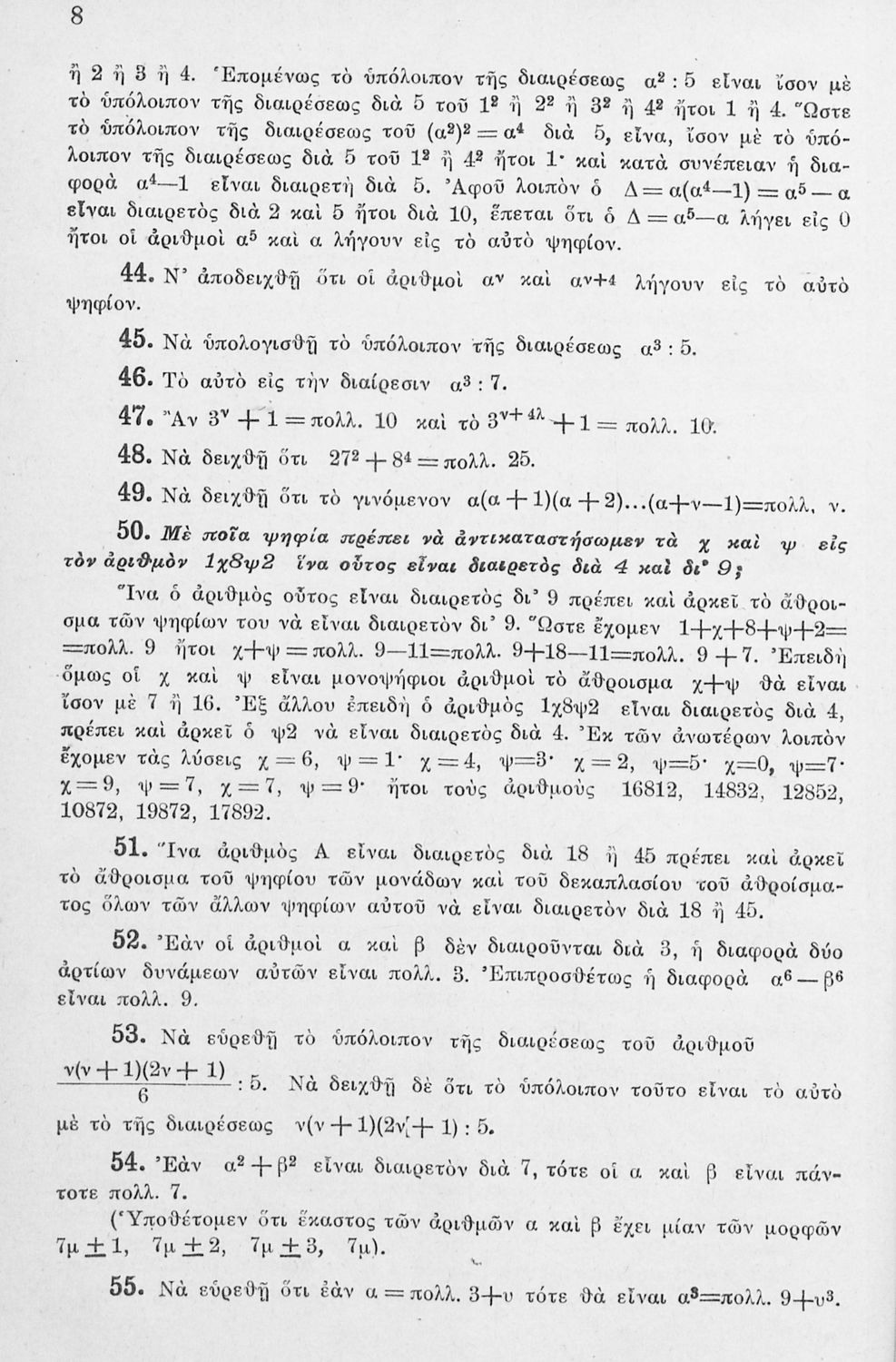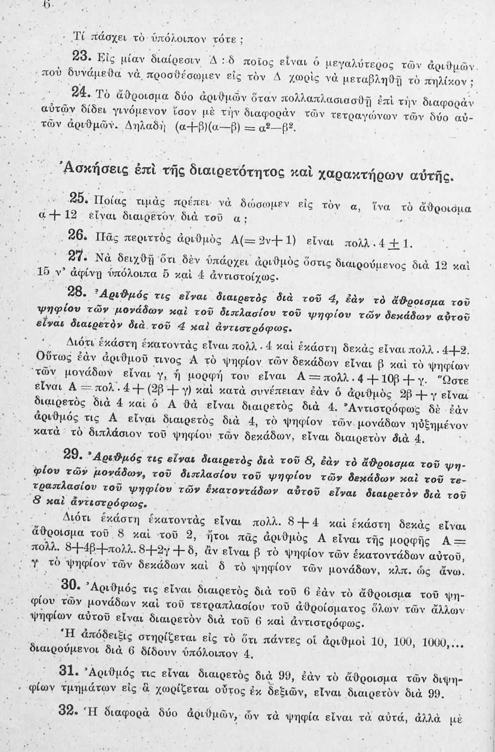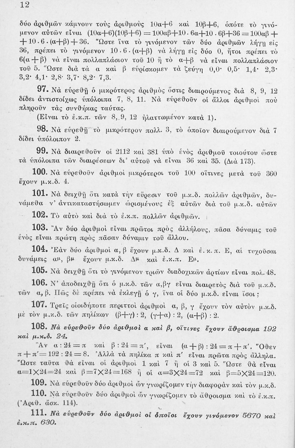 Μαθητικό βοήθημα Αριθμητικής για τους υποψήφιους των Ανωτέρων και Ανωτάτων Σχολών του κράτους που περιέχει λύσεις ασκήσεων θεωρητικής αριθμητικής.