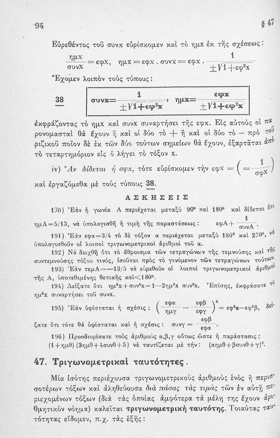 Στοιχεία Τριγωνομετρίας προς χρήσιν των μαθητών της Δ', Ε', & ΣΤ΄ τάξεως των Γυμνασίων πρακτικής κατευθύνσεως