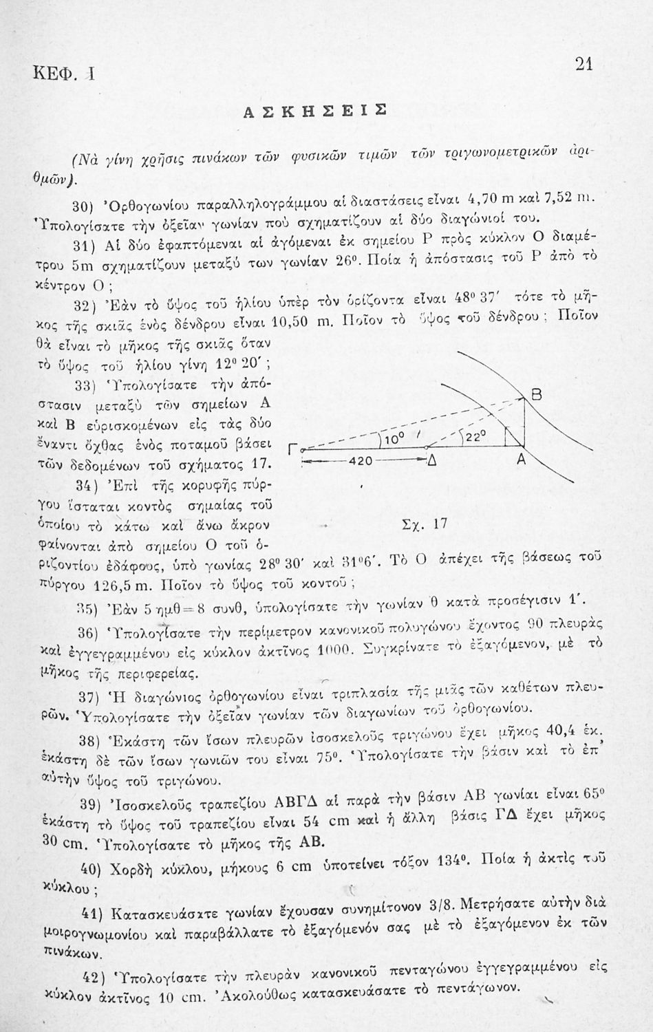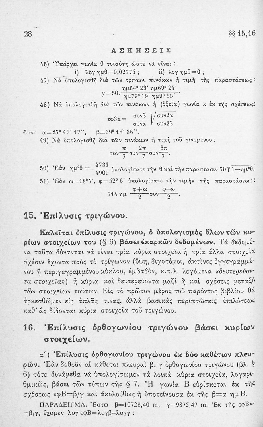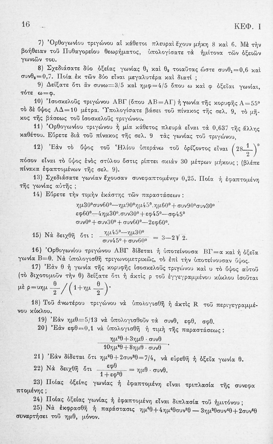Μαθητικό βοήθημα Τριγωνομετρίας για τους μαθητές των Δ', Ε' & ΣΤ΄ τάξεων του Γυμνασίου. Το βιβλίο περιέχει ασκήσεις υπολογισμού τριγωνομετρικών στοιχείων, όπως το εμβαδόν και η περίμετρος.