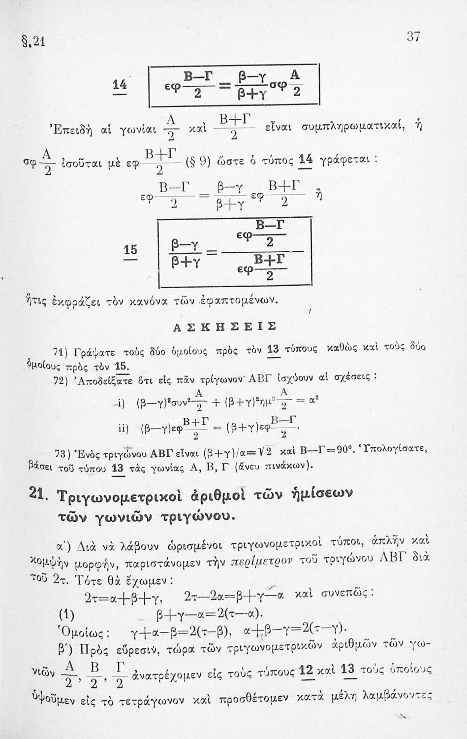 Στοιχεία Τριγωνομετρίας προς χρήσιν των μαθητών της Δ', Ε', & ΣΤ΄ τάξεως των Γυμνασίων πρακτικής κατευθύνσεως