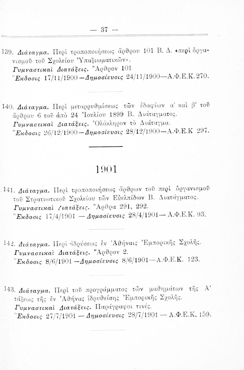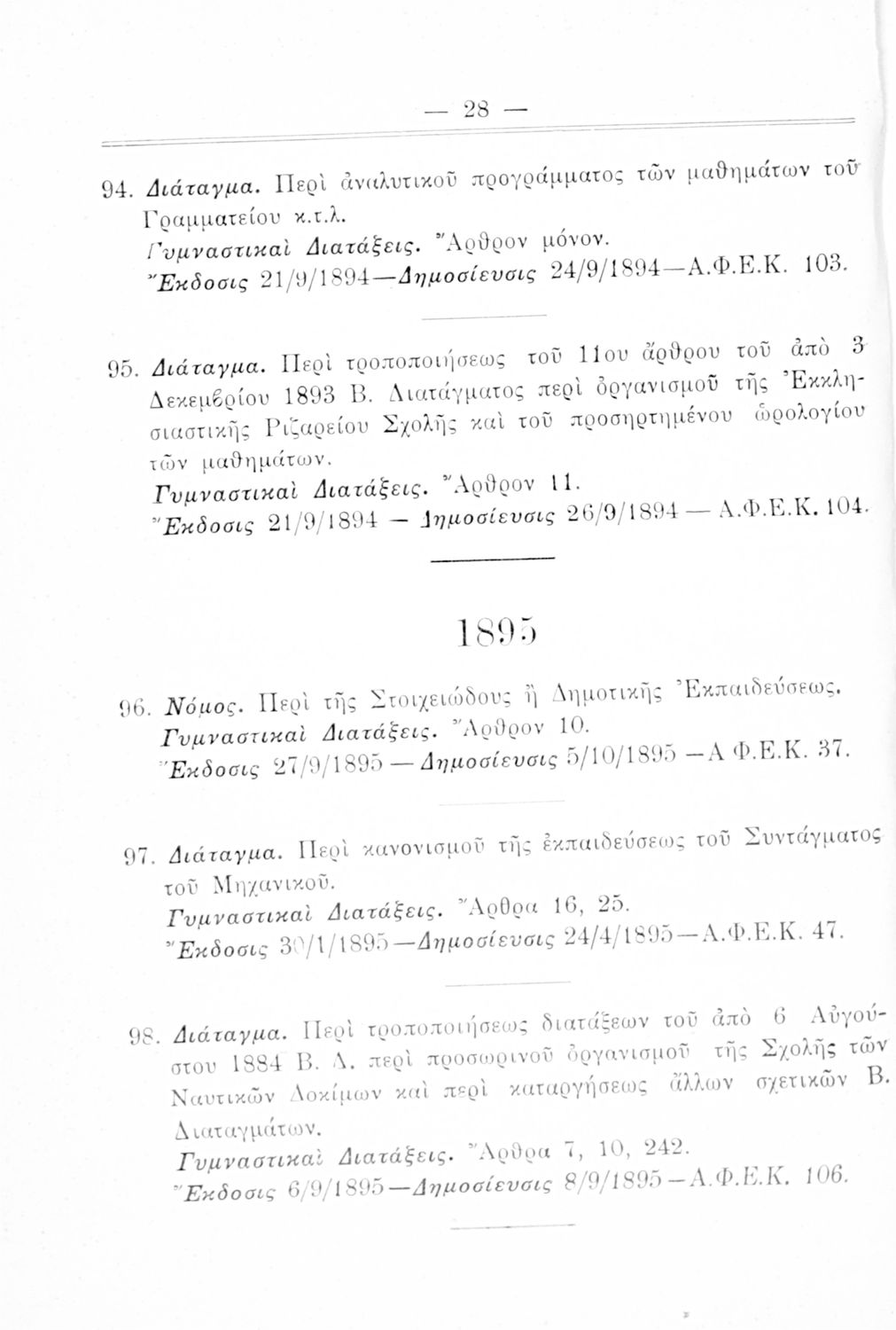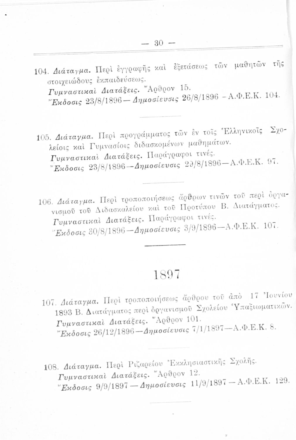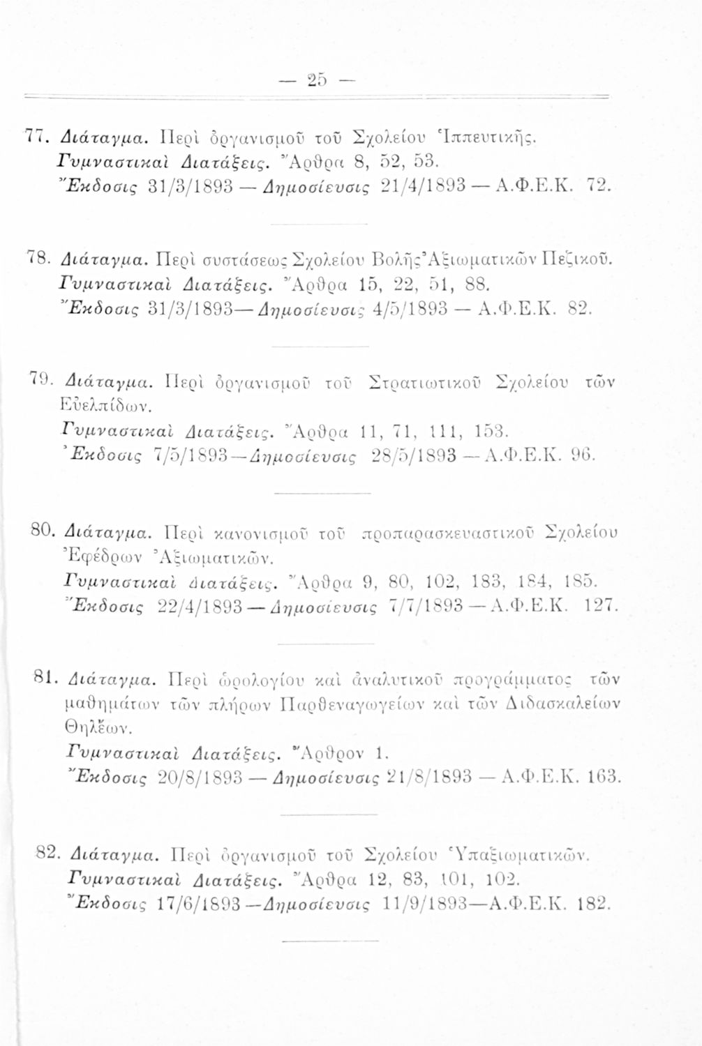 Παρουσίαση περιεχομένου: Καταγραφή νόμων, διαταγμάτων και γυμναστικών διατάξεων που αφορούν την περίοδο 1834-1933.