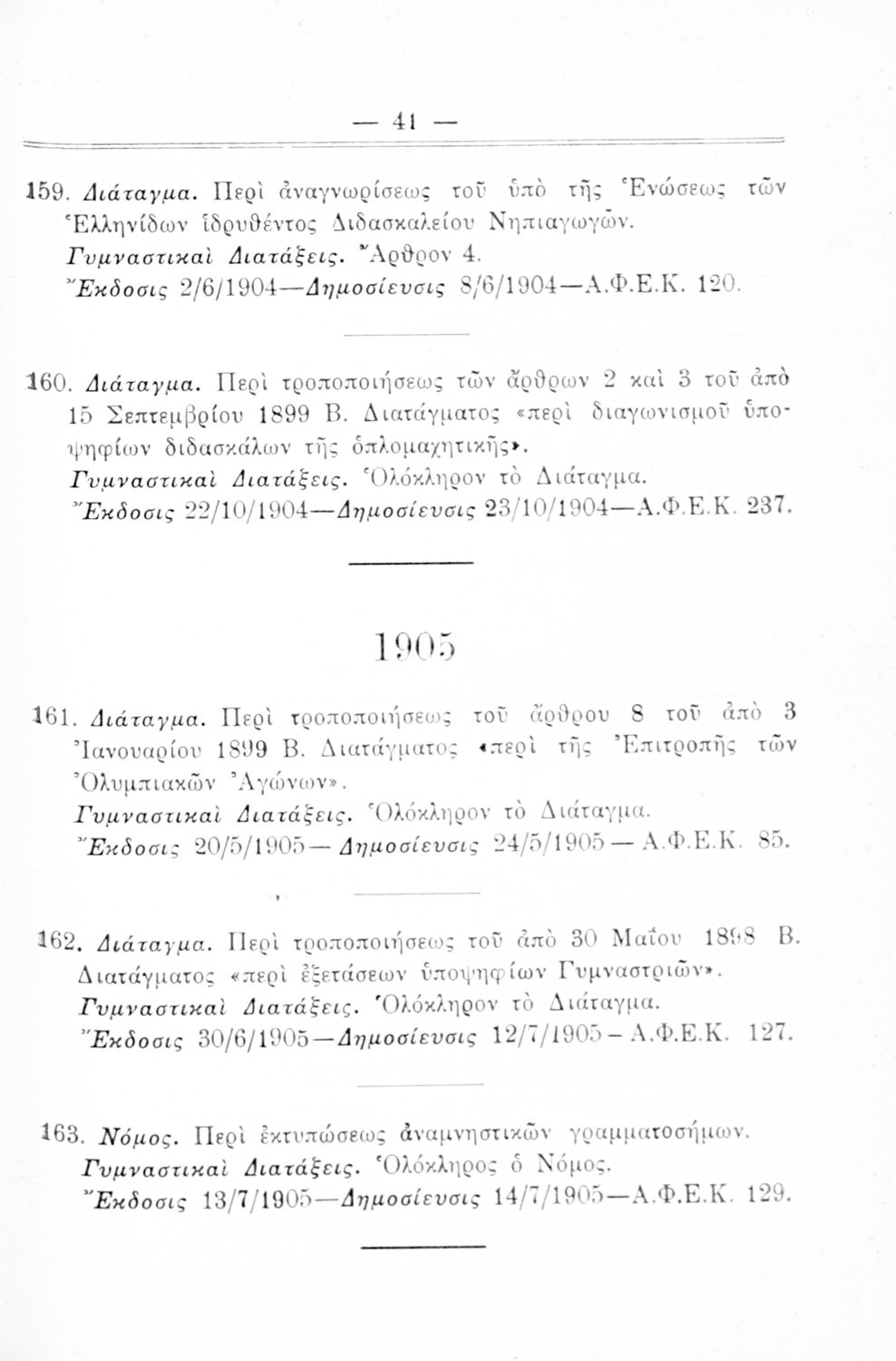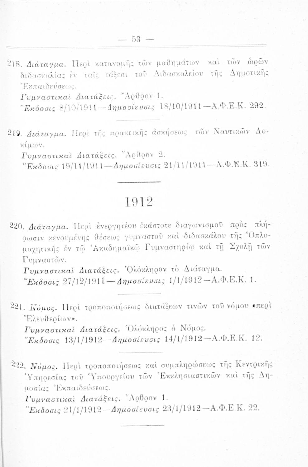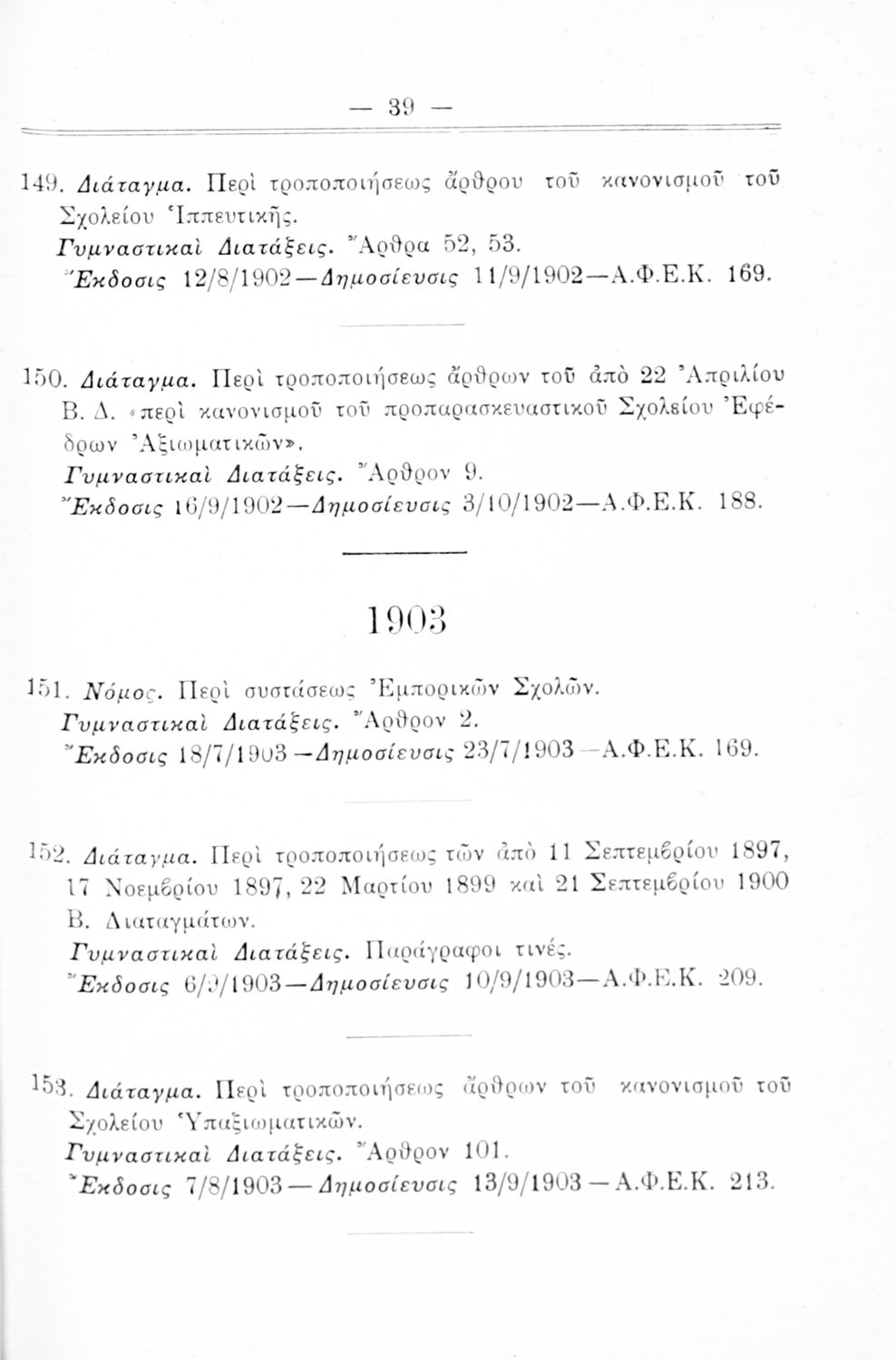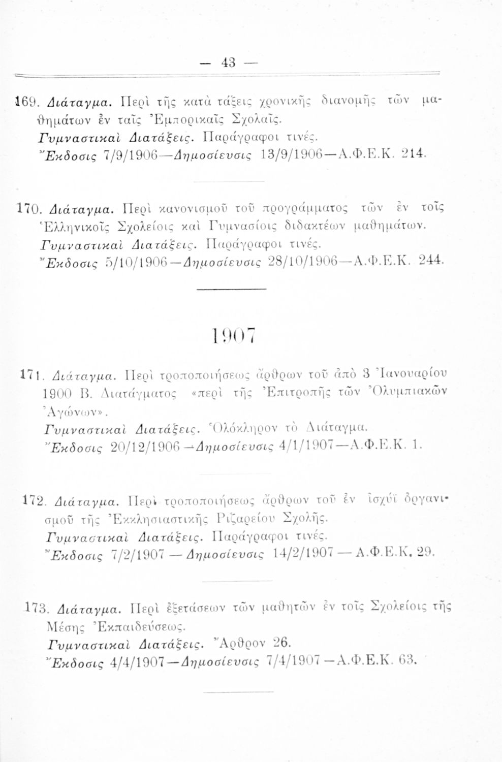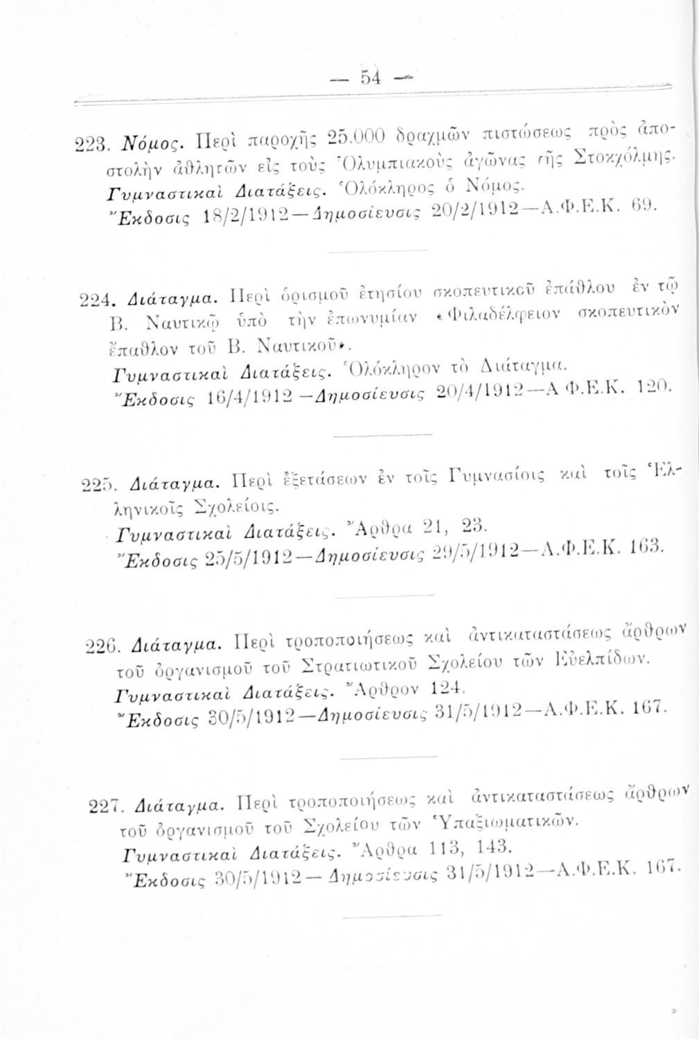 Παρουσίαση περιεχομένου: Καταγραφή νόμων, διαταγμάτων και γυμναστικών διατάξεων που αφορούν την περίοδο 1834-1933.