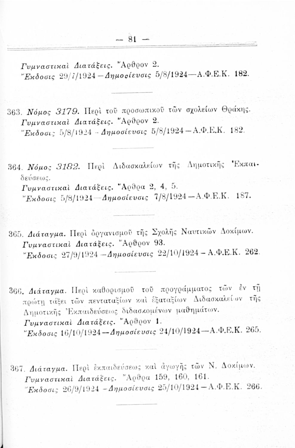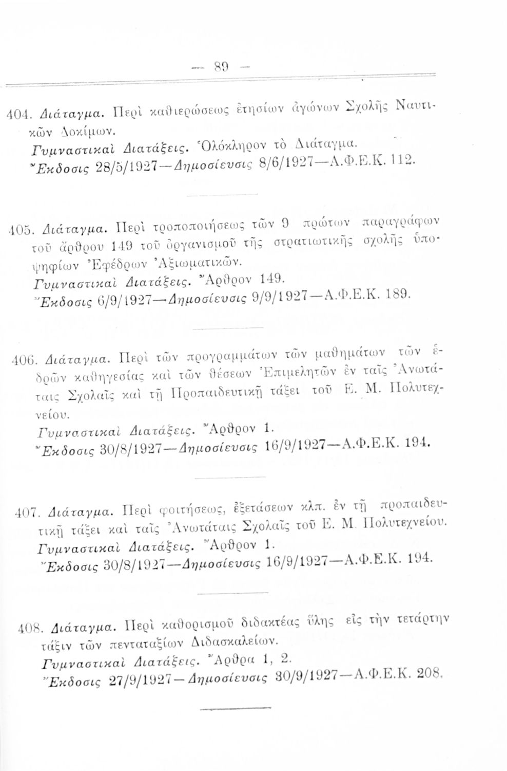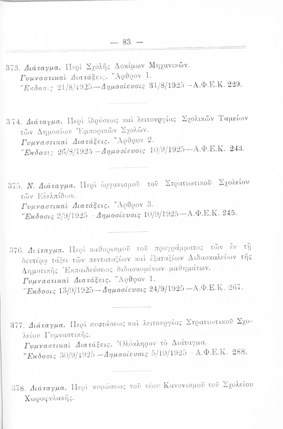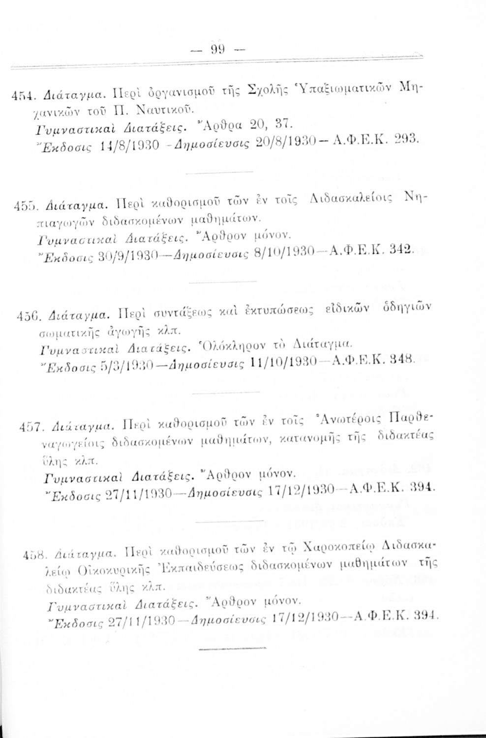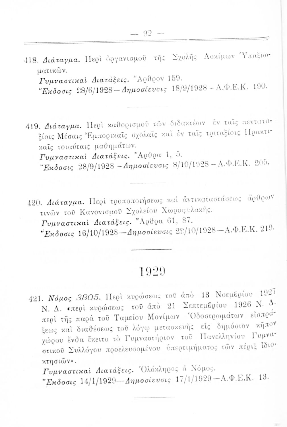 Παρουσίαση περιεχομένου: Καταγραφή νόμων, διαταγμάτων και γυμναστικών διατάξεων που αφορούν την περίοδο 1834-1933.