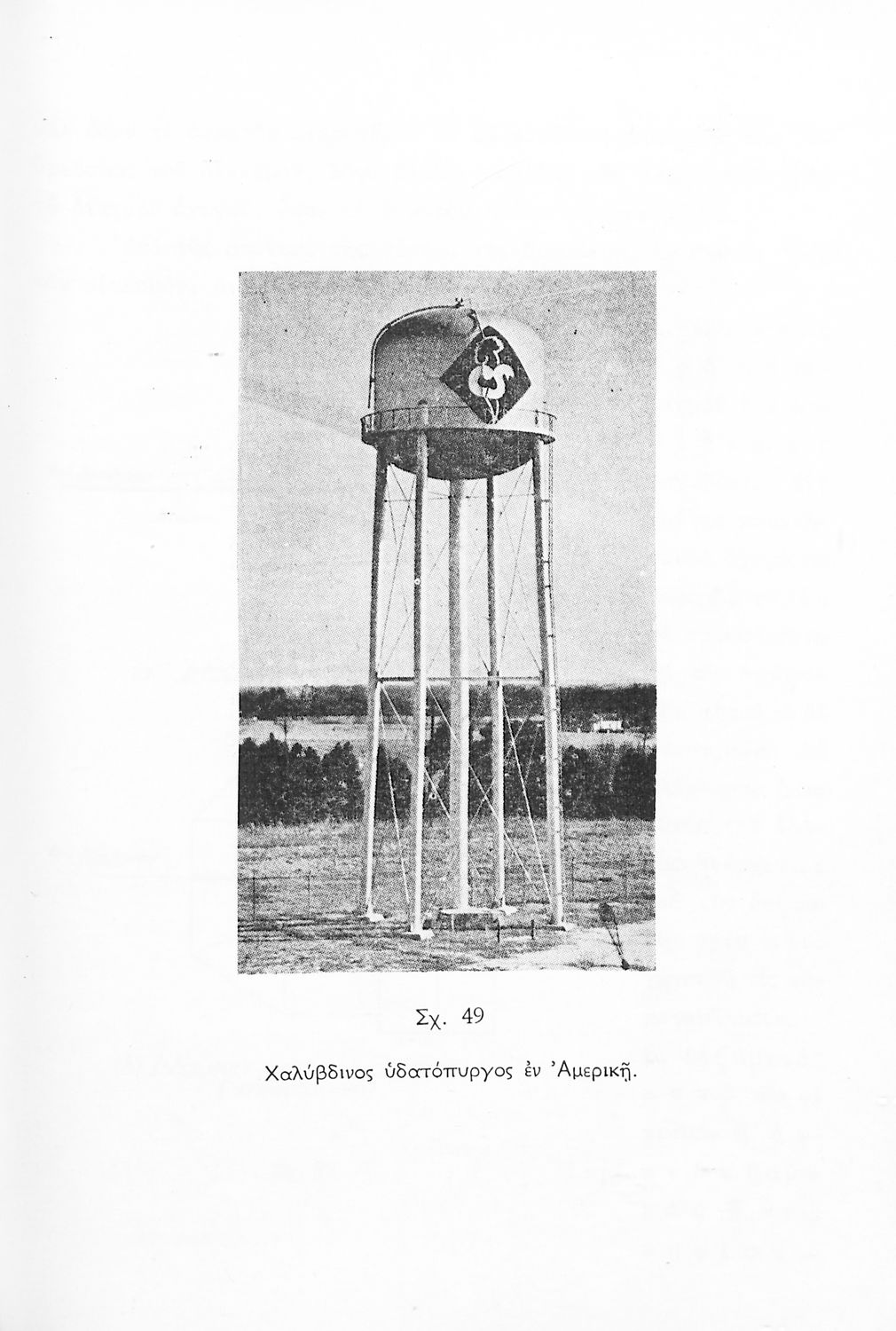 Παιδαγωγικό βοήθημα για τους σπουδαστές των σχολών υπομηχανικών του Ε.Μ.Π. Που παρουσιάζει τους διαφορετικούς τρόπους κατανάλωσης του νερού και τις διάφορες τεχνικές εγκαταστάσεις, όπως αγωγοί και δίκτυα διανομής.