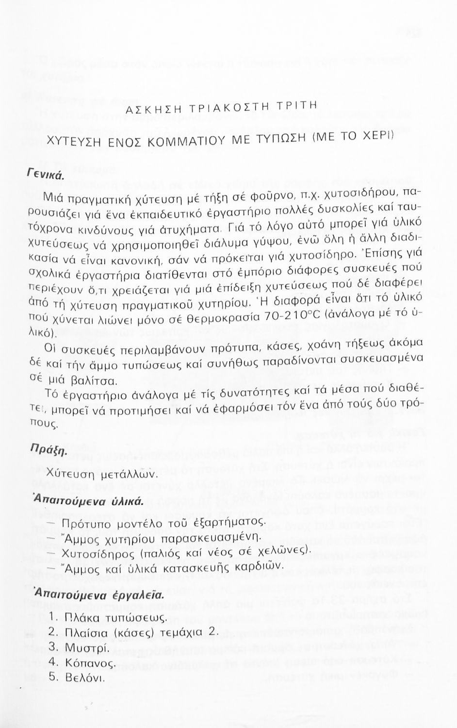 Σχολικό εγχειρίδιο για την Α' τάξη του Μηχανολογικού τμήματος των Τεχνικών Σχολών νέου τύπου. Το βιβλίο περιλαμβάνει δέκα εργαστηριακές ασκήσεις για τη μέτρηση διαστάσεων και τα εργαλεία που χρησιμοποιούνται ...