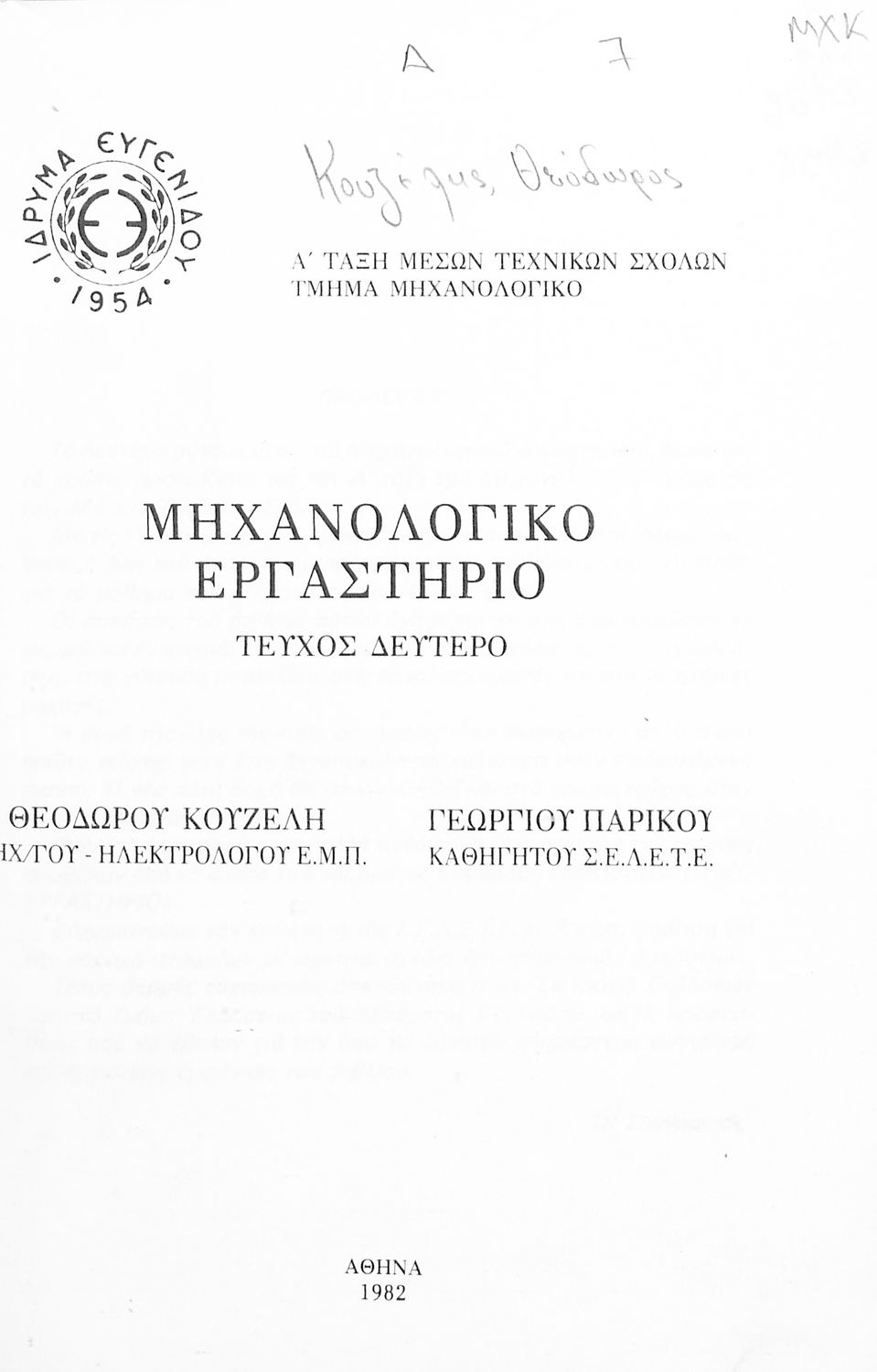 Τίτλος: Μηχανολογικό Εργαστήριο Δεύτερο Τεύχος