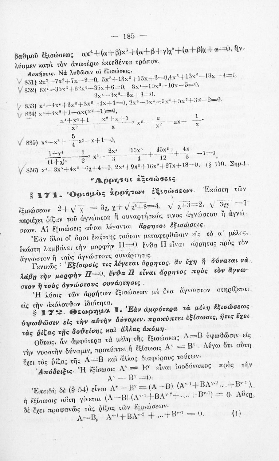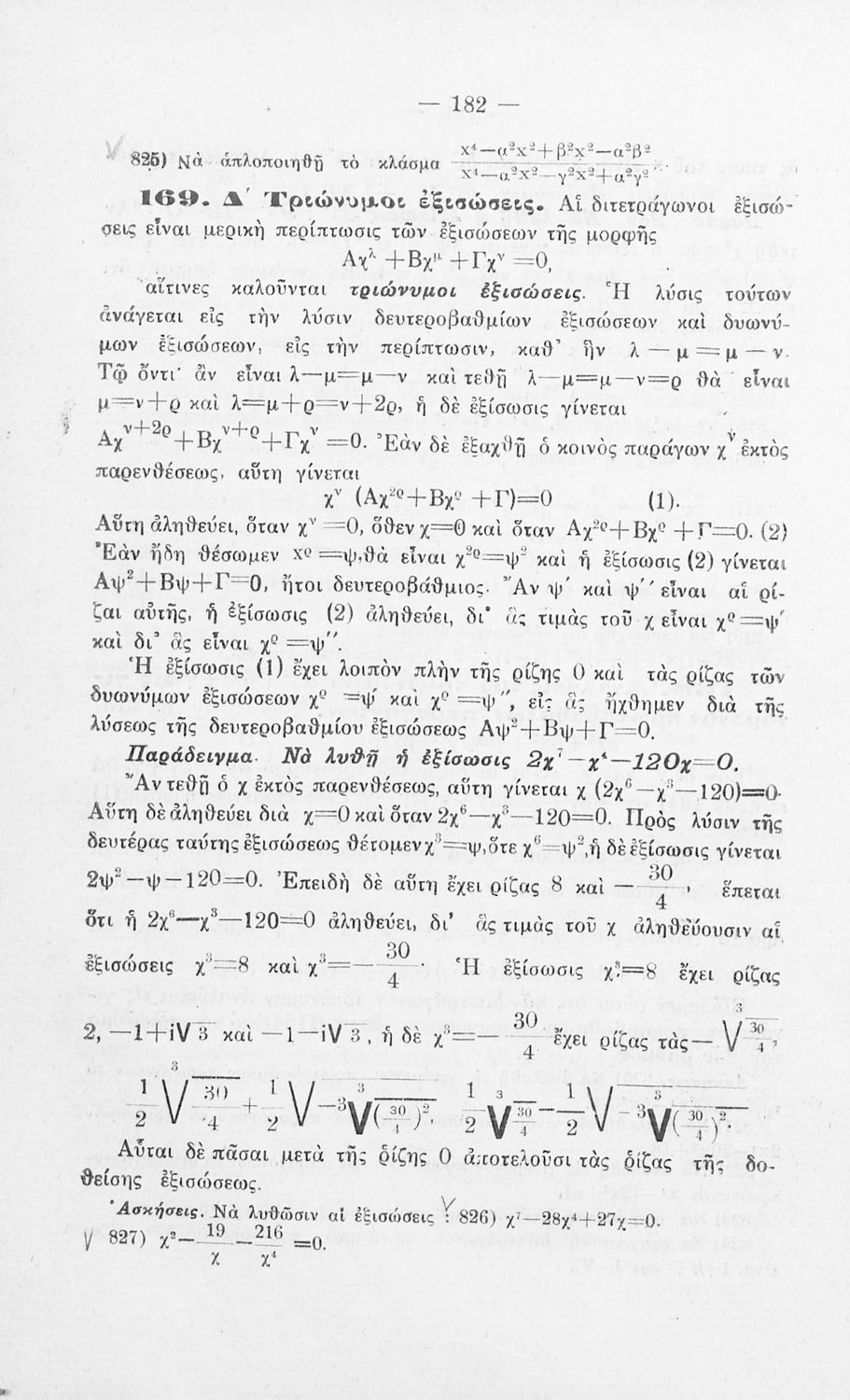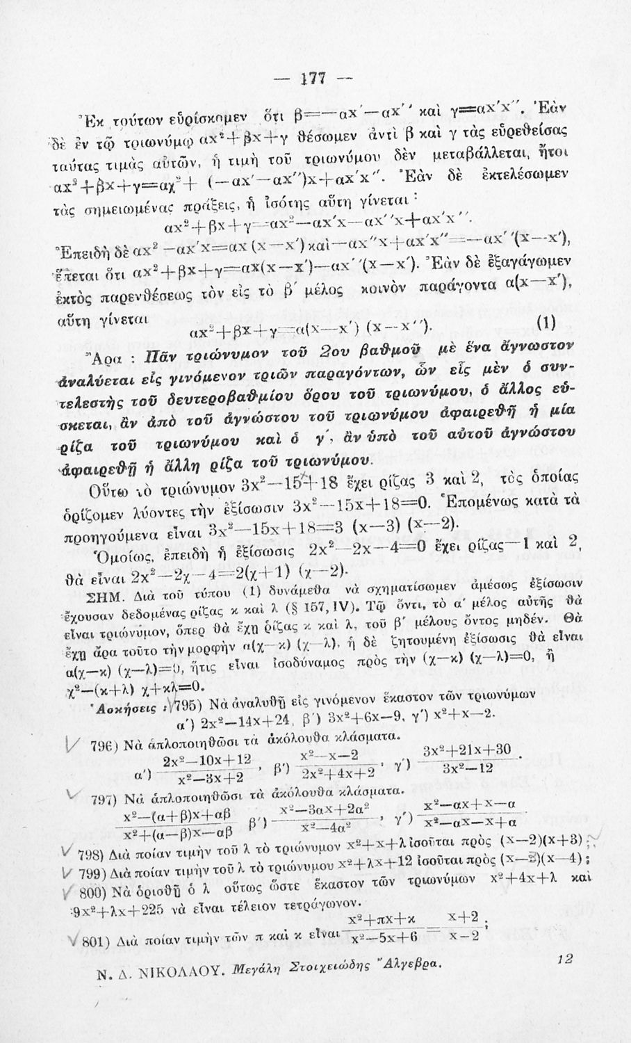 Μεγάλη Στοιχειώδης Άλγεβρα προς χρήσιν των μαθητών των πρακτικών Λυκείων, Γυμνασίων και των υποψηφίων δια τας Ανωτάτας Σχολάς του Κράτους