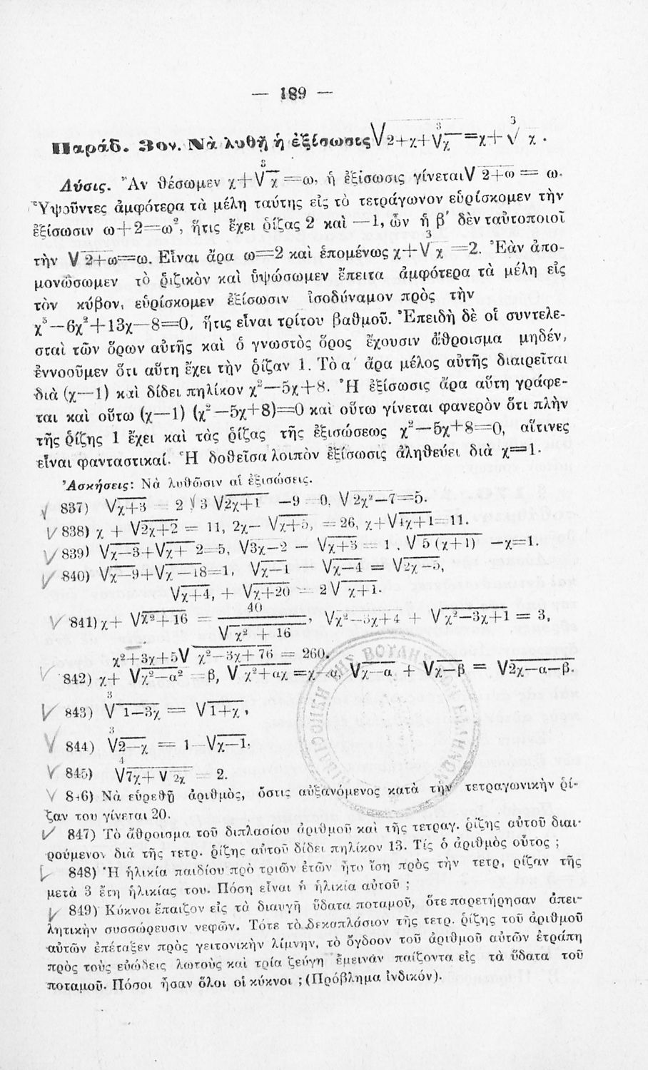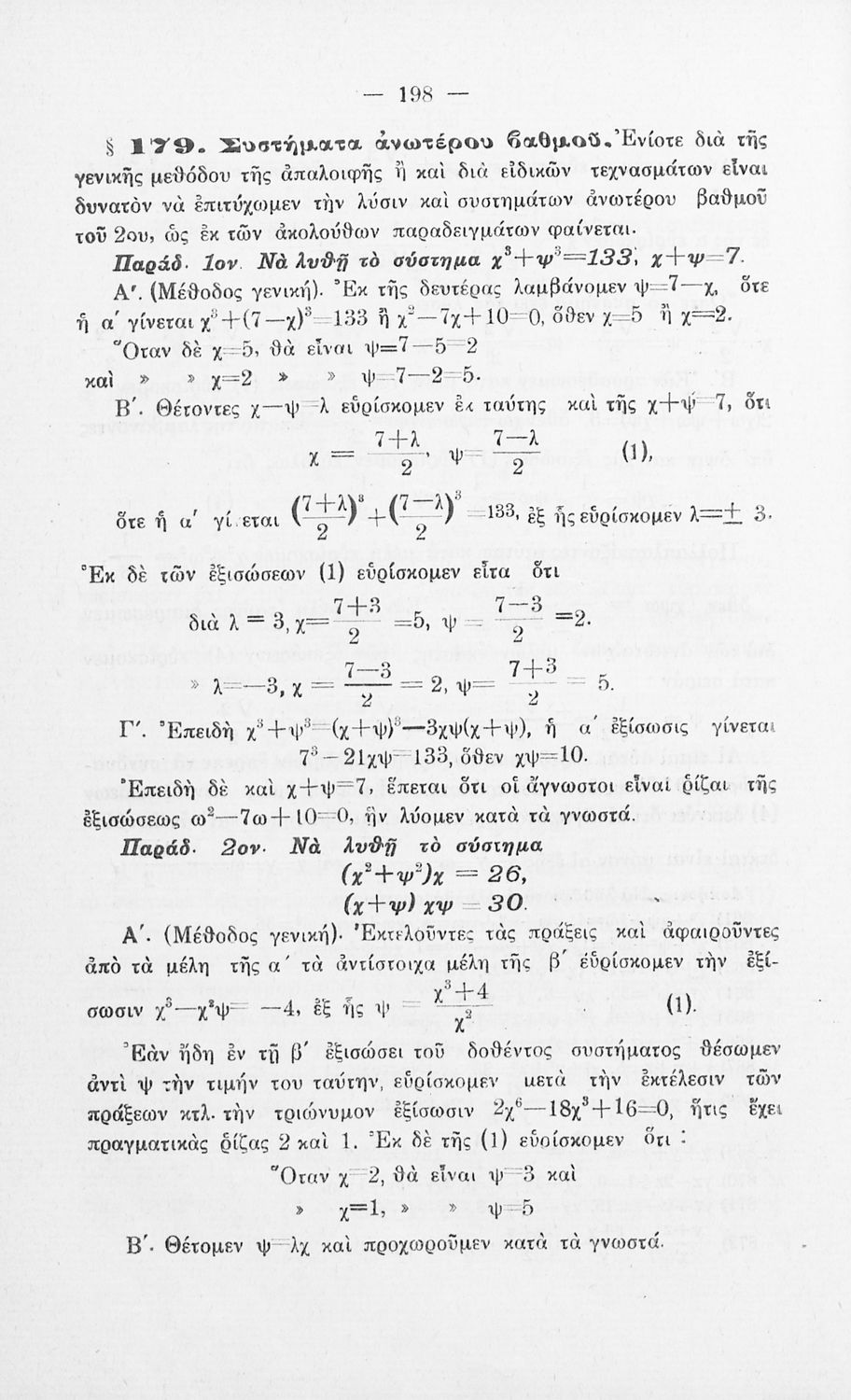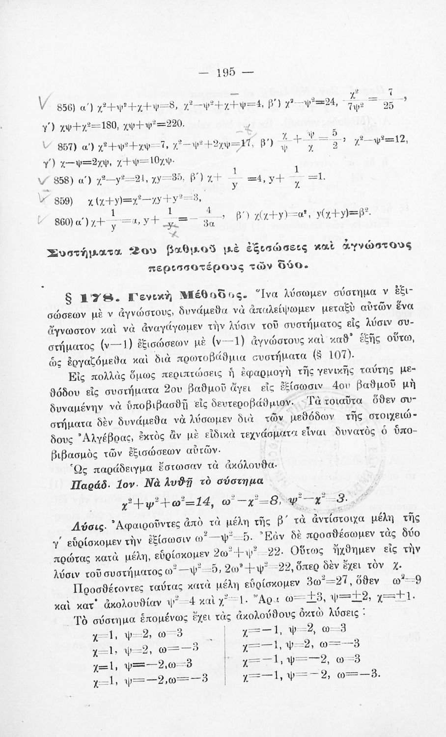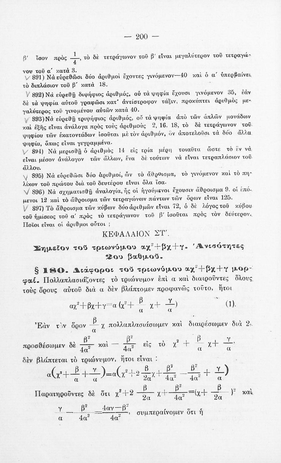 Μεγάλη Στοιχειώδης Άλγεβρα προς χρήσιν των μαθητών των πρακτικών Λυκείων, Γυμνασίων και των υποψηφίων δια τας Ανωτάτας Σχολάς του Κράτους