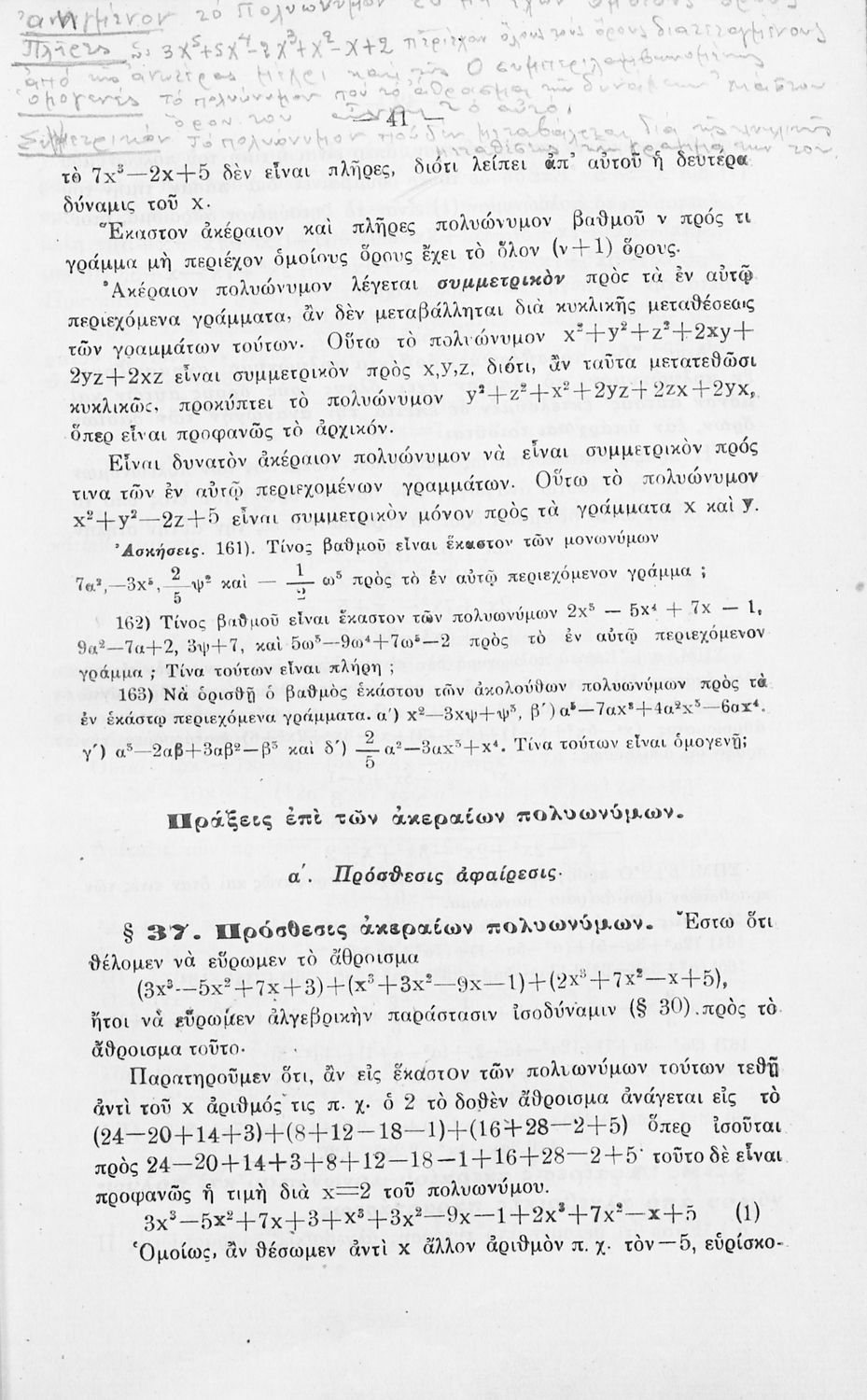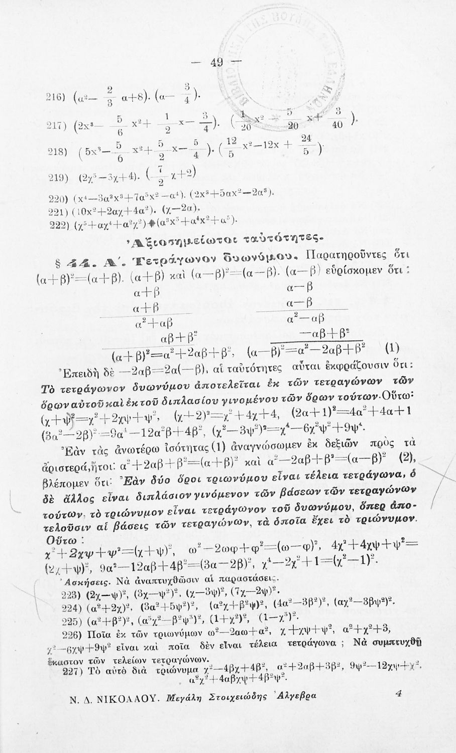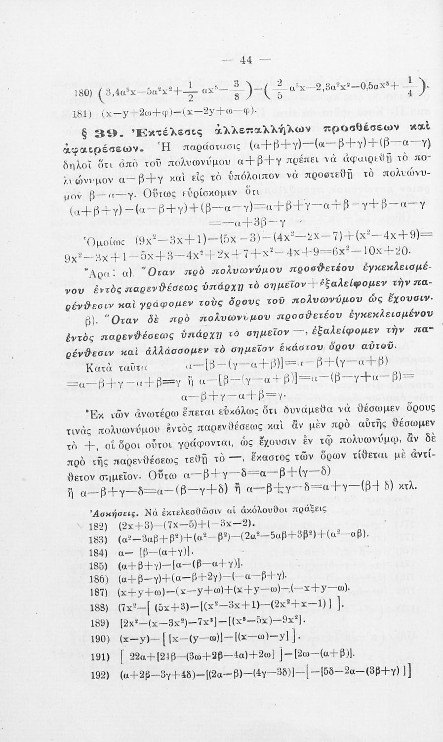 Μεγάλη Στοιχειώδης Άλγεβρα προς χρήσιν των μαθητών των πρακτικών Λυκείων, Γυμνασίων και των υποψηφίων δια τας Ανωτάτας Σχολάς του Κράτους