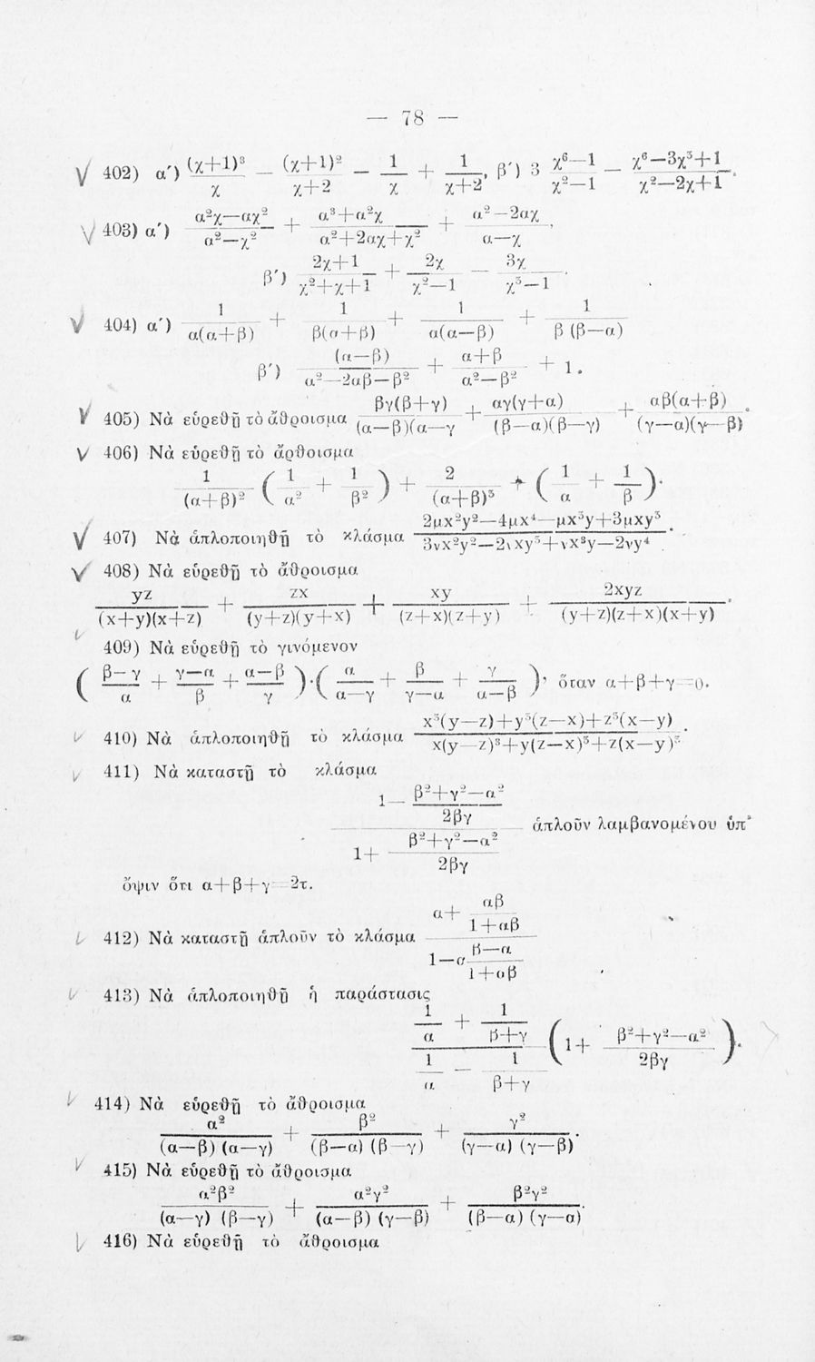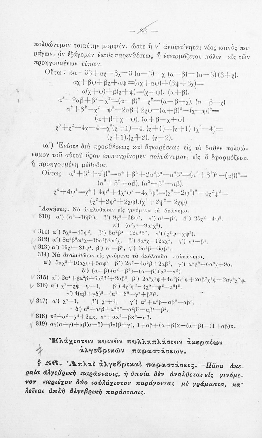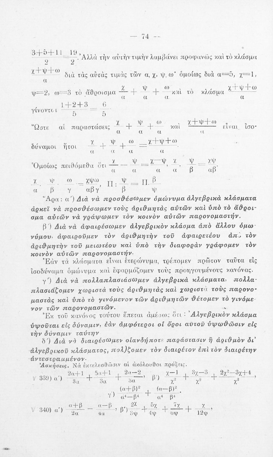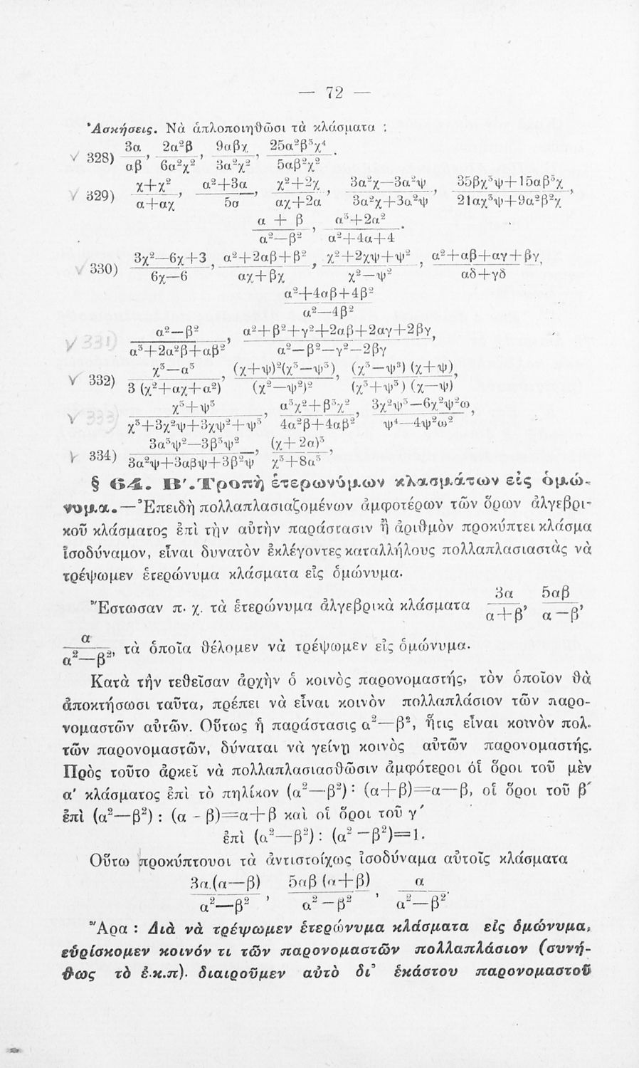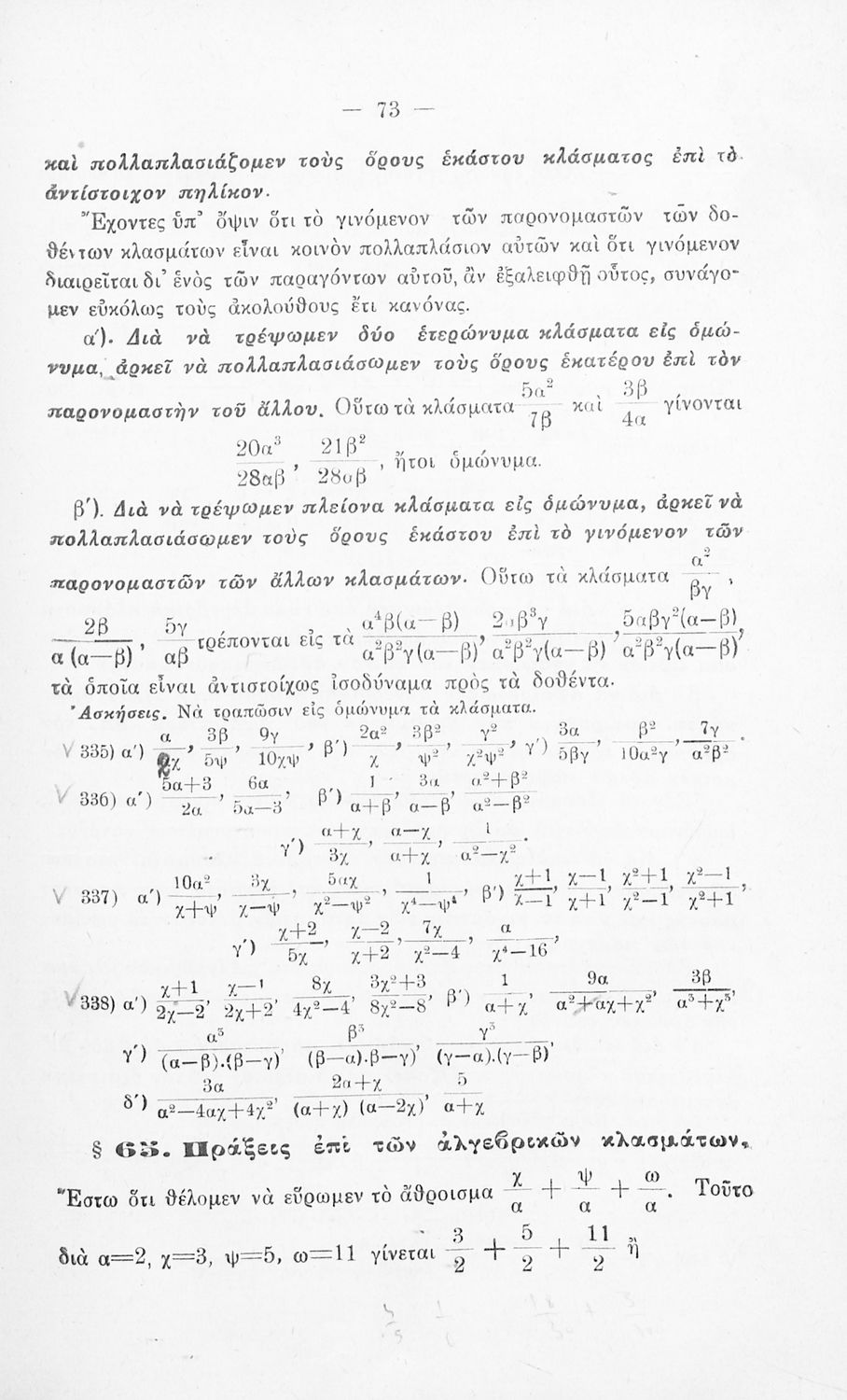 Βαθμίδα εκπαίδευσης: Δευτεροβάθμια Μάθημα: Μαθηματικά Γλώσσα: Καθαρεύουσα Παρουσίαση περιεχομένου: Μαθητικό βοήθημα Μαθηματικών για τους μαθητές των Πρακτικών Λυκείων και τους υποψηφίους Ανωτάτων Σχολών του κράτους. Το βιβλίο περιέχει βασικές έννοιες και κανόνες της άλγεβρας και την ανάπτυξη αριθμητικών προόδων και εξισώσεων. Κάθε θεματική ενότητα συνοδεύεται από ασκήσεις για πρακτική εξάσκηση. |