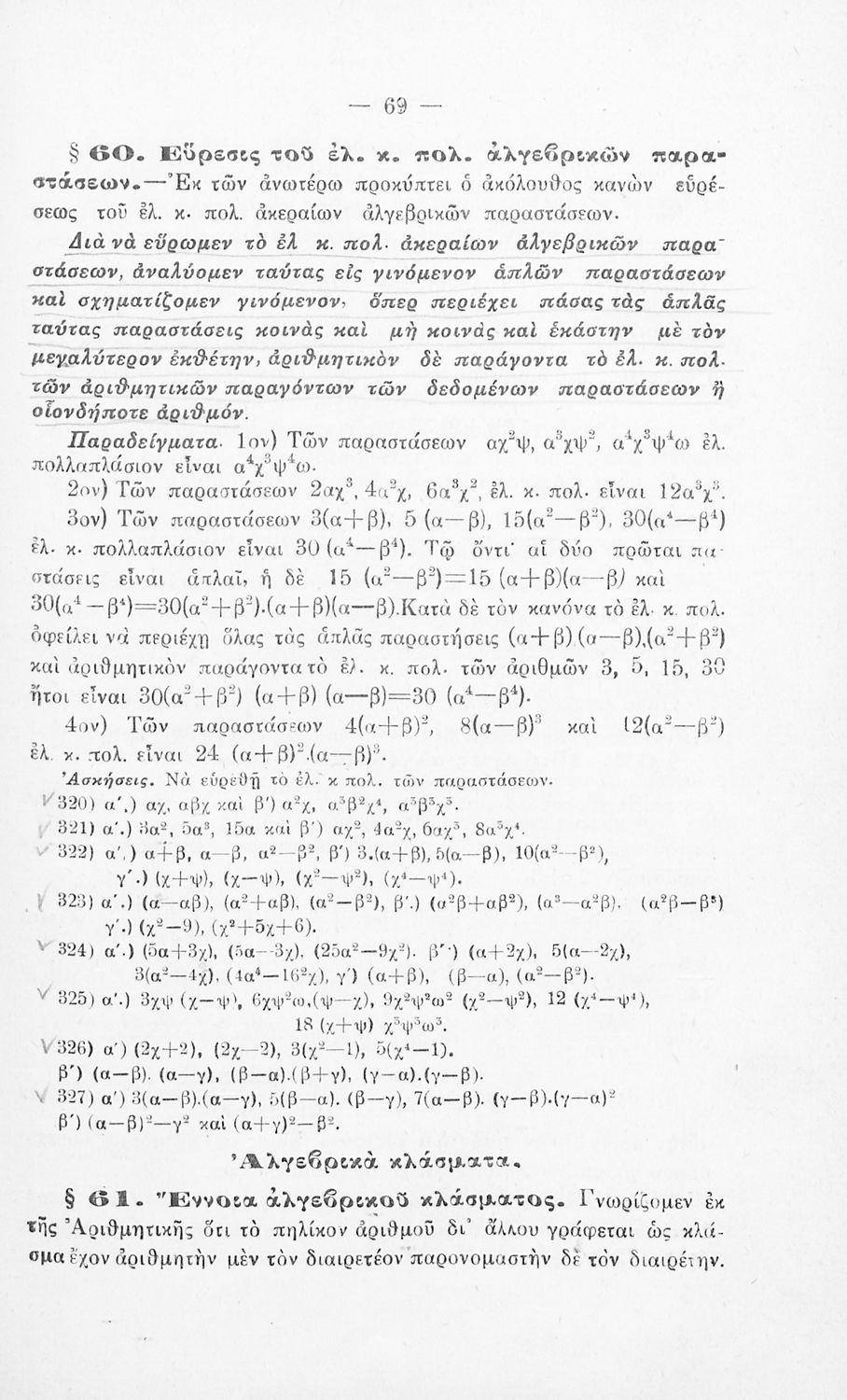 Κωδικός αναγνώρισης: 03-20632631 Τίτλος: Μεγάλη Στοιχειώδης Άλγεβρα προς χρήσιν των μαθητών των πρακτικών Λυκείων, Γυμνασίων και των υποψηφίων δια τας Ανωτάτας Σχολάς του Κράτους Συγγραφέας: Νικόλαος Δ. Νικολάου Μέγεθος και υπόστρωμα: Μαθητικό βοήθημα, σκληρό εξώφυλλο, 346 σελίδες. |