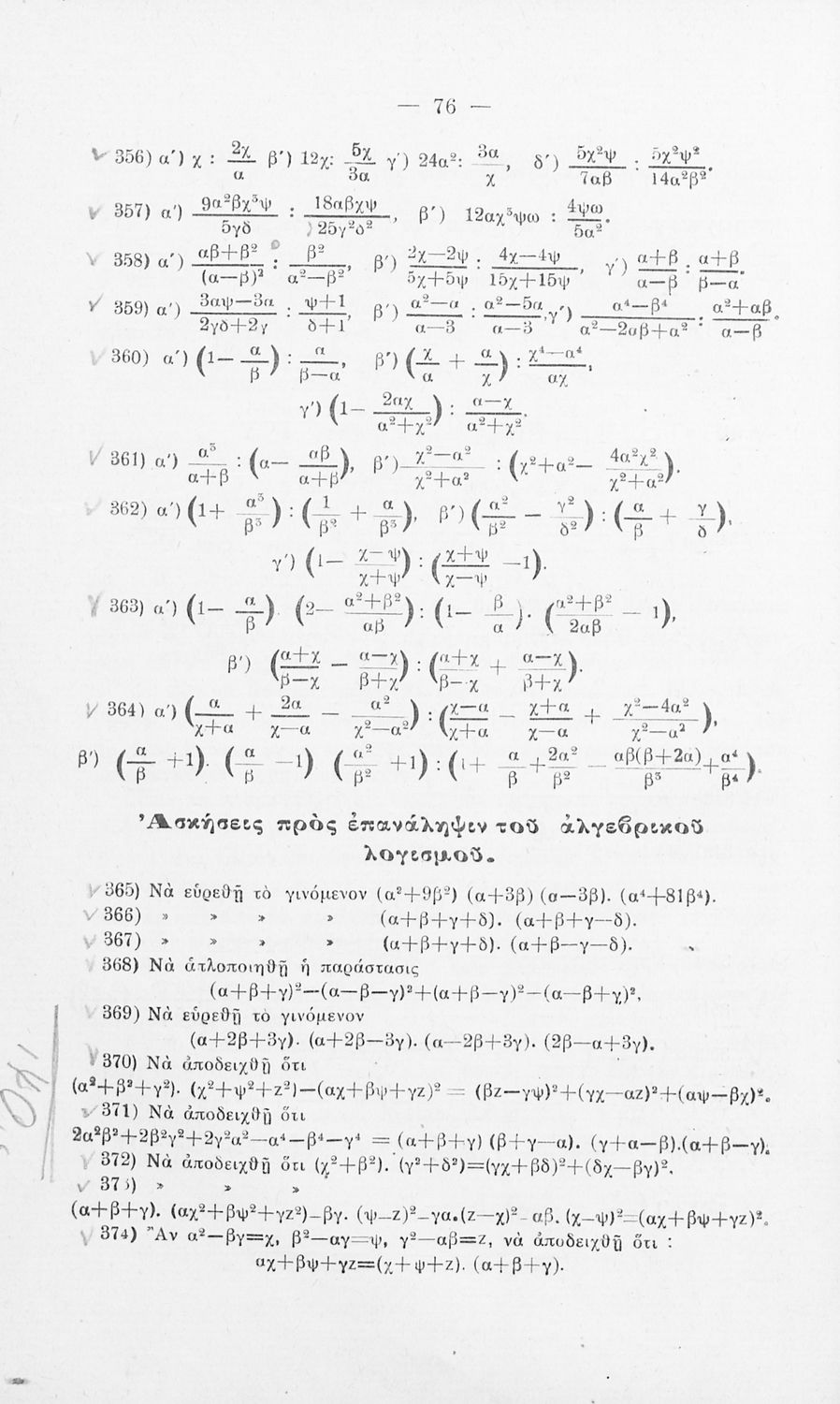 LDR 01530 2200193 4500 035 ## _a03-20632631 040 ## _aΒιβλιοθήκη της Βουλής των Ελλήνων 041 ## _ael 100 ## _aΝικόλαος Δ. Νικολάου 110 ## _a20632631 245 0# _aΜεγάλη Στοιχειώδης Άλγεβρα προς χρήσιν των μαθητών των πρακτικών Λυκείων, Γυμνασίων και των υποψηφίων δια τας Ανωτάτας Σχολάς του Κράτους 250 ## _a1η Έκδοση 260 ## _aΑθήνα _bΔημ. Ν. Τζάκας, Στεφ. Δελαγραμμάτικας και ΣΙΑ _c1932 300 ## _a346 520 ## _aΜαθητικό βοήθημα Μαθηματικών για τους μαθητές των Πρακτικών Λυκείων και τους υποψηφίους Ανωτάτων Σχολών του κράτους. Το βιβλίο περιέχει βασικές έννοιες και κανόνες της άλγεβρας και την ανάπτυξη αριθμητικών προόδων και εξισώσεων. Κάθε θεματική ενότητα συνοδεύεται από ασκήσεις για πρακτική εξάσκηση. 522 ## _aΕλλάδα 546 ## _aΚαθαρεύουσα 563 ## _aΣκληρό Εξώφυλλο 650 #4 _aΆλγεβρα _aΕξισώσεις _aΛογάριθμοι _aΠολυώνυμα _aΠράξεις αλγεβρικών αριθμών _aΣυναρτήσεις