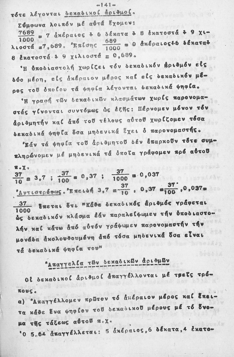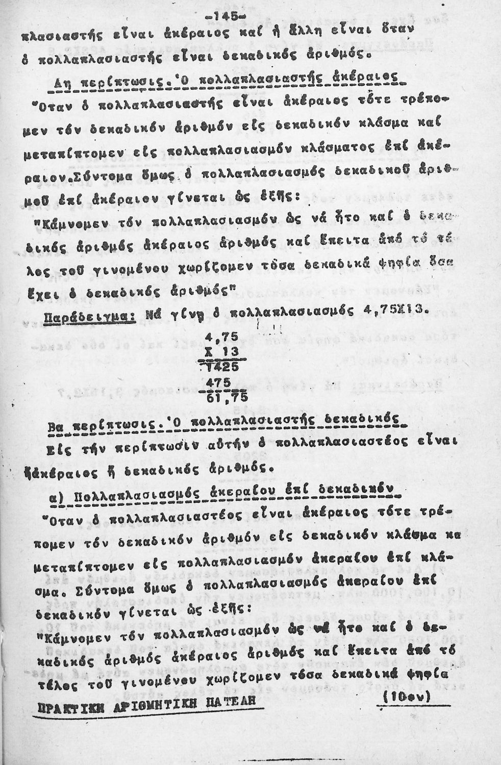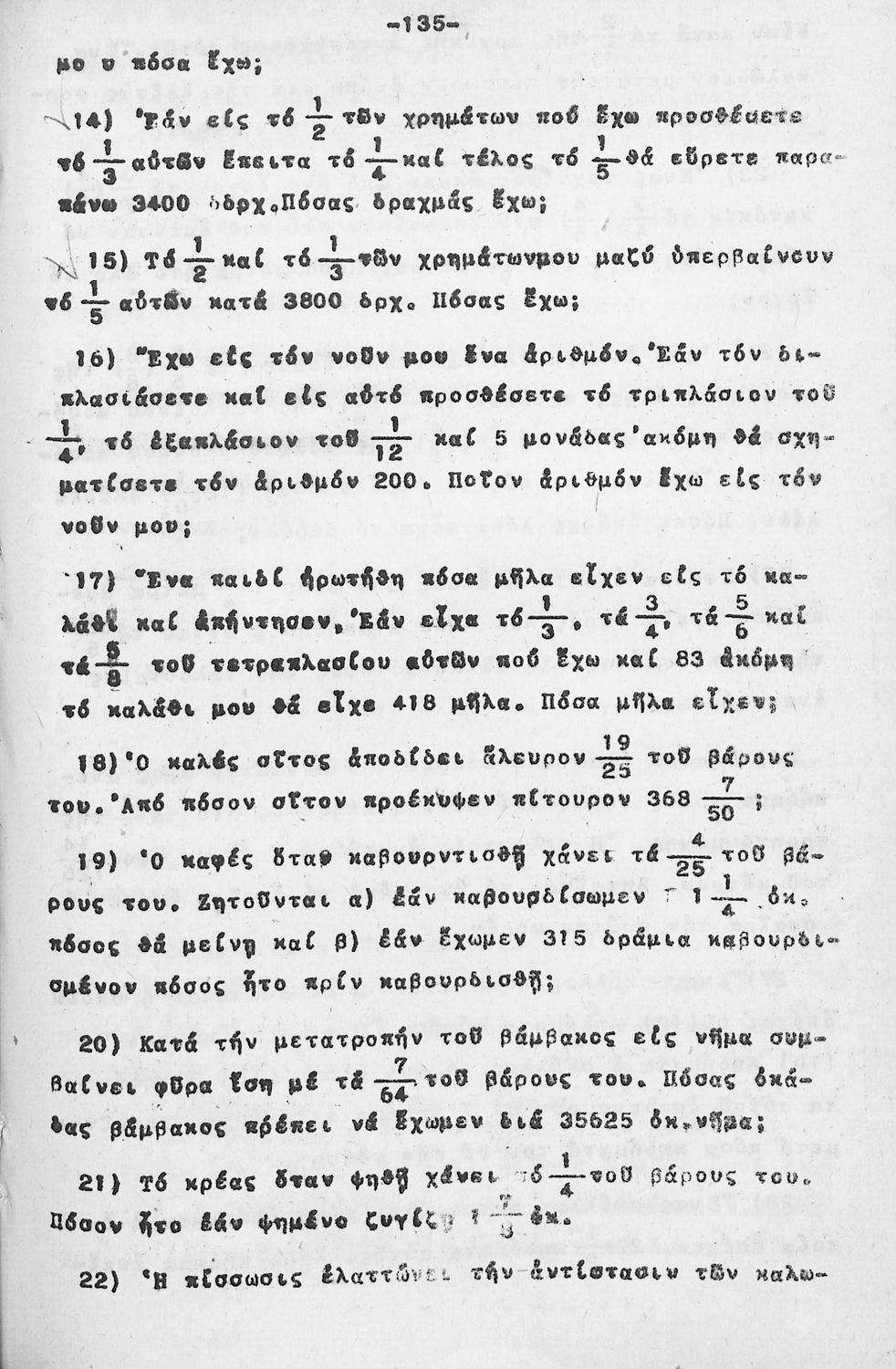 Παιδαγωγικό βοήθημα για τους Δημοδιδασκάλους, τους υποψηφίους των Σχολών Ανωτάτης Εμπορικής και τους μαθητές Πρακτικών Λυκείων των Γυμνασίων που περιέχει ασκήσεις ανώτερης αριθμητικής.