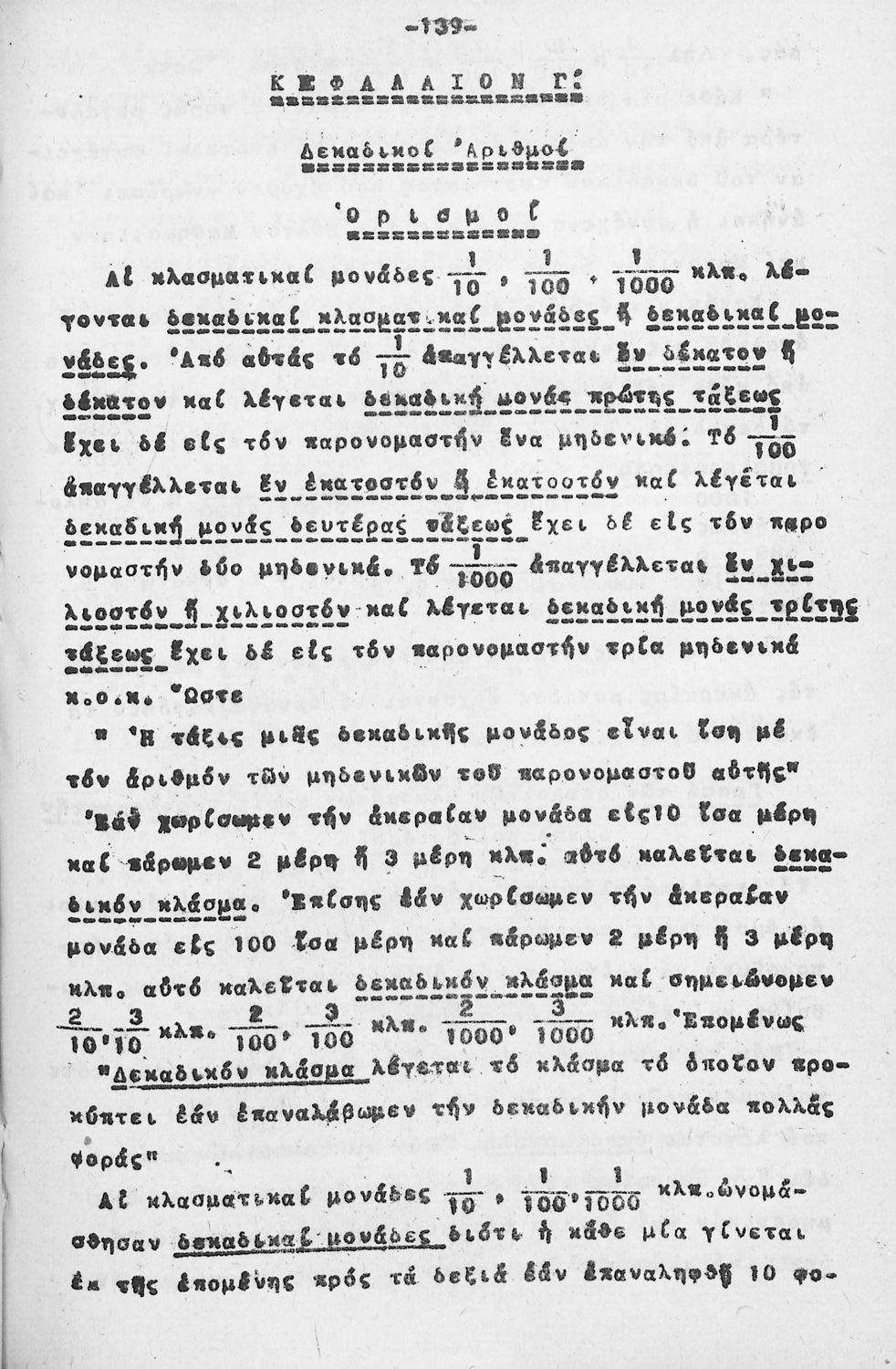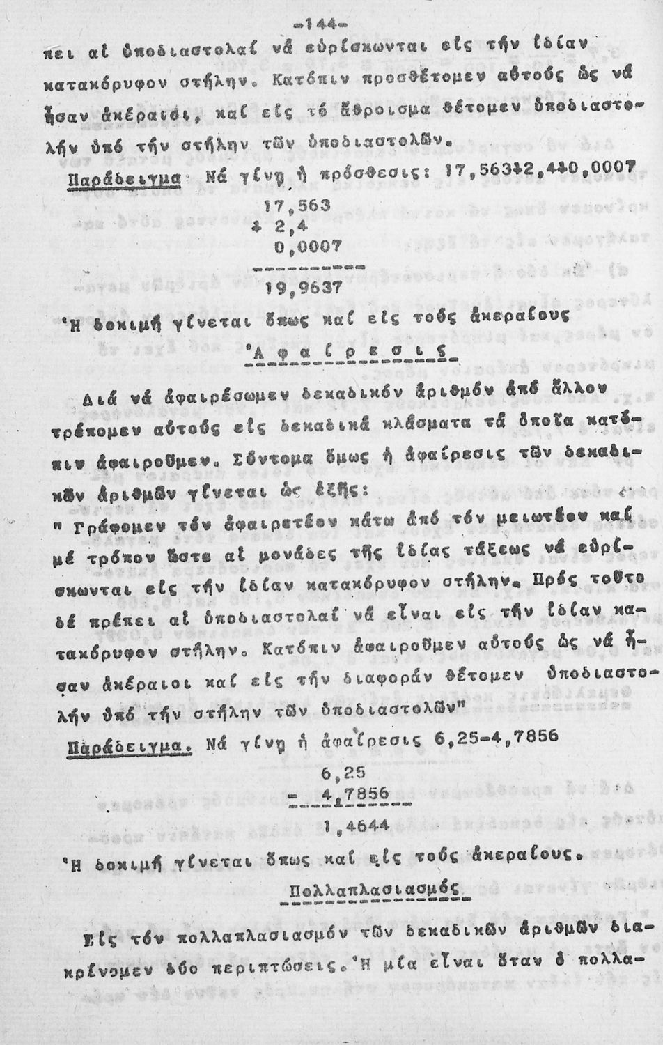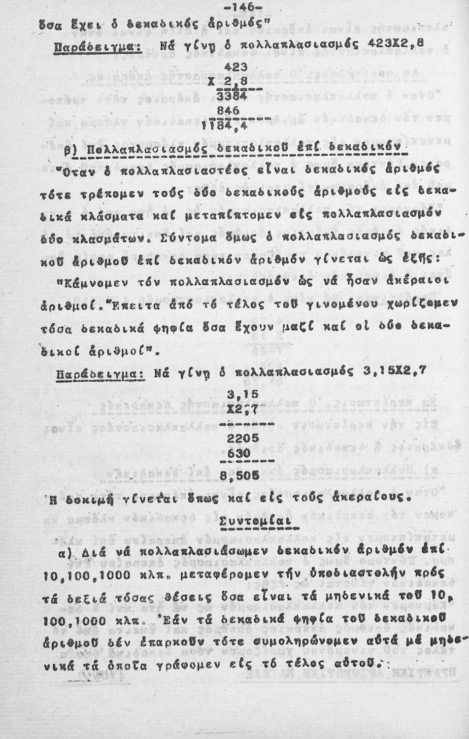 Παιδαγωγικό βοήθημα για τους Δημοδιδασκάλους, τους υποψηφίους των Σχολών Ανωτάτης Εμπορικής και τους μαθητές Πρακτικών Λυκείων των Γυμνασίων που περιέχει ασκήσεις ανώτερης αριθμητικής.
