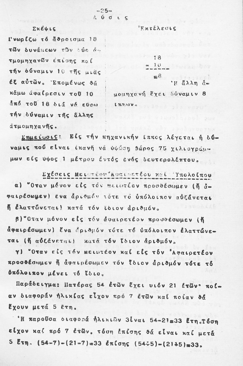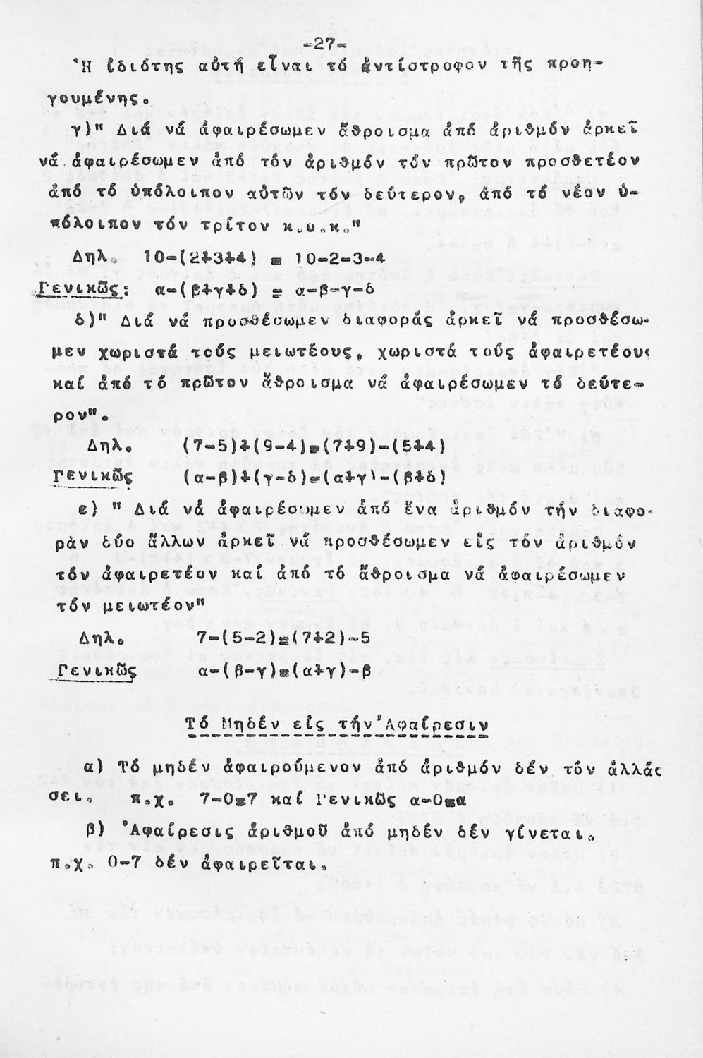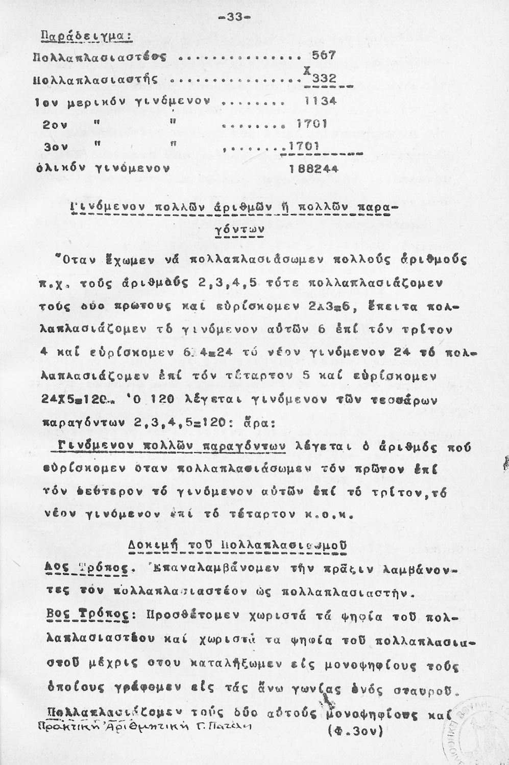 Παιδαγωγικό βοήθημα για τους Δημοδιδασκάλους, τους υποψηφίους των Σχολών Ανωτάτης Εμπορικής και τους μαθητές Πρακτικών Λυκείων των Γυμνασίων που περιέχει ασκήσεις ανώτερης αριθμητικής.