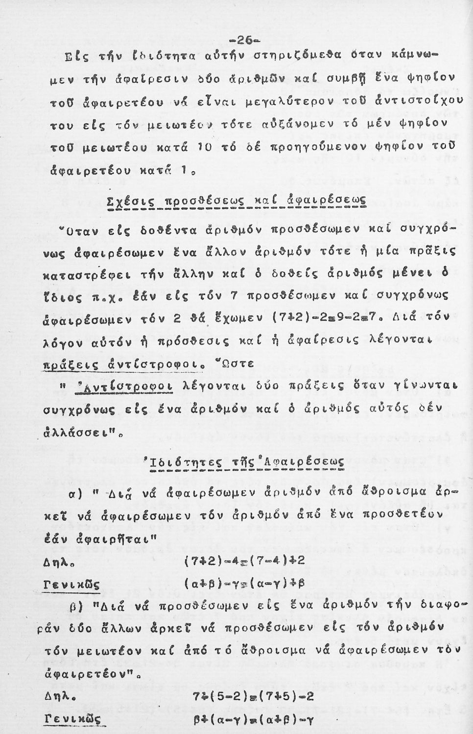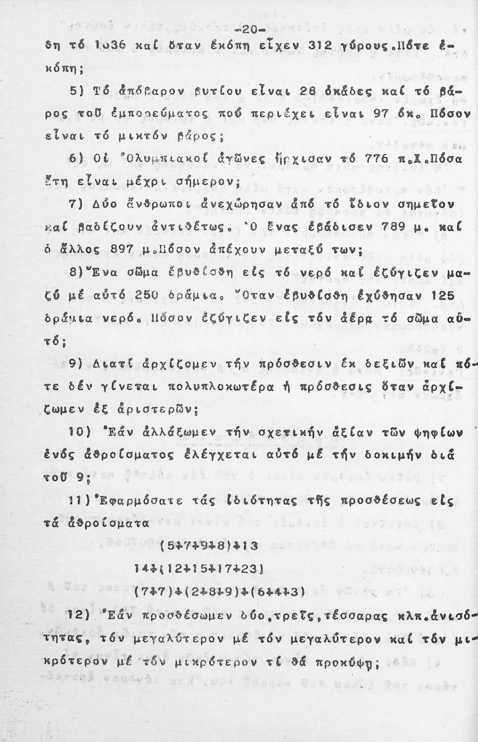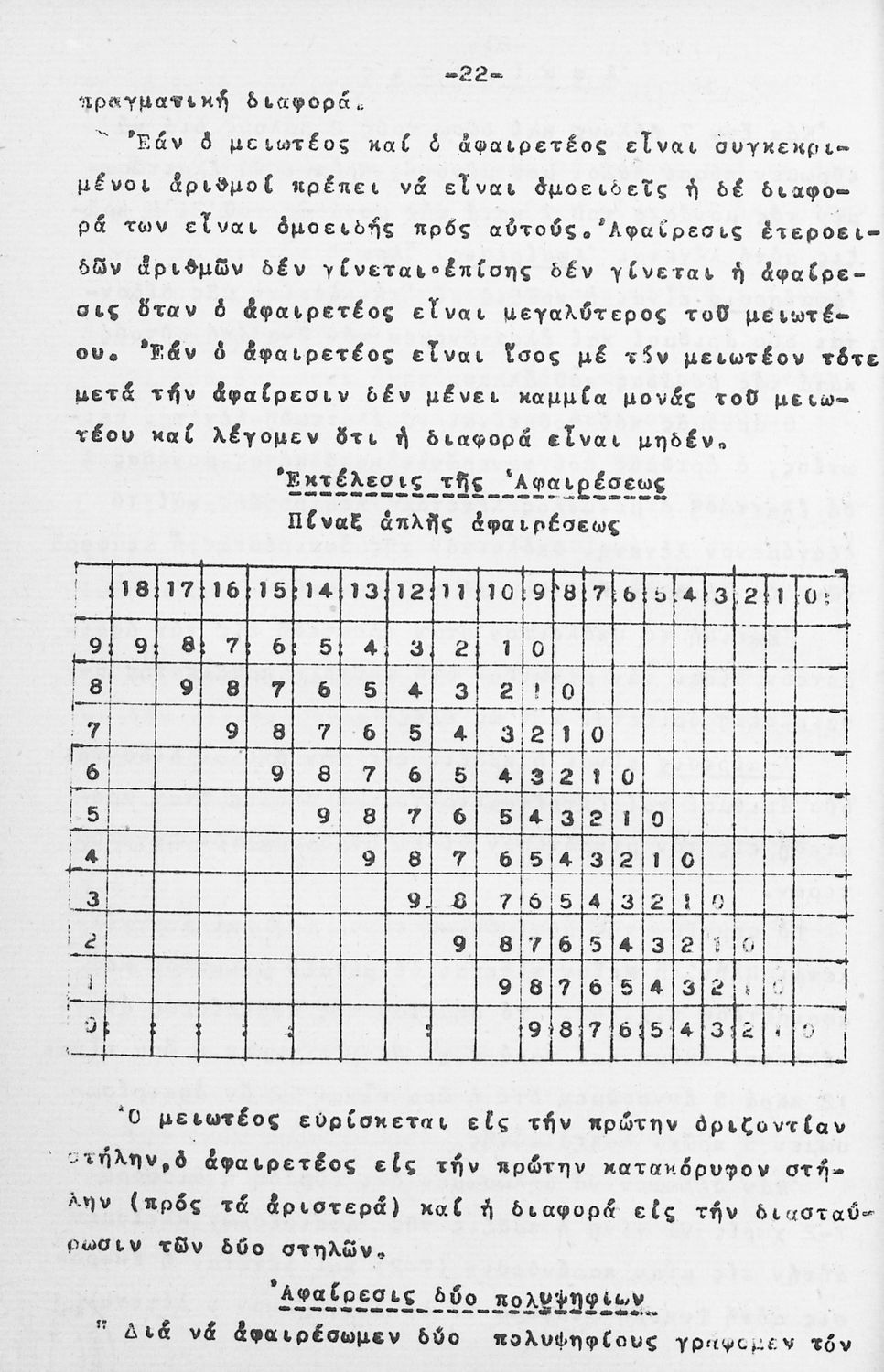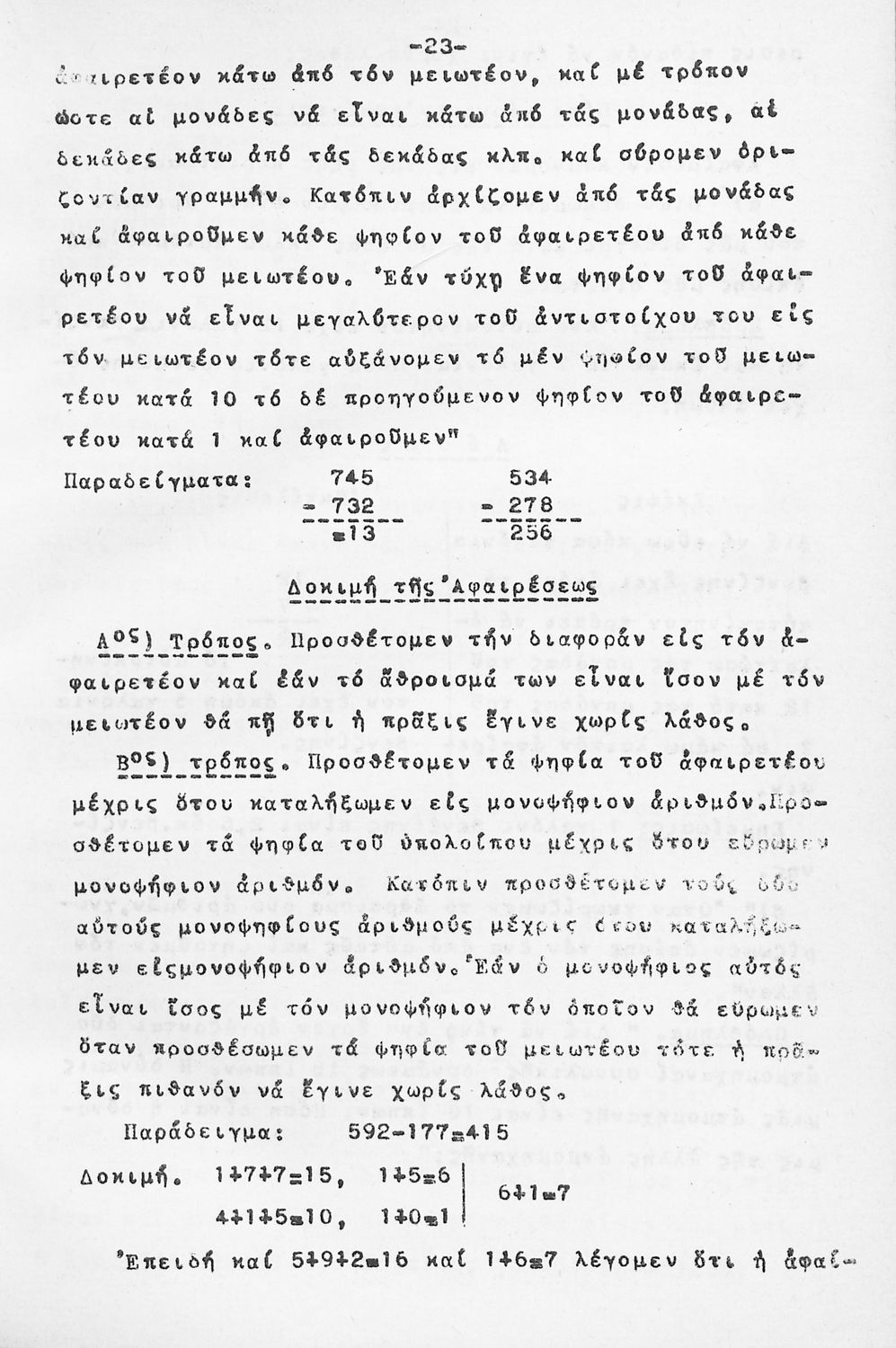 Παιδαγωγικό βοήθημα για τους Δημοδιδασκάλους, τους υποψηφίους των Σχολών Ανωτάτης Εμπορικής και τους μαθητές Πρακτικών Λυκείων των Γυμνασίων που περιέχει ασκήσεις ανώτερης αριθμητικής.