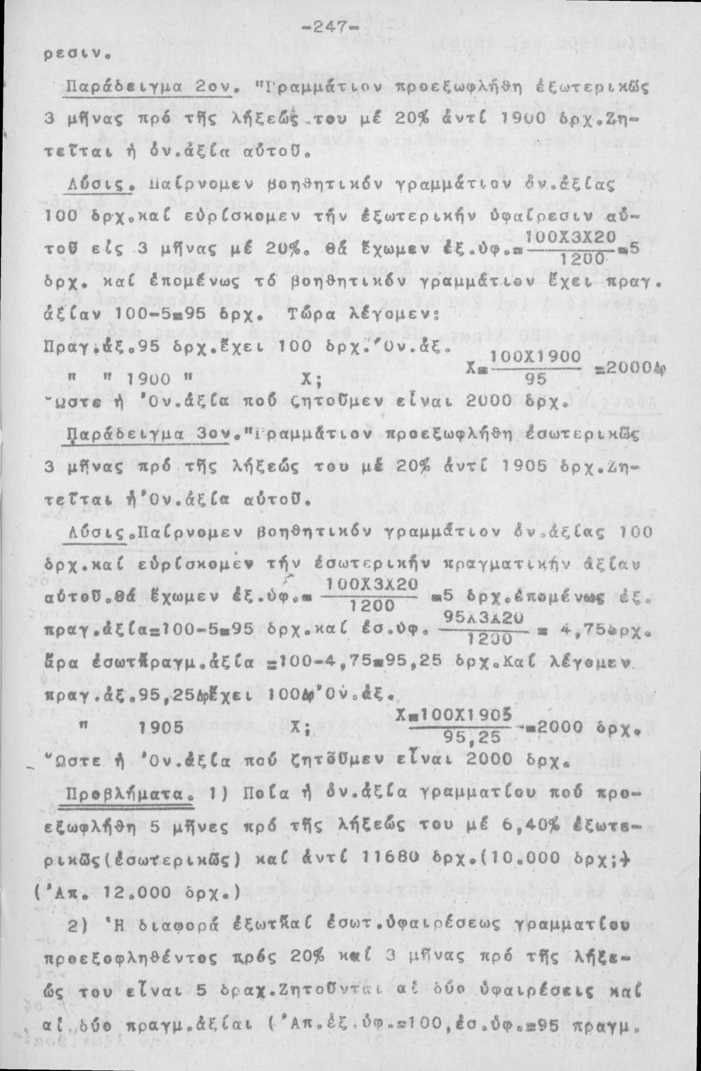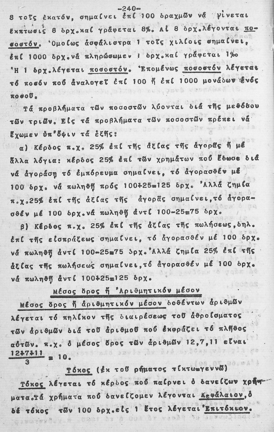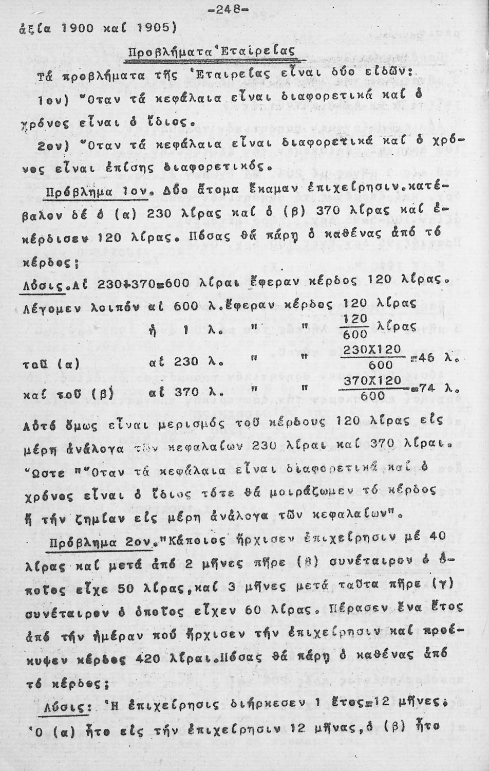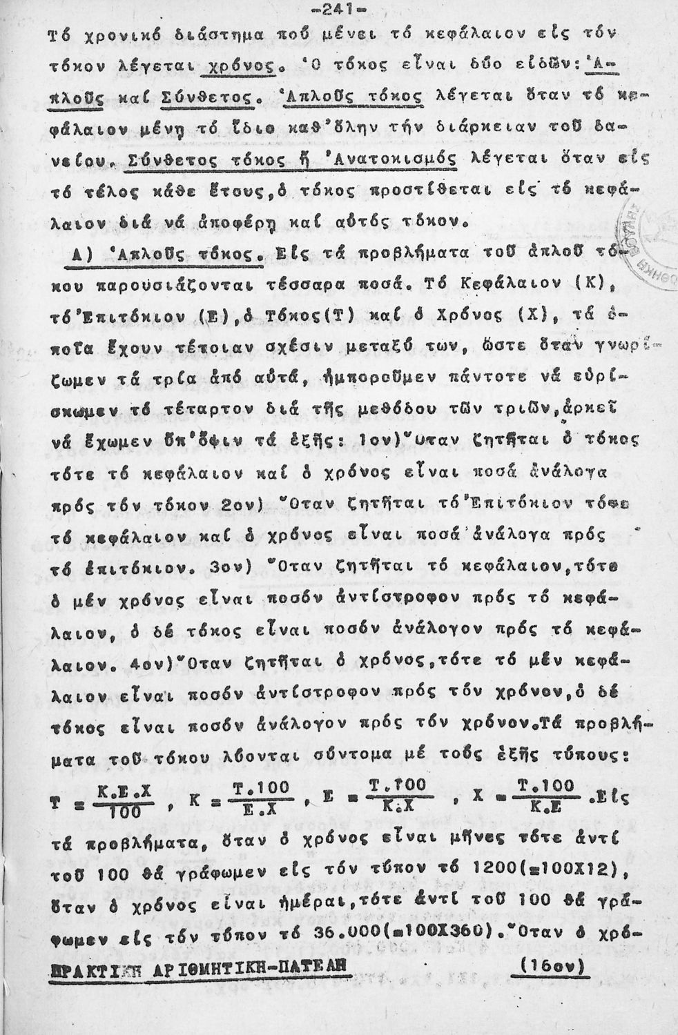 Παιδαγωγικό βοήθημα για τους Δημοδιδασκάλους, τους υποψηφίους των Σχολών Ανωτάτης Εμπορικής και τους μαθητές Πρακτικών Λυκείων των Γυμνασίων που περιέχει ασκήσεις ανώτερης αριθμητικής.