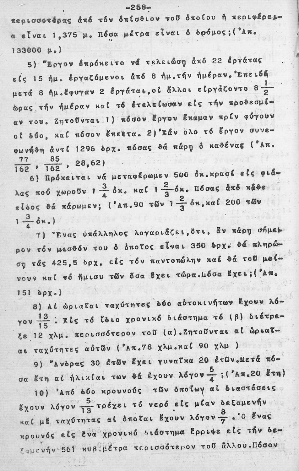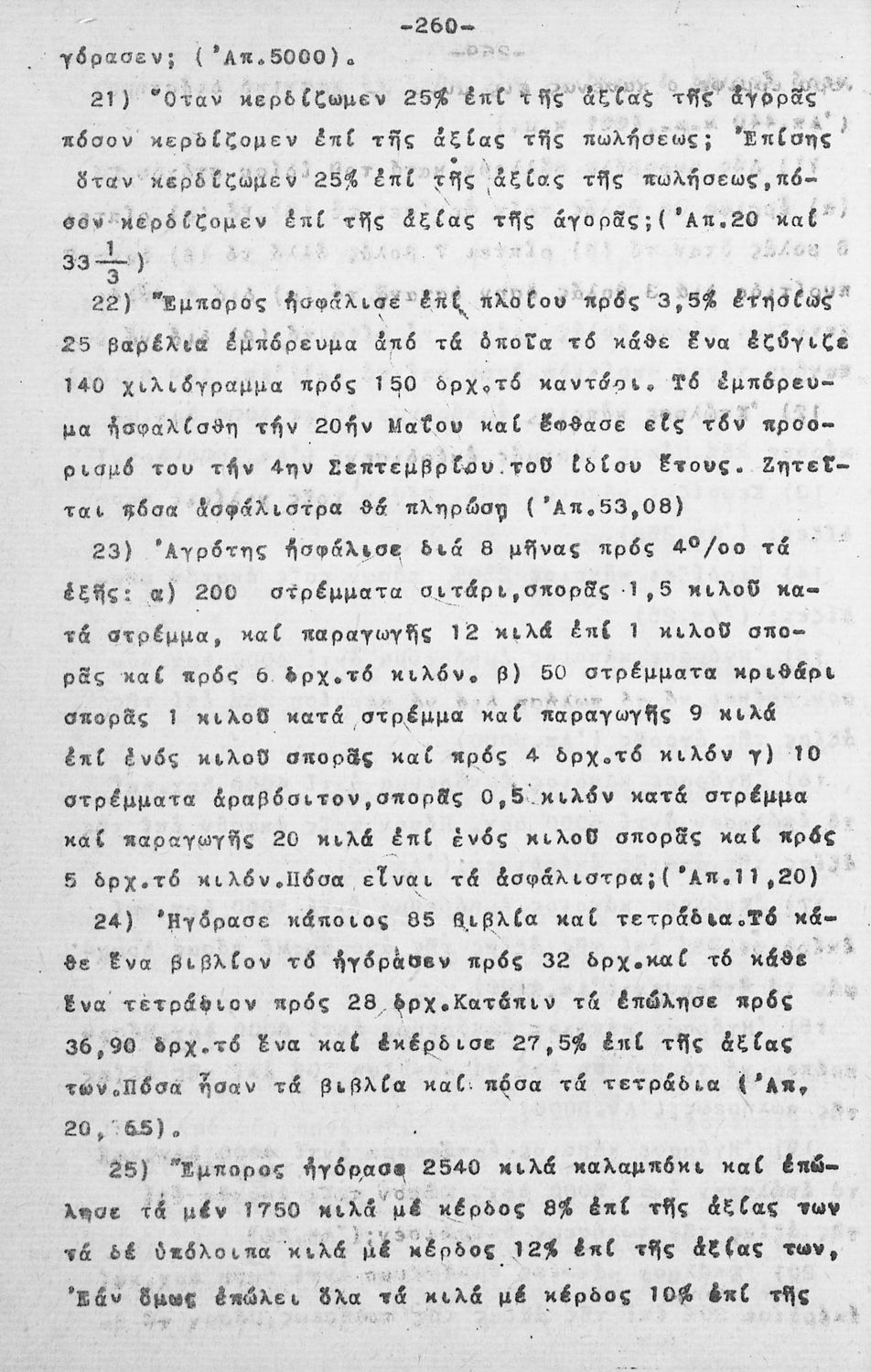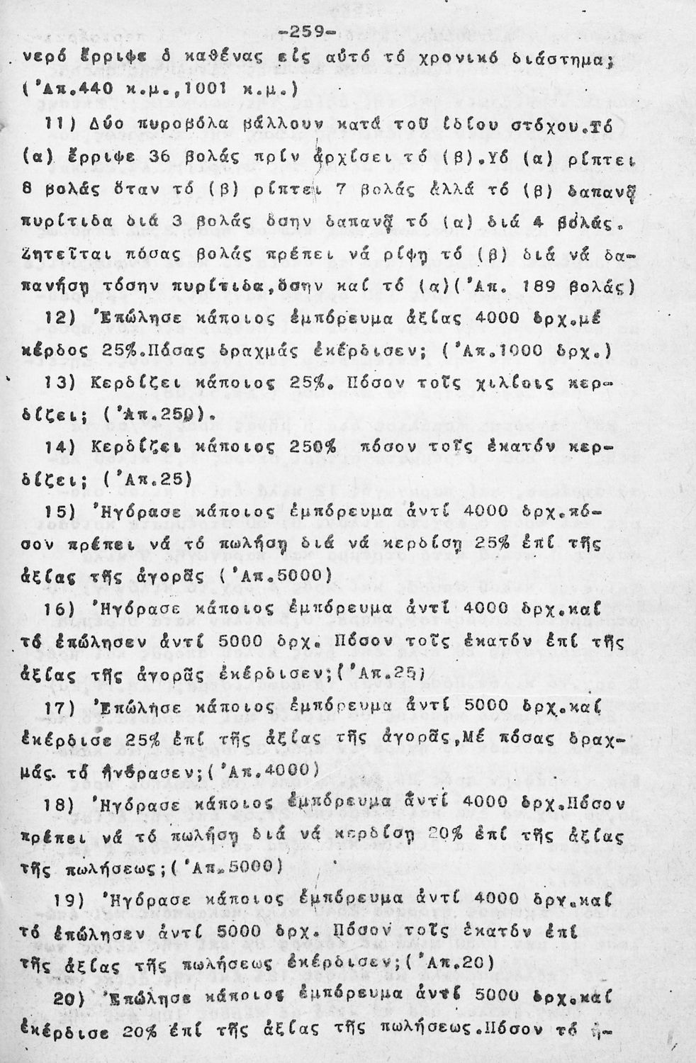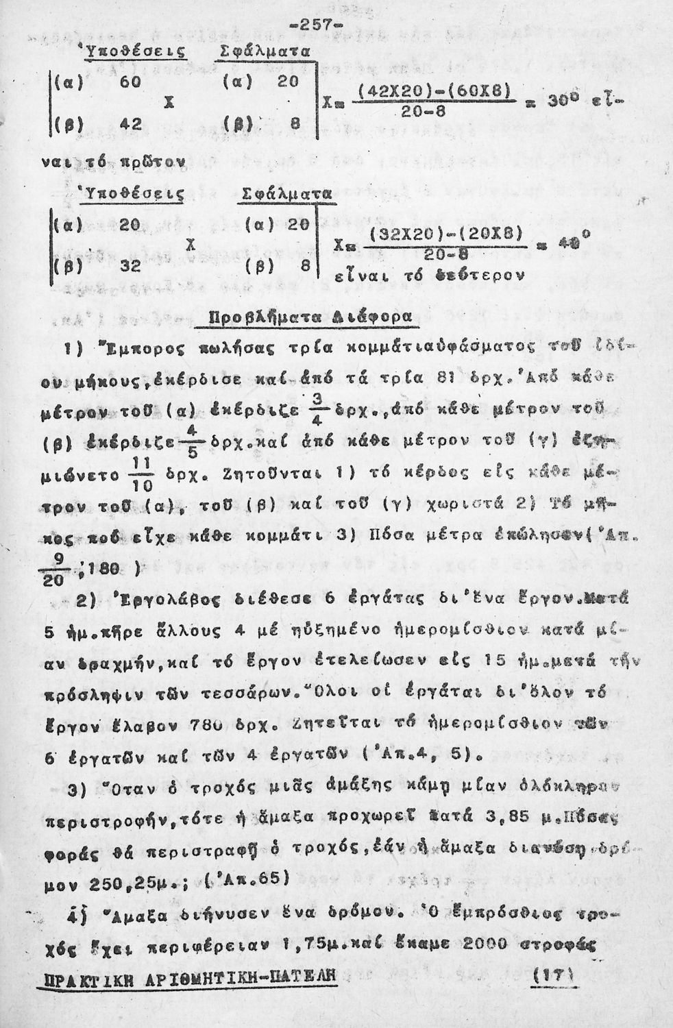 Παιδαγωγικό βοήθημα για τους Δημοδιδασκάλους, τους υποψηφίους των Σχολών Ανωτάτης Εμπορικής και τους μαθητές Πρακτικών Λυκείων των Γυμνασίων που περιέχει ασκήσεις ανώτερης αριθμητικής.