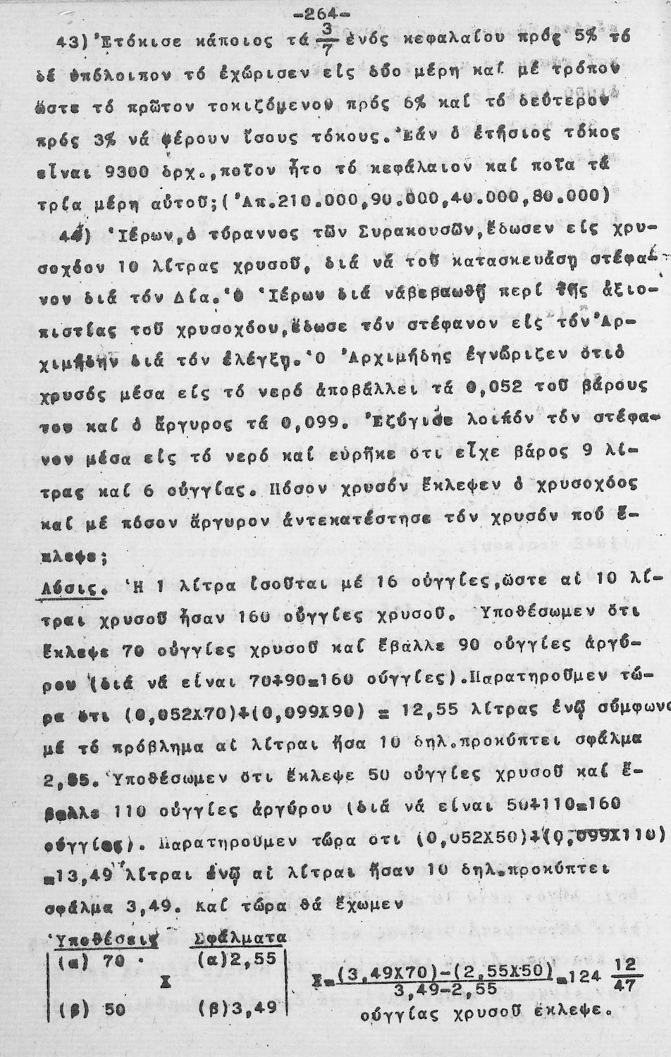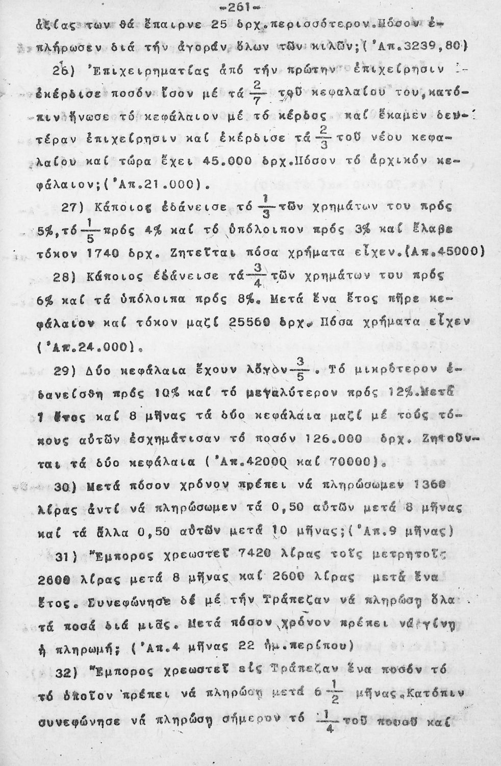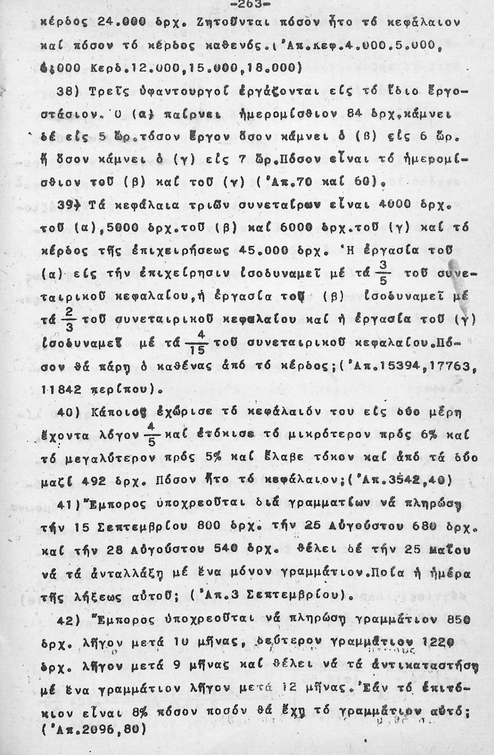 Παιδαγωγικό βοήθημα για τους Δημοδιδασκάλους, τους υποψηφίους των Σχολών Ανωτάτης Εμπορικής και τους μαθητές Πρακτικών Λυκείων των Γυμνασίων που περιέχει ασκήσεις ανώτερης αριθμητικής.