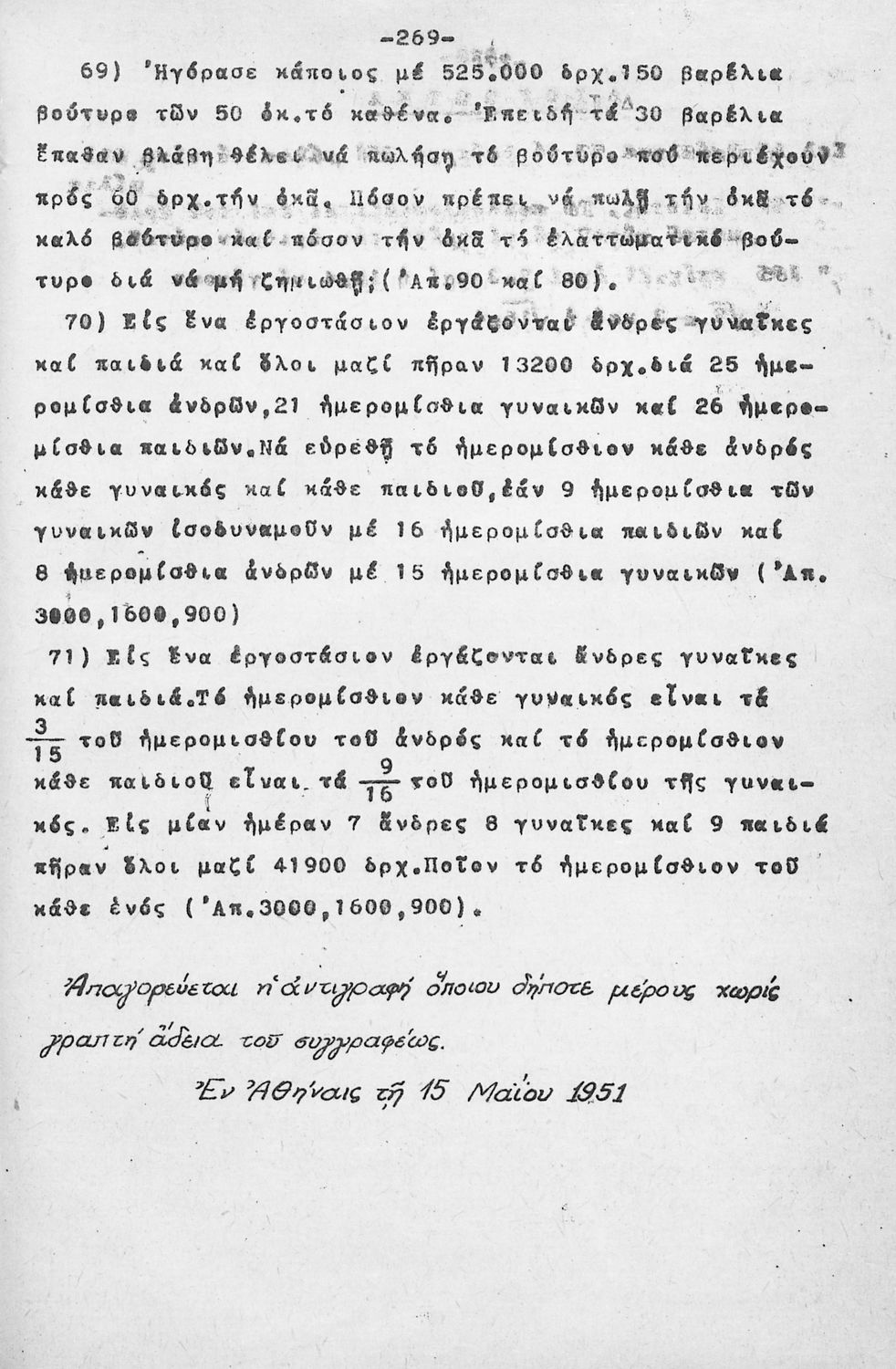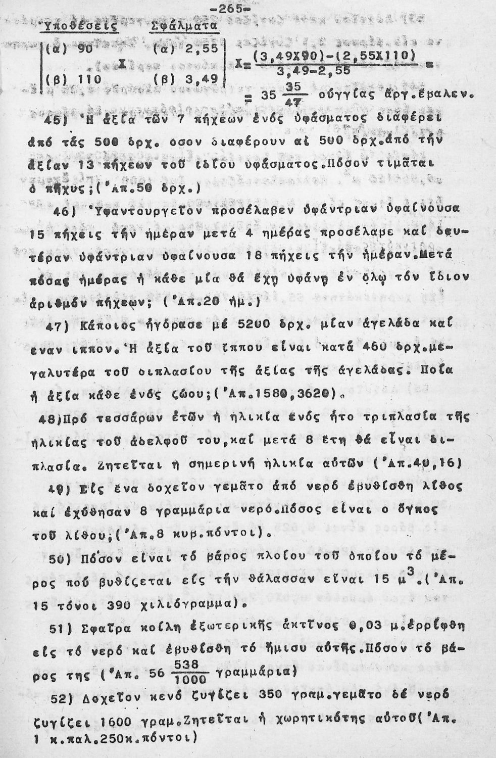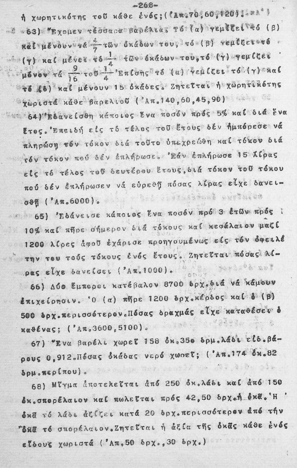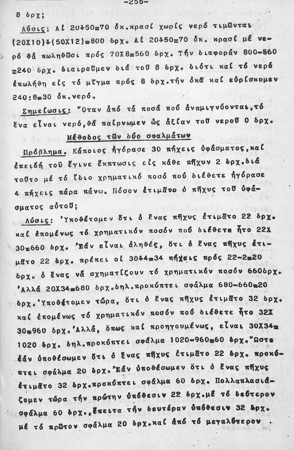 Παιδαγωγικό βοήθημα για τους Δημοδιδασκάλους, τους υποψηφίους των Σχολών Ανωτάτης Εμπορικής και τους μαθητές Πρακτικών Λυκείων των Γυμνασίων που περιέχει ασκήσεις ανώτερης αριθμητικής.