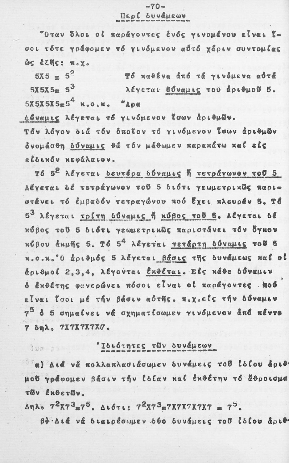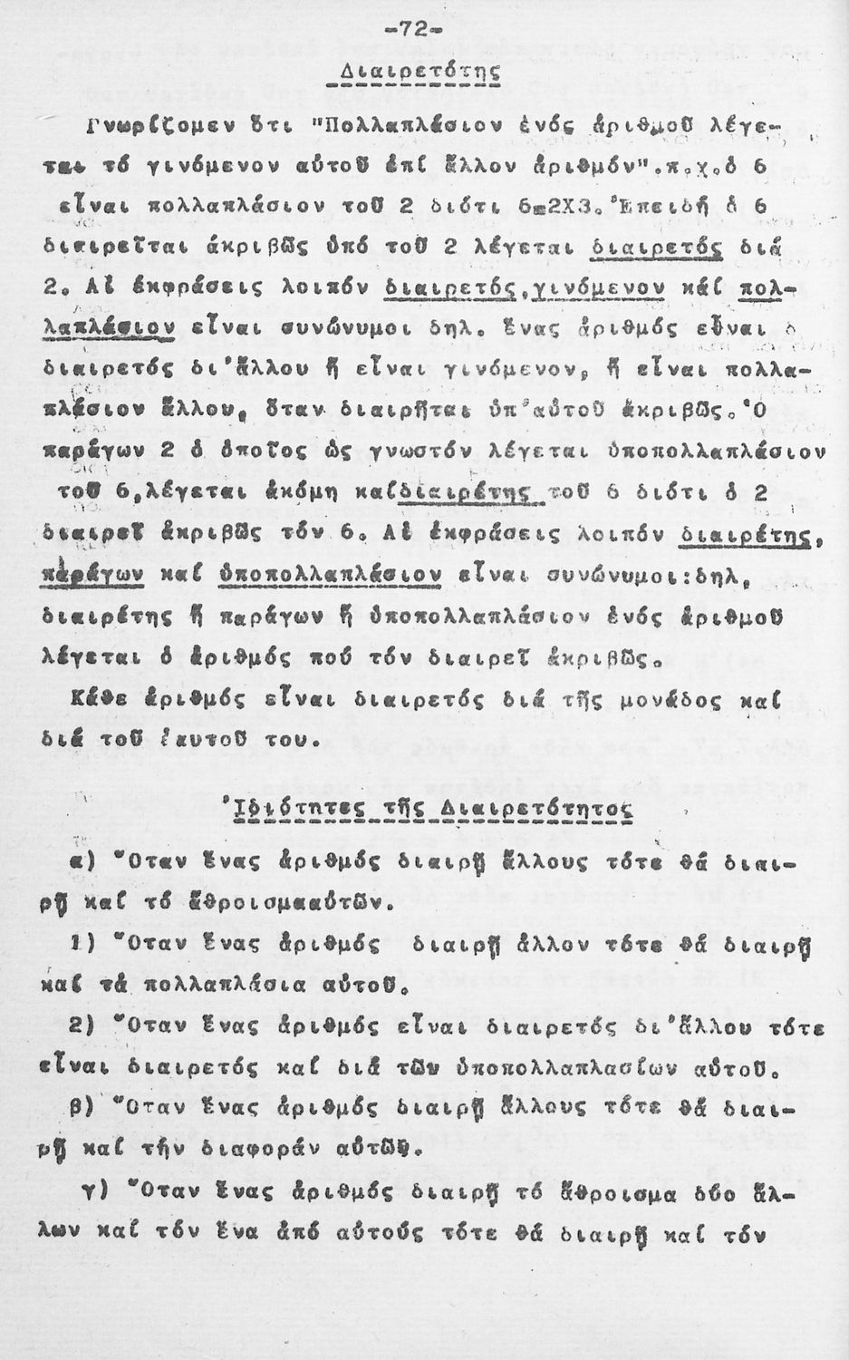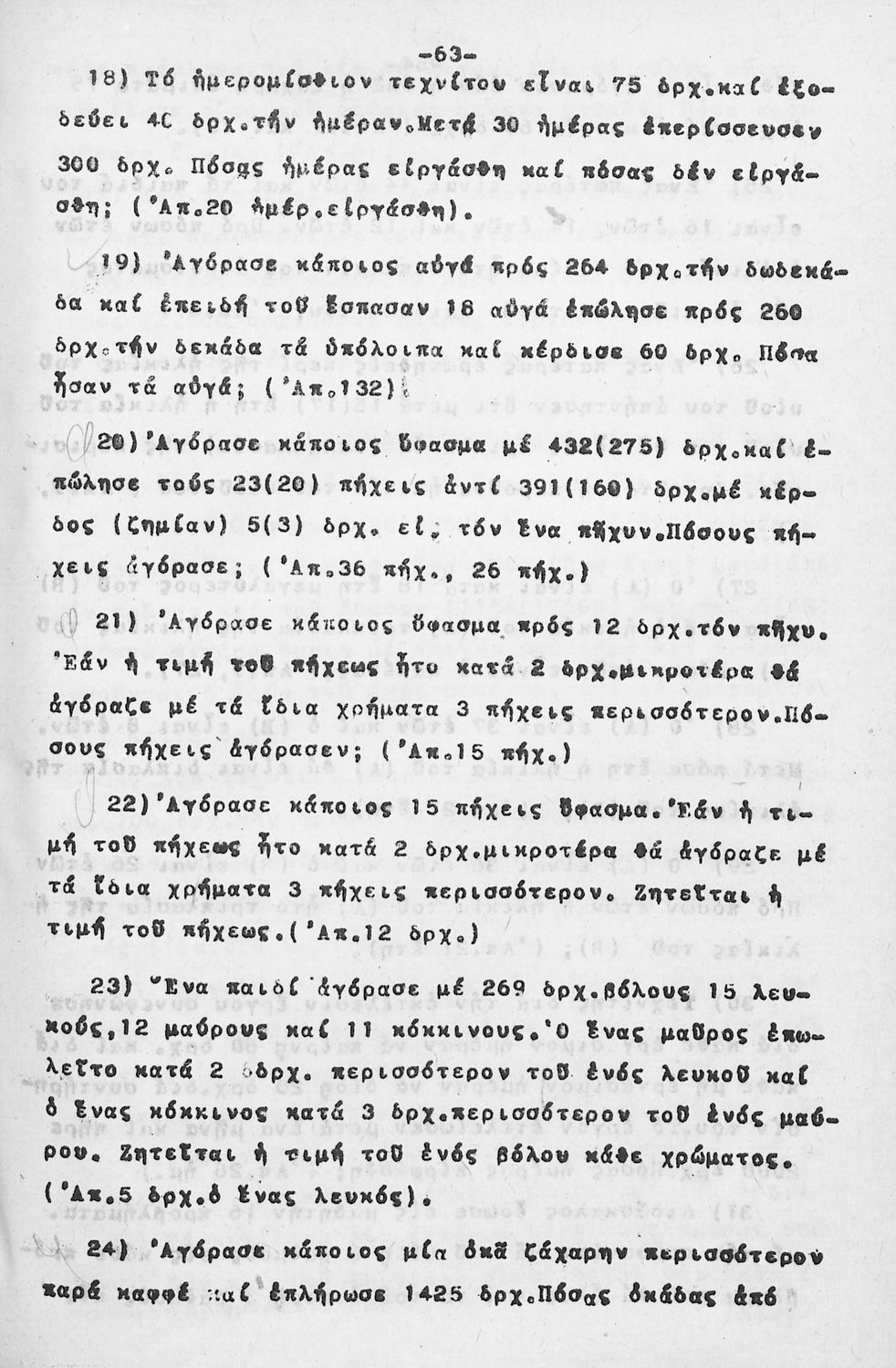 Παιδαγωγικό βοήθημα για τους Δημοδιδασκάλους, τους υποψηφίους των Σχολών Ανωτάτης Εμπορικής και τους μαθητές Πρακτικών Λυκείων των Γυμνασίων που περιέχει ασκήσεις ανώτερης αριθμητικής.