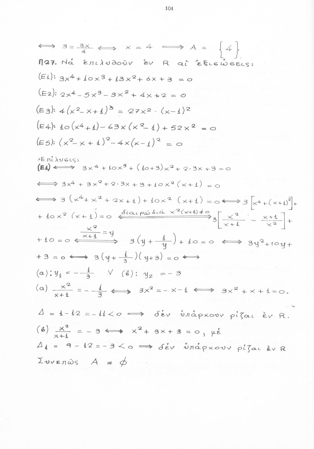 Βαθμίδα εκπαίδευσης: Δευτεροβάθμια Τάξη: Γυμνάσιο Μάθημα: Μαθηματικά Γλώσσα: Καθαρεύουσα Παρουσίαση περιεχομένου: Μαθητικό βοήθημα Άλγεβρας Γυμνασίου που περιλαμβάνει τις εξισώσεις πρώτου και δευτέρου βαθμού και τις εφαρμογές τους, αλγεβρικές εξισώσεις, προβλήματα και ασκήσεις. |