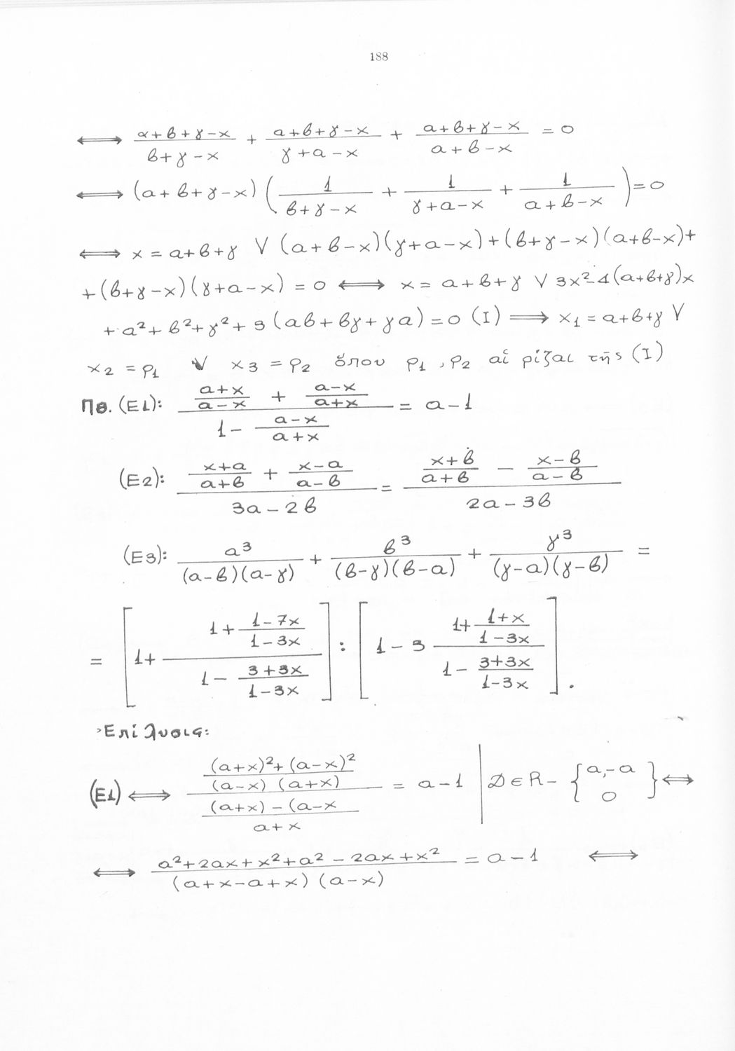 Βαθμίδα εκπαίδευσης: Δευτεροβάθμια Τάξη: Γυμνάσιο Μάθημα: Μαθηματικά Γλώσσα: Καθαρεύουσα Παρουσίαση περιεχομένου: Μαθητικό βοήθημα Άλγεβρας Γυμνασίου που περιλαμβάνει τις εξισώσεις πρώτου και δευτέρου βαθμού και τις εφαρμογές τους, αλγεβρικές εξισώσεις, προβλήματα και ασκήσεις. |