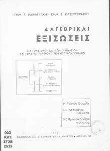 Βαθμίδα εκπαίδευσης: Δευτεροβάθμια Τάξη: Γυμνάσιο Μάθημα: Μαθηματικά Γλώσσα: Καθαρεύουσα Παρουσίαση περιεχομένου: Μαθητικό βοήθημα Άλγεβρας Γυμνασίου που περιλαμβάνει τις εξισώσεις πρώτου και δευτέρου βαθμού και τις εφαρμογές τους, αλγεβρικές εξισώσεις, προβλήματα και ασκήσεις. |
