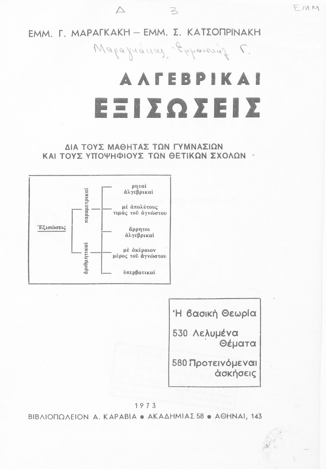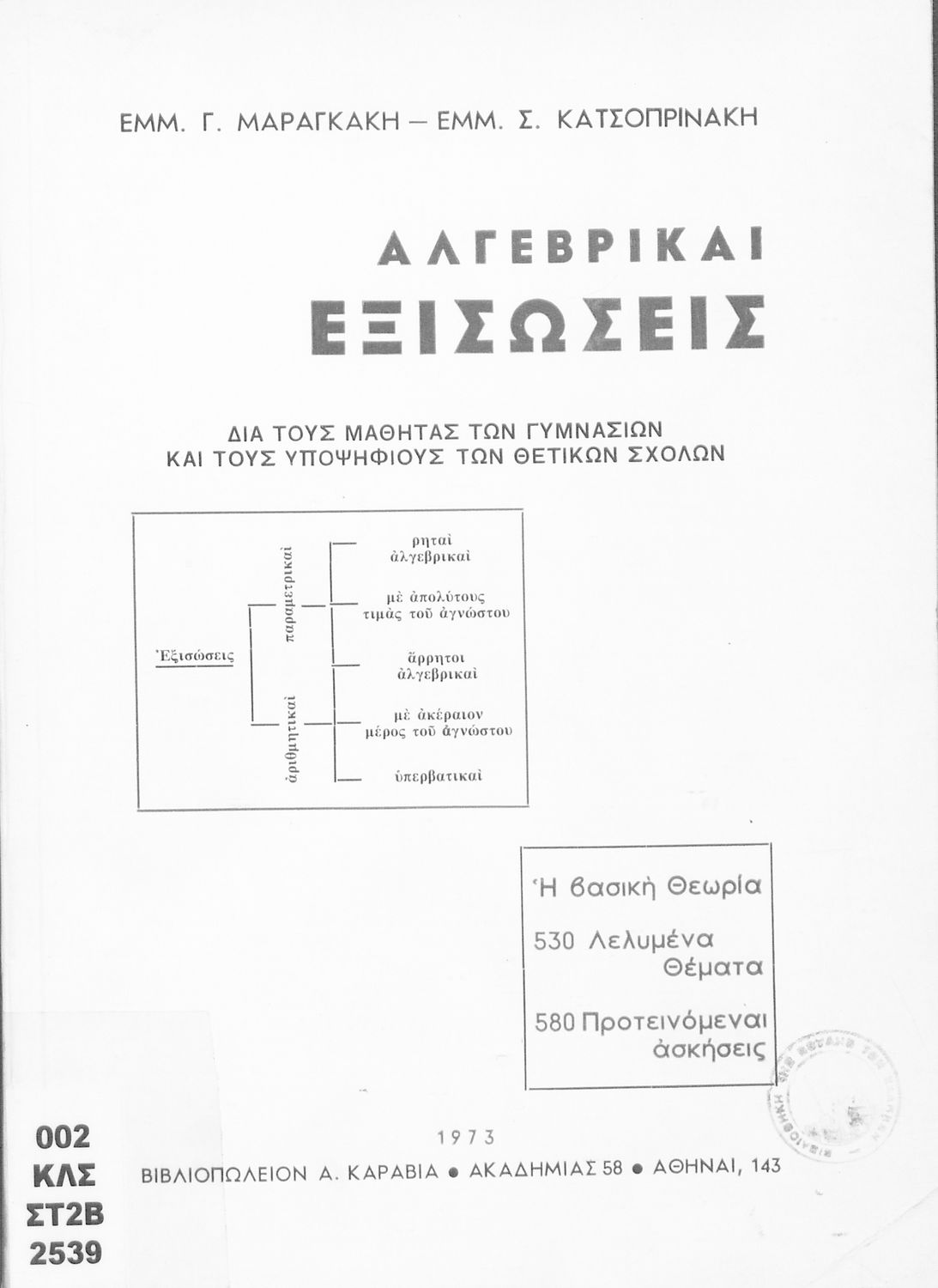 Εκδότης: Α. Καραβίας Έτος έκδοσης: 1973 Τόπος έκδοσης: Αθήνα |