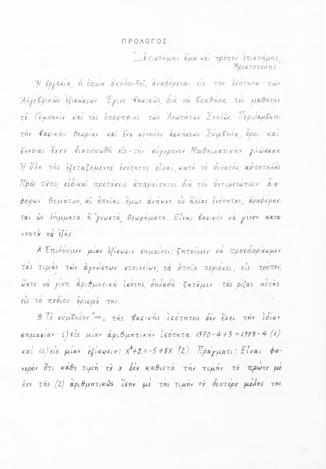 Μαθητικό βοήθημα Άλγεβρας Γυμνασίου που περιλαμβάνει τις εξισώσεις πρώτου και δευτέρου βαθμού και τις εφαρμογές τους, αλγεβρικές εξισώσεις, προβλήματα και ασκήσεις.
