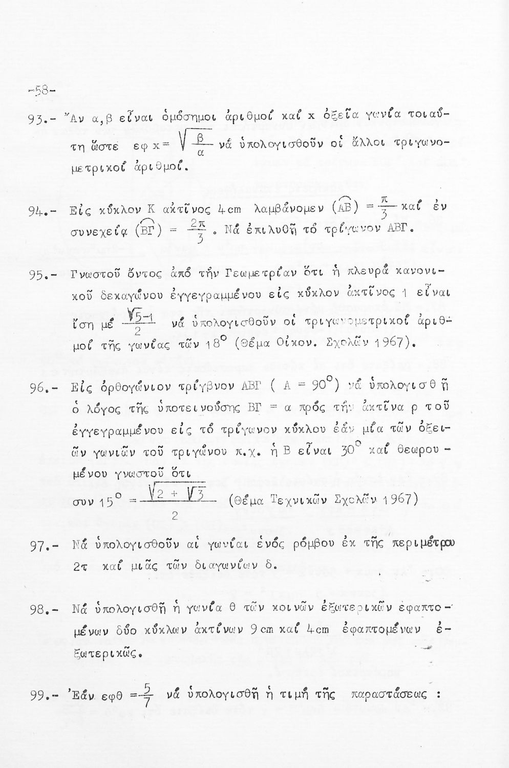 Μαθήματα Τριγωνομετρίας δια τους υποψηφίους του οικονομικού και τεχνικού κύκλου