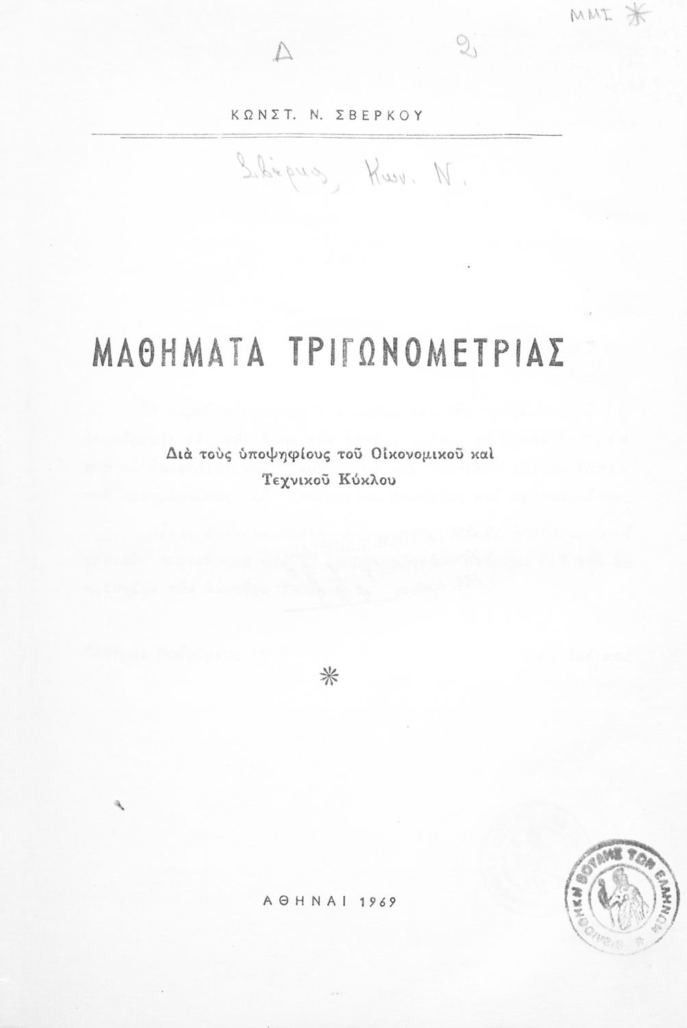 Έτος έκδοσης: 1969 Τόπος έκδοσης: Αθήνα |