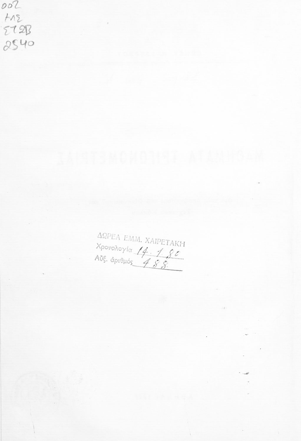 LDR 01048 2200181 4500 035 ## _a03-20632654 040 ## _aΒιβλιοθήκη της Βουλής των Ελλήνων 041 ## _ael 100 ## _aΚωνσταντίνος Ν. Σβέρκος 110 ## _a20632654 245 0# _aΜαθήματα Τριγωνομετρίας δια τους υποψηφίους του οικονομικού και τεχνικού κύκλου 260 ## _aΑθήνα _c1969 300 ## _a88 520 ## _aΜαθητικό βοήθημα για τους υποψήφιους των Οικονομικού και Τεχνικού κύκλου που παρουσιάζει εν συντομία τα βασικά θεωρήματα τριγωνομετρίας καθώς και ασκήσεις για εξάσκηση. 522 ## _aΕλλάδα 546 ## _aΑπλή καθαρεύουσα 563 ## _aΜαλακό Εξώφυλλο 650 #4 _aΑσκήσεις _aΔιανύσματα _aΤόξο _aΤριγωνομετρία _aΤριγωνομετρικοί αριθμοί