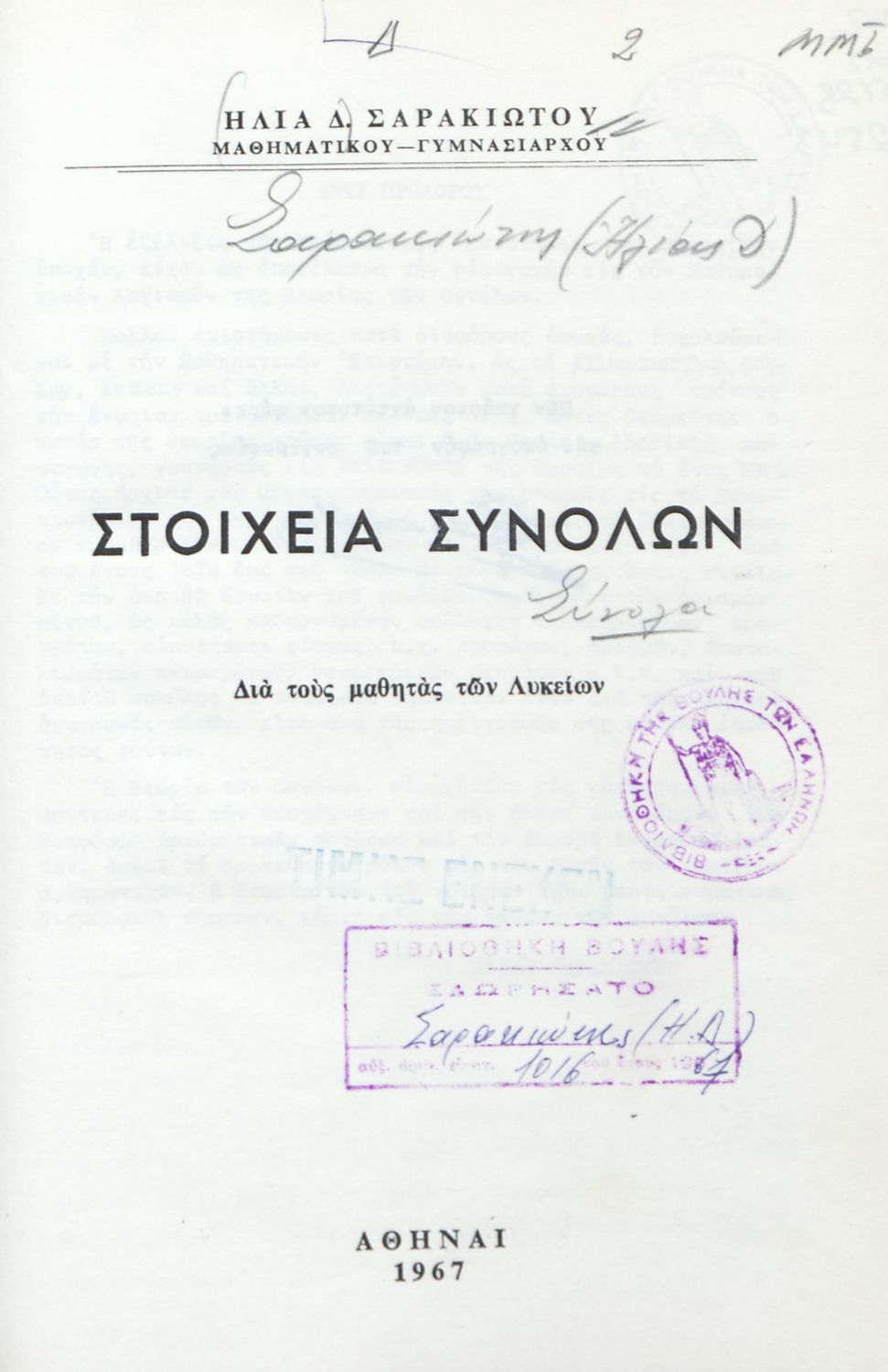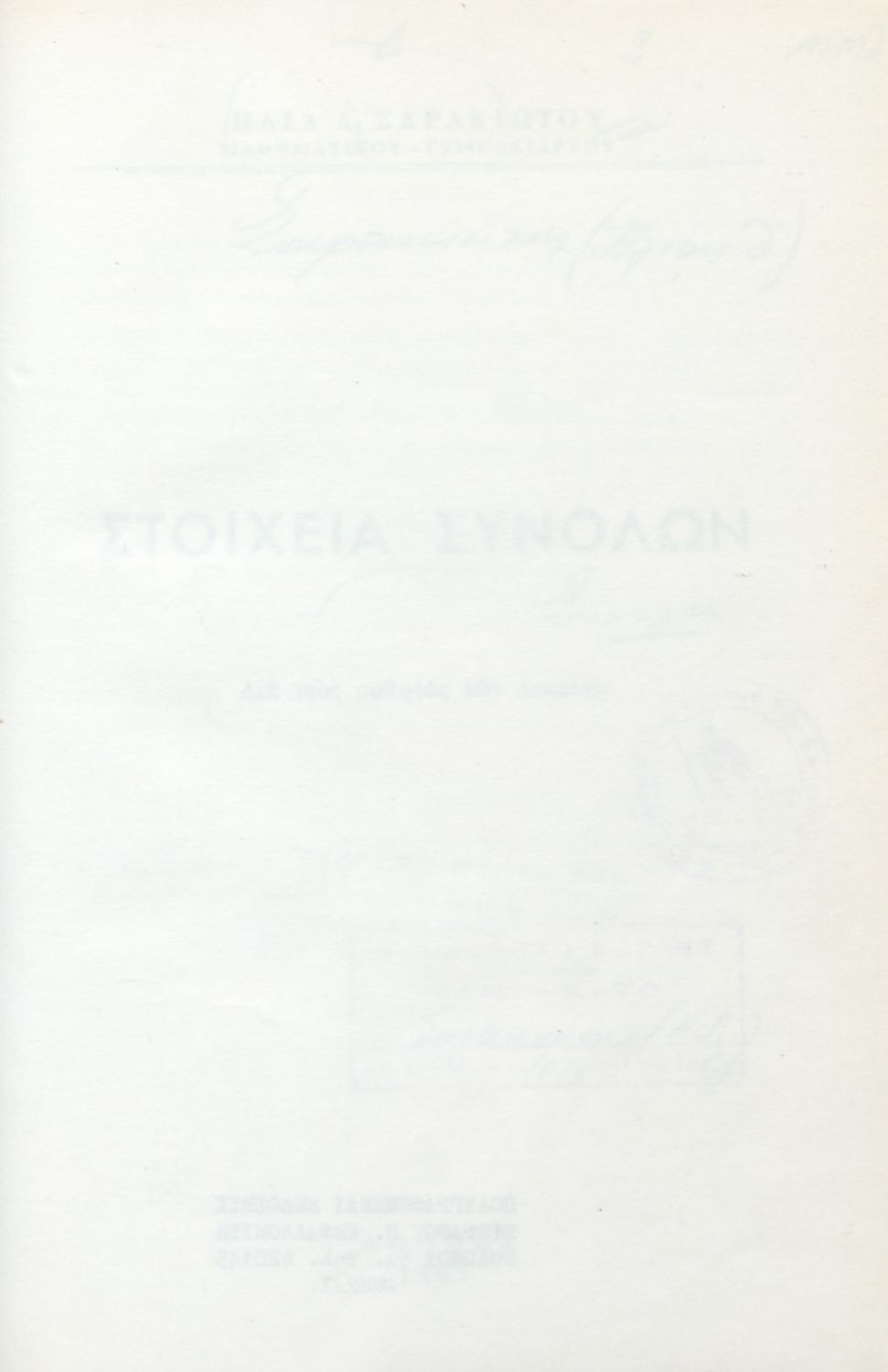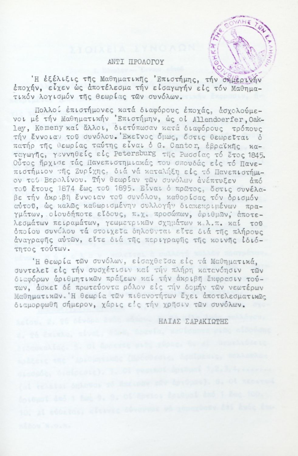 Μαθητικό βοήθημα για τους μαθητές των Λυκείων. Το βιβλίο ασχολείται με τη Θεωρία των Συνόλων και αναδεικνύει τη σημασία της στην ανάπτυξη των Μαθηματικών.