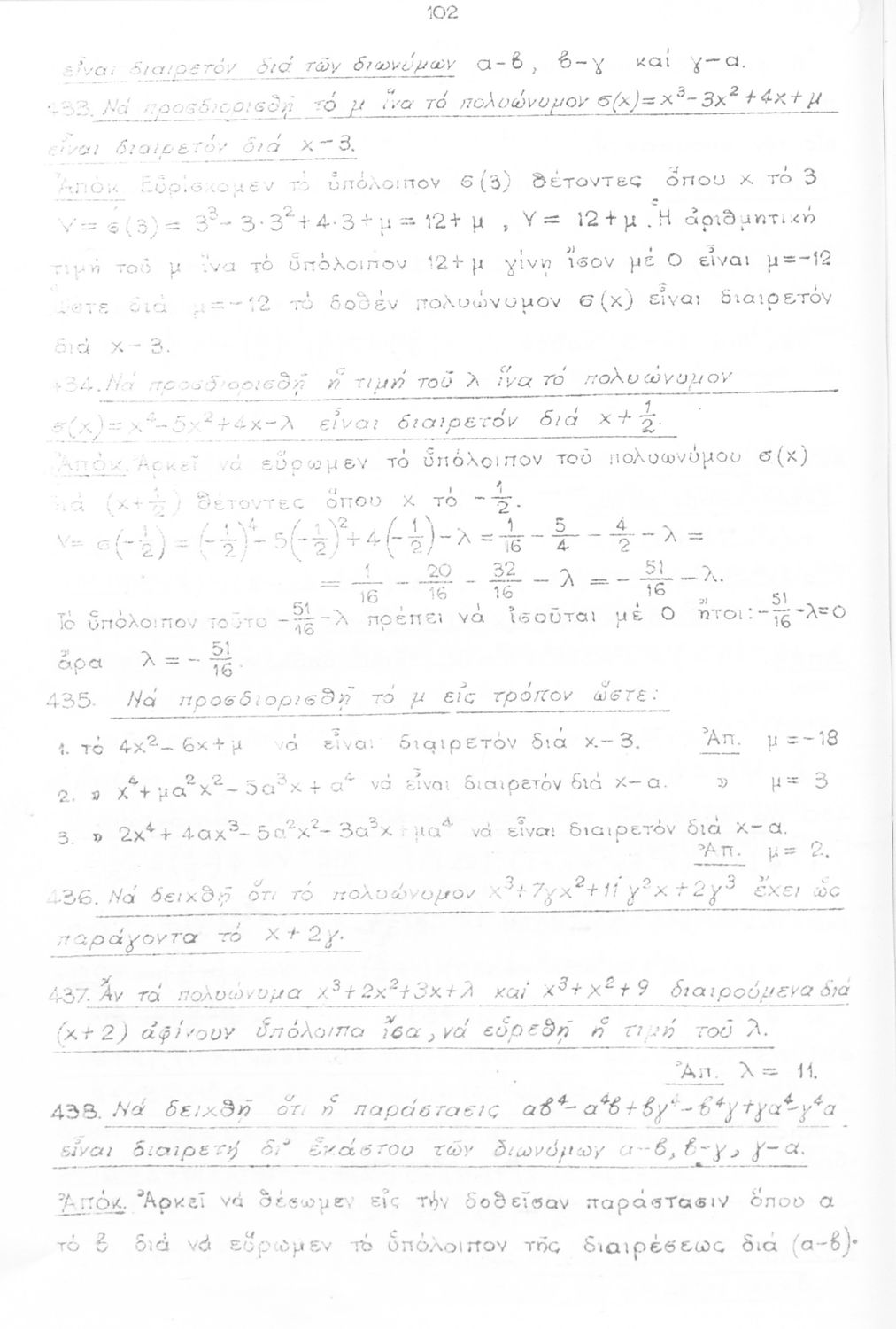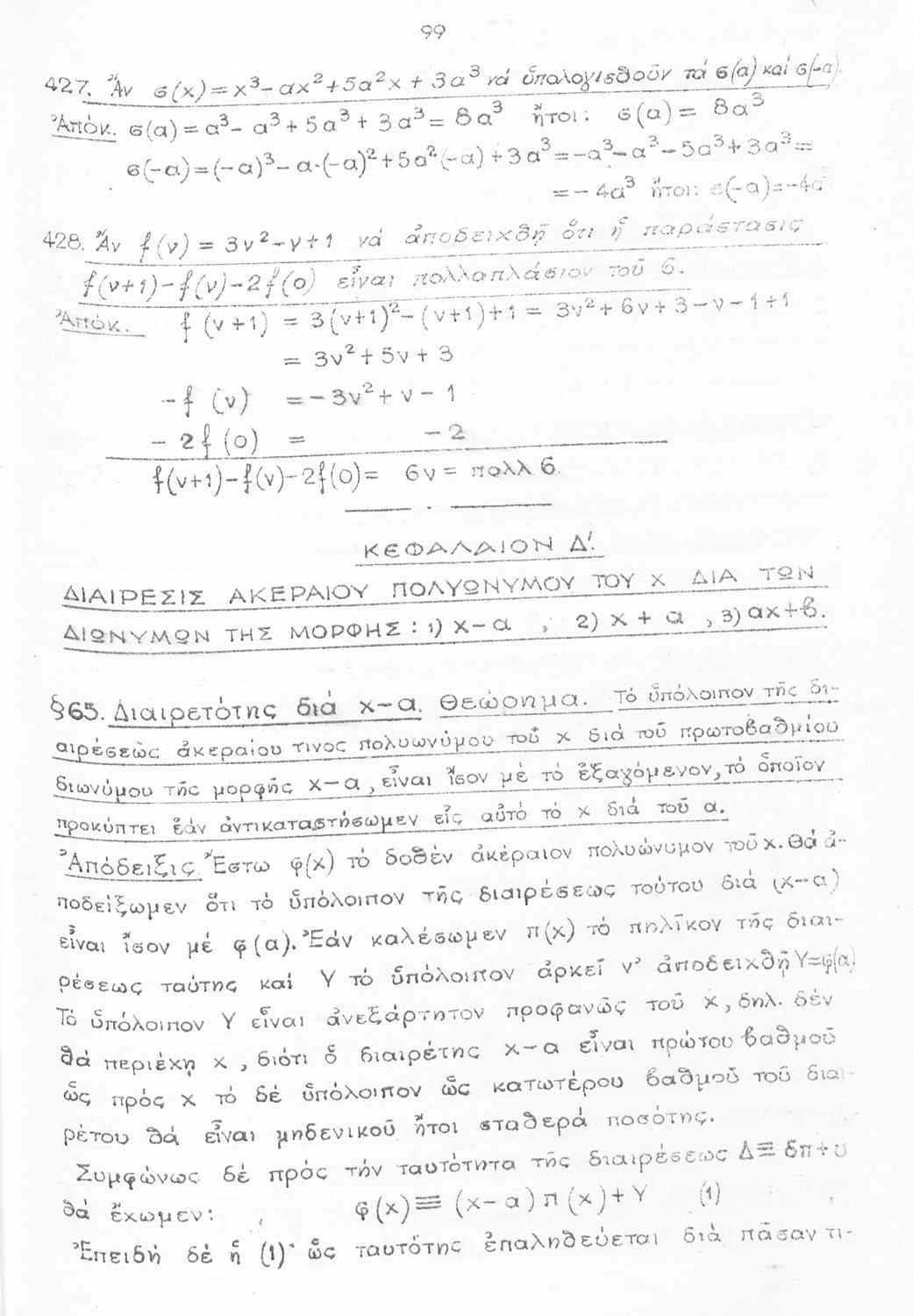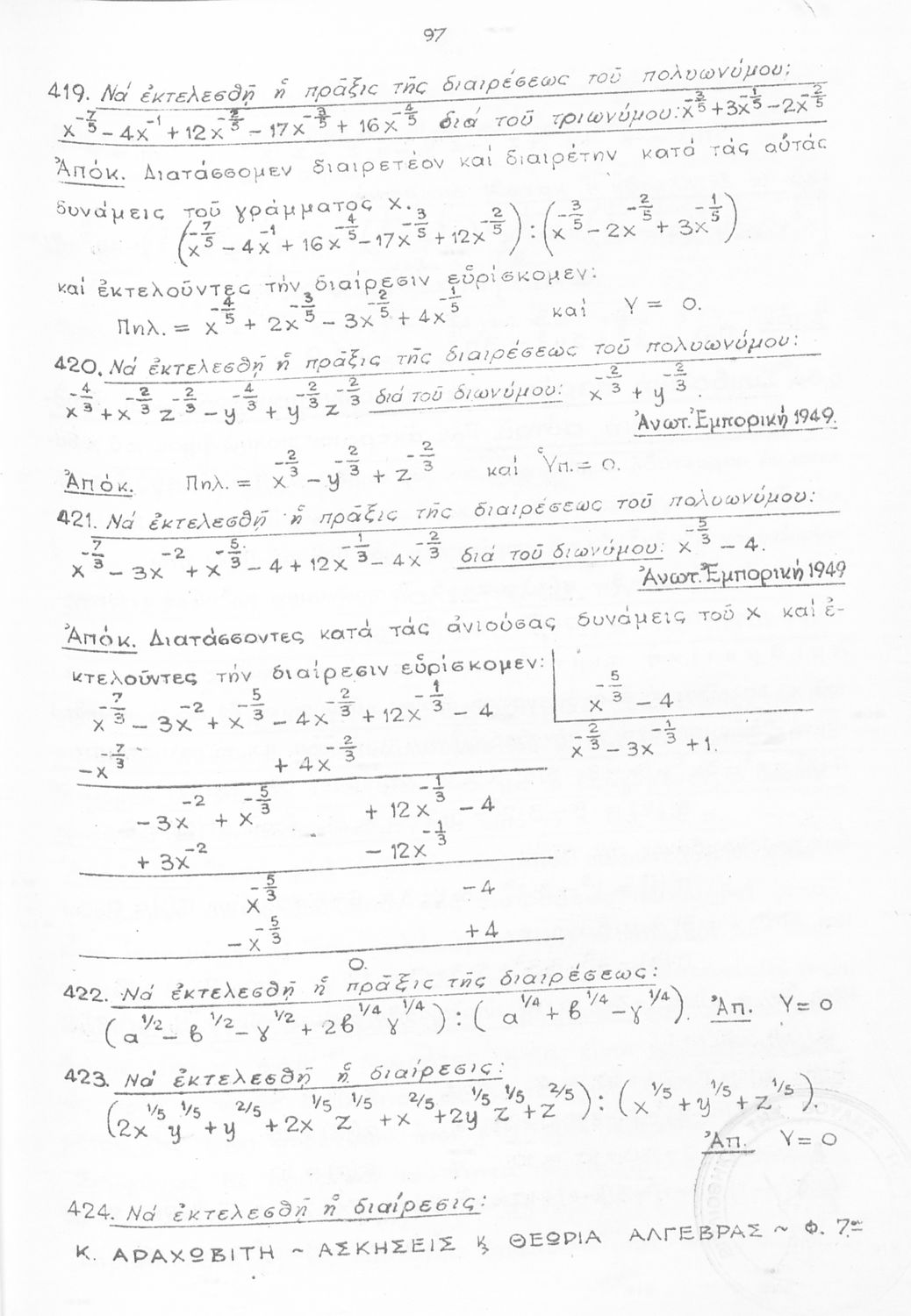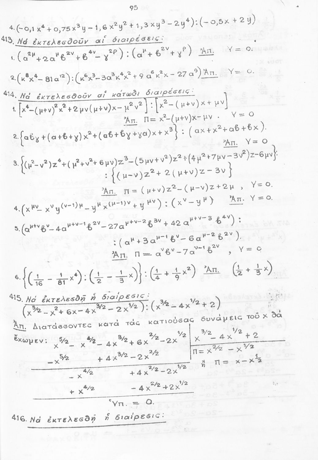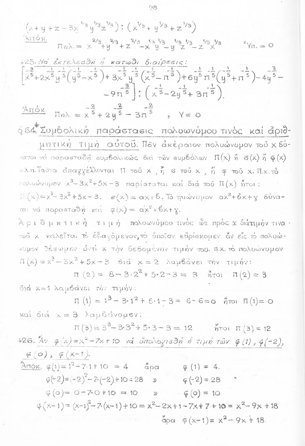 Μαθητικό βοήθημα Μαθηματικών για τα Γυμνάσια και Λύκεια που εστιάζει στις αλγεβρικές παραστάσεις, τις δυνάμεις, τα πολυώνυμα, τις ταυτότητες, και τα αλγεβρικά και σύνθετα κλάσματα. Περιέχει και ασκήσεις.