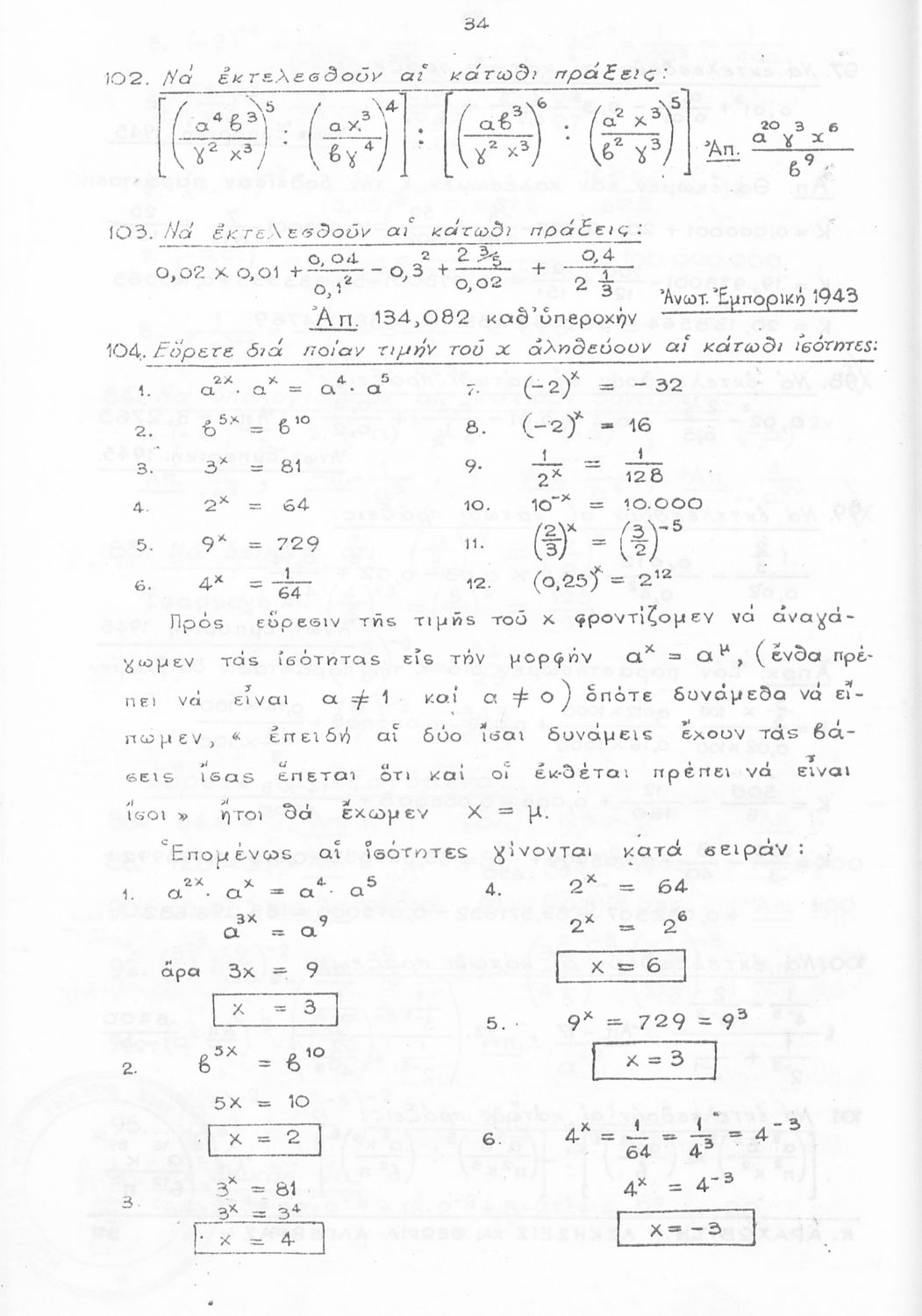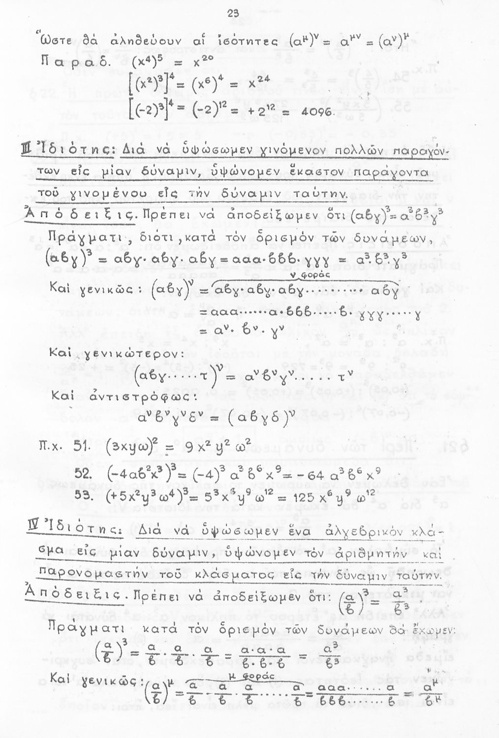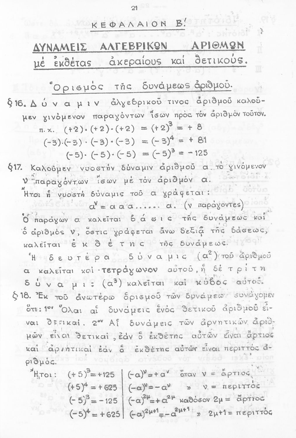 Μαθητικό βοήθημα για τα Κλασσικά Γυμνάσια και Πρακτικά Λύκεια που περιέχει θεωρία της άλγεβρας και ασκήσεις για εμπέδωση. Λανθασμένη αρίθμηση σελίδων.