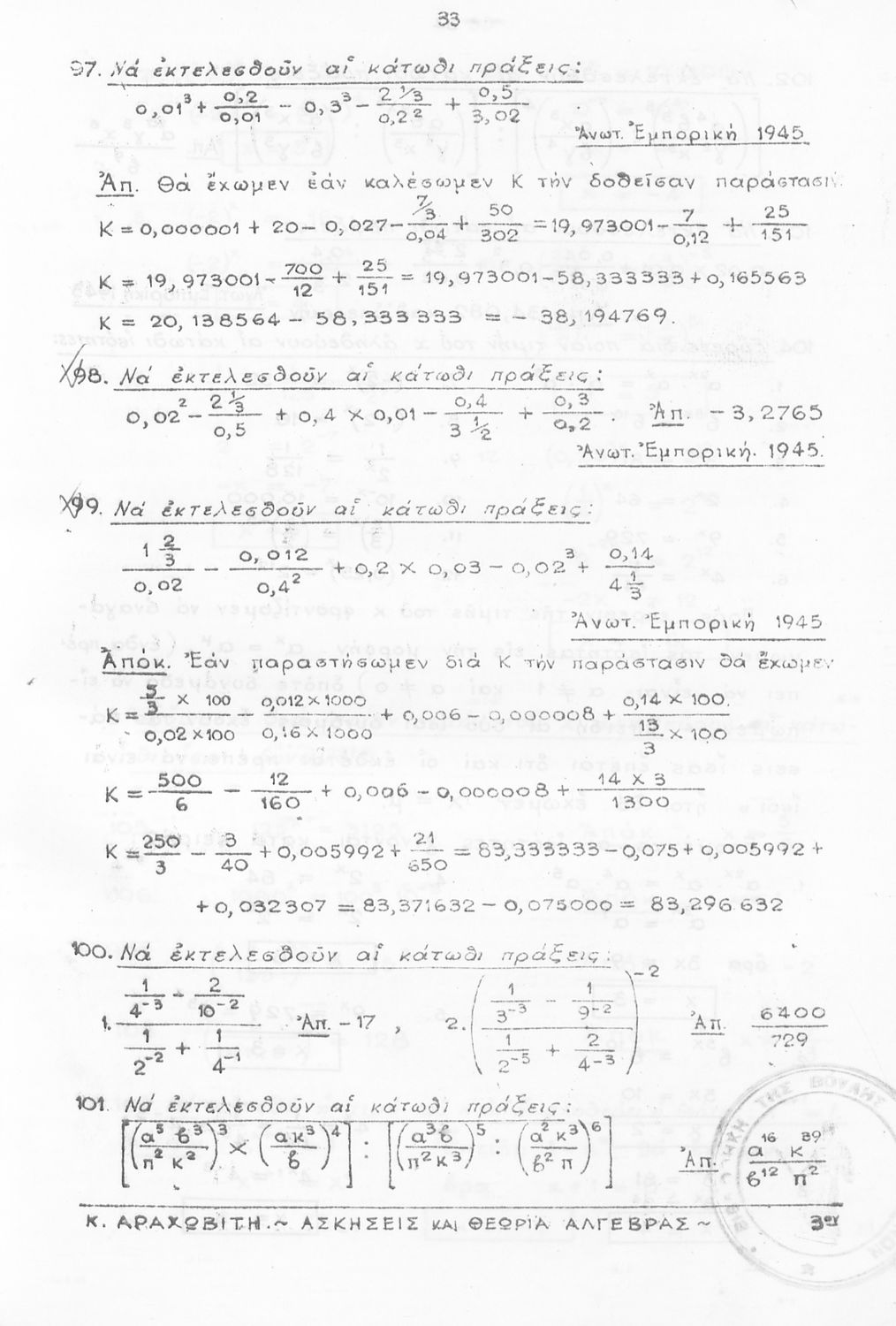 Ασκήσεις λελυμέναι και θεωρία άλγεβρας τόμος πρώτος προς χρήσιν των μαθητών των Γυμνασίων, πρακτικών λυκείων και των υποψηφίων των ανωτάτων σχολών του κράτους