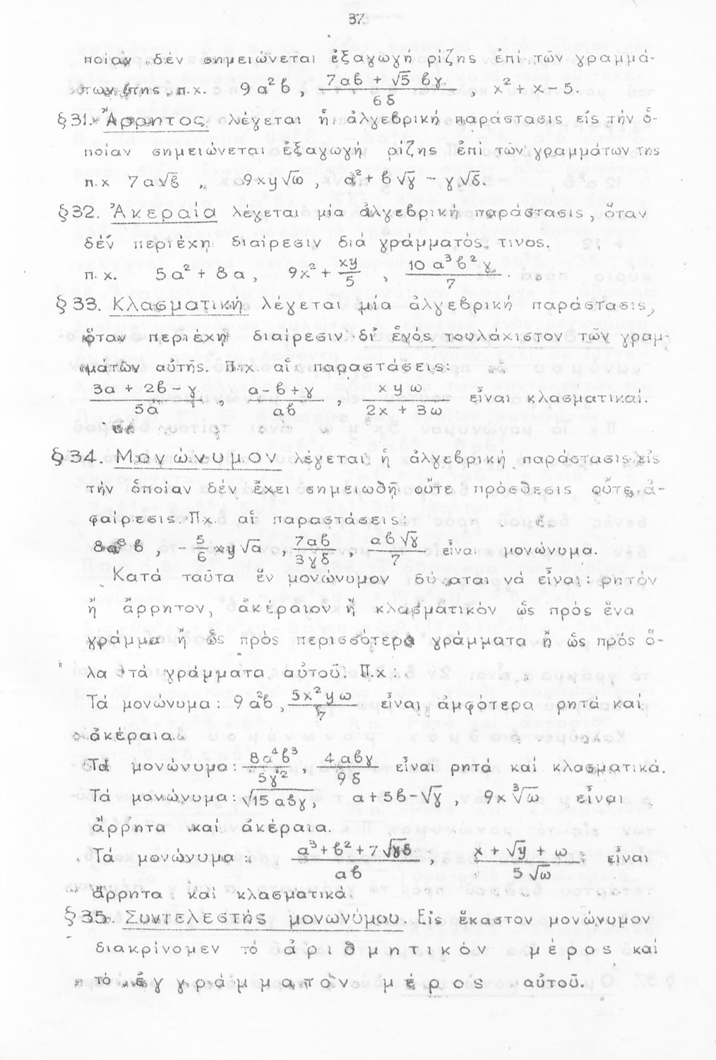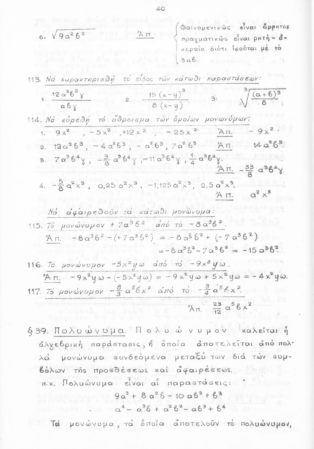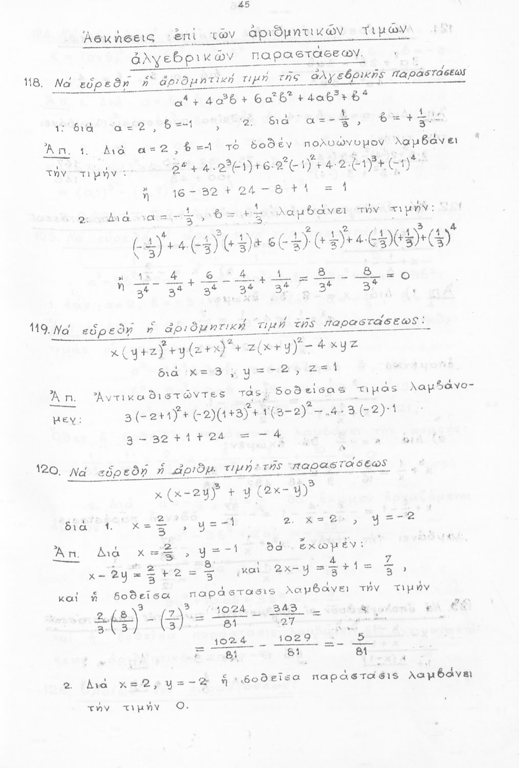 Μαθητικό βοήθημα Μαθηματικών για τα Γυμνάσια και Λύκεια που εστιάζει στις αλγεβρικές παραστάσεις, τις δυνάμεις, τα πολυώνυμα, τις ταυτότητες, και τα αλγεβρικά και σύνθετα κλάσματα. Περιέχει και ασκήσεις.