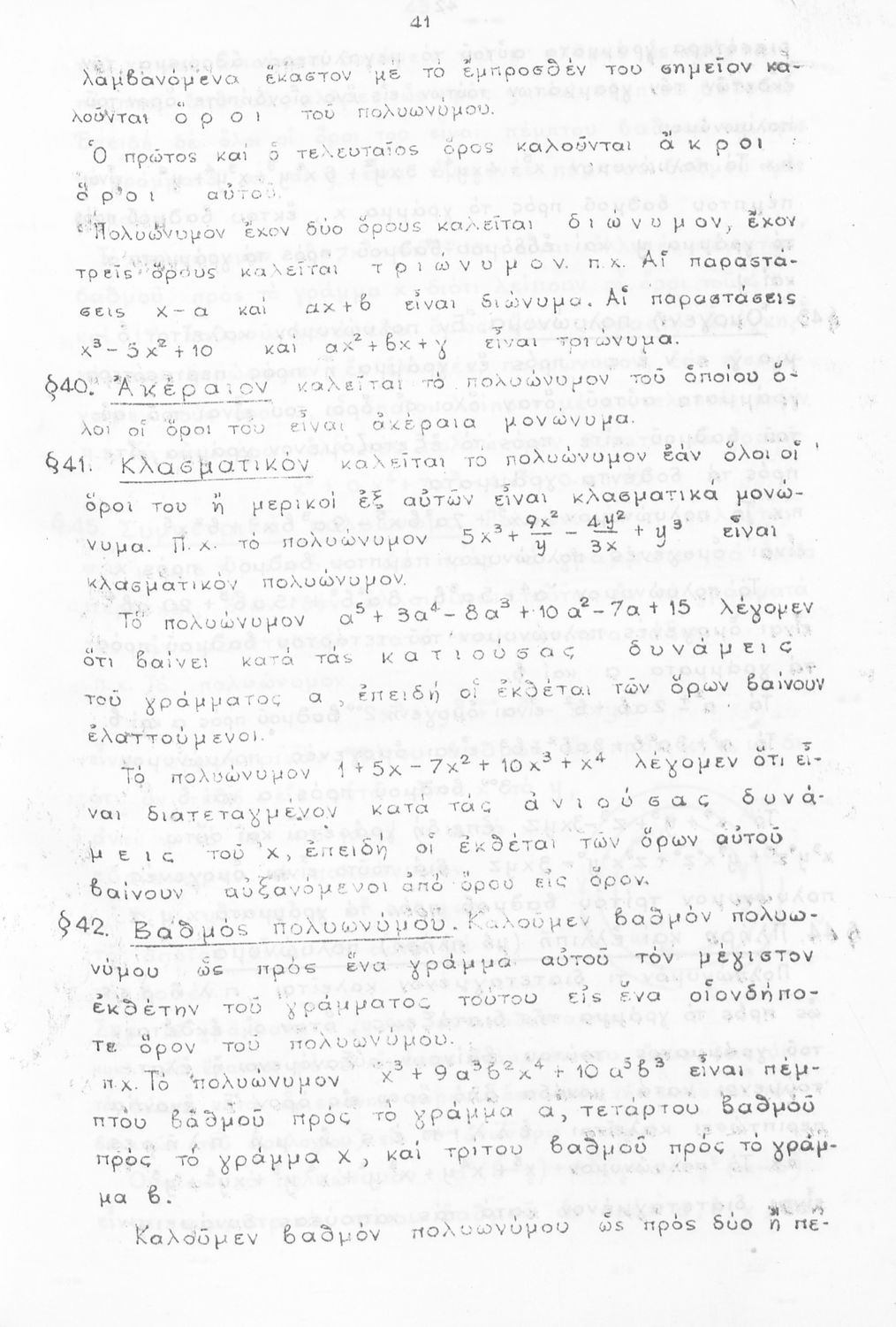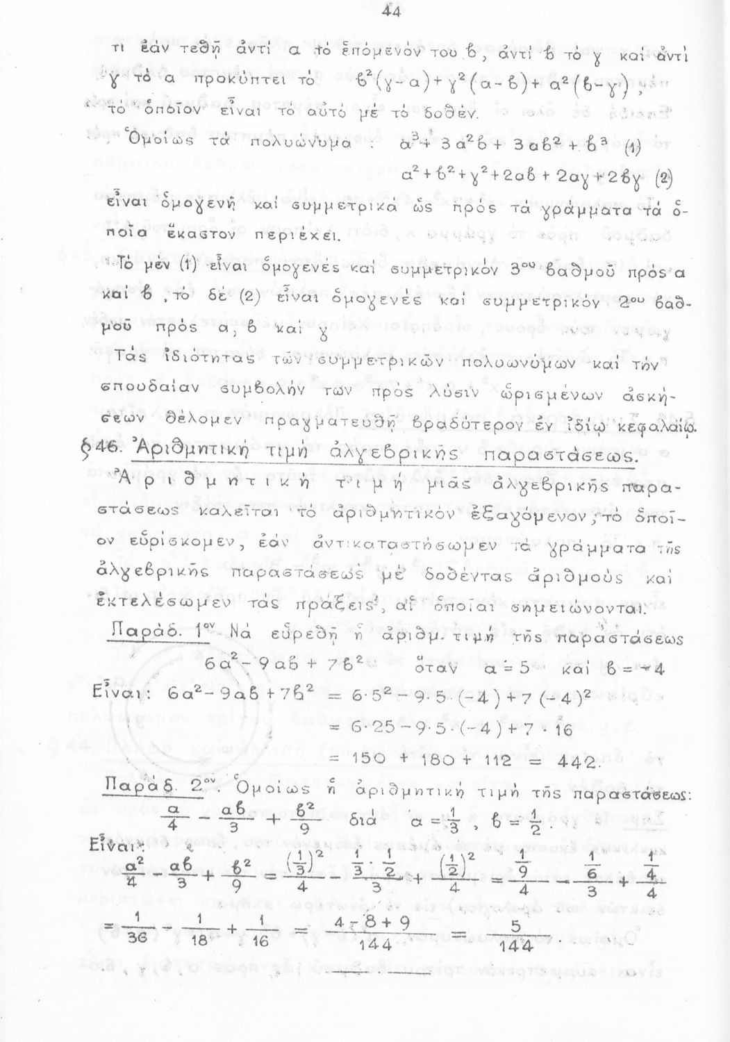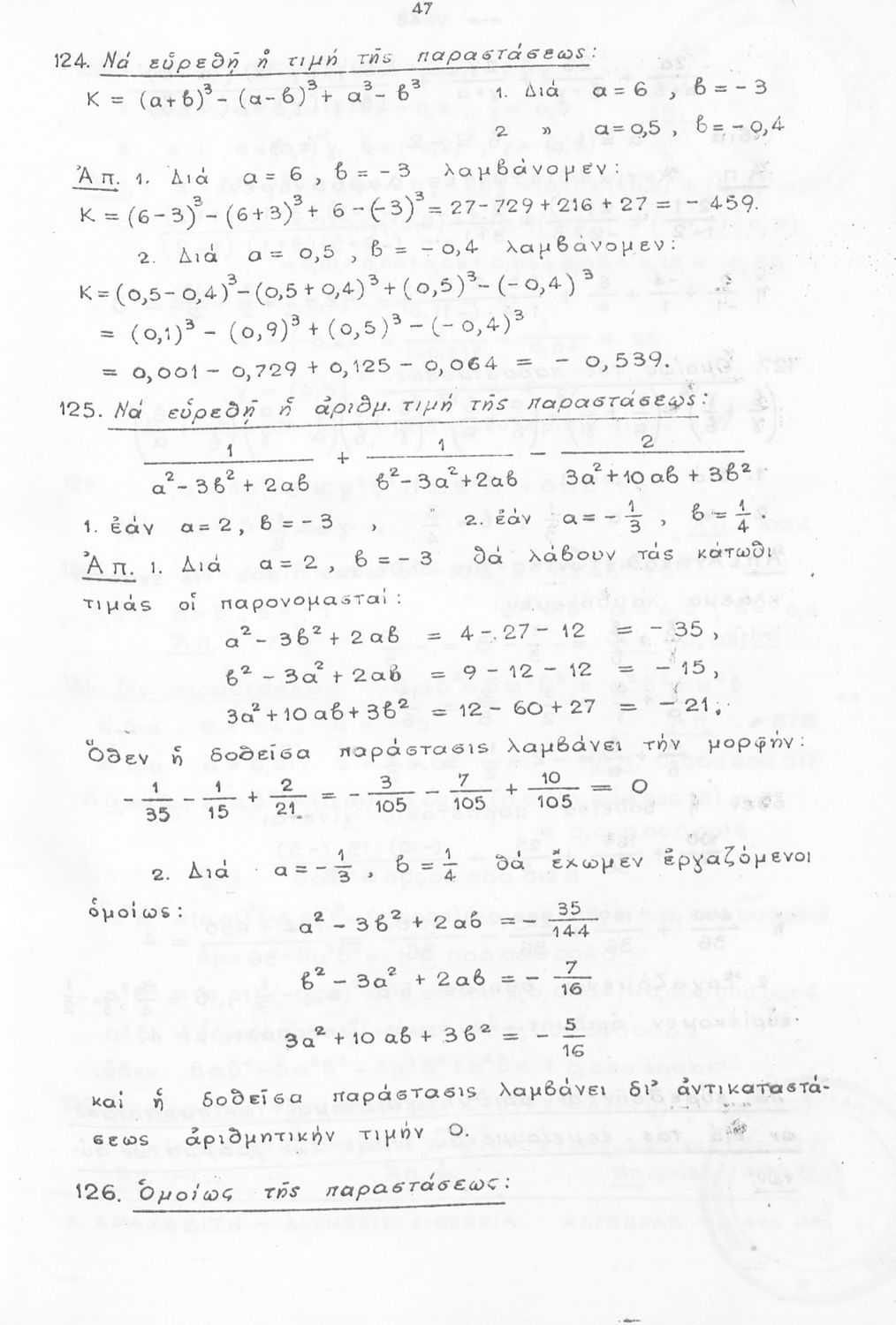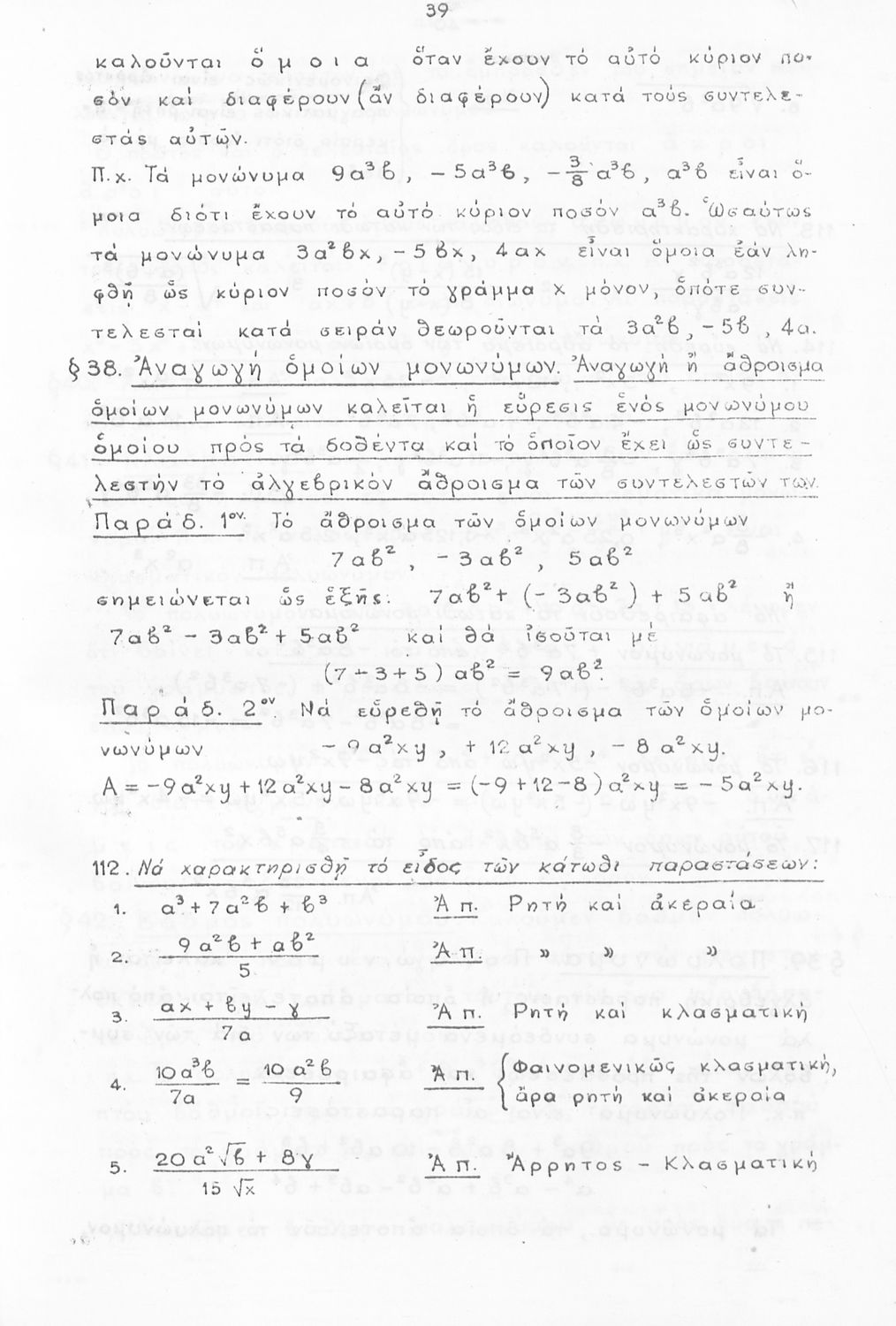 Μαθητικό βοήθημα Μαθηματικών για τα Γυμνάσια και Λύκεια που εστιάζει στις αλγεβρικές παραστάσεις, τις δυνάμεις, τα πολυώνυμα, τις ταυτότητες, και τα αλγεβρικά και σύνθετα κλάσματα. Περιέχει και ασκήσεις.
