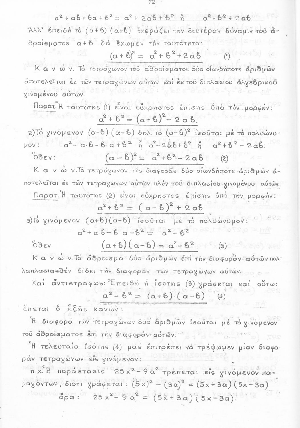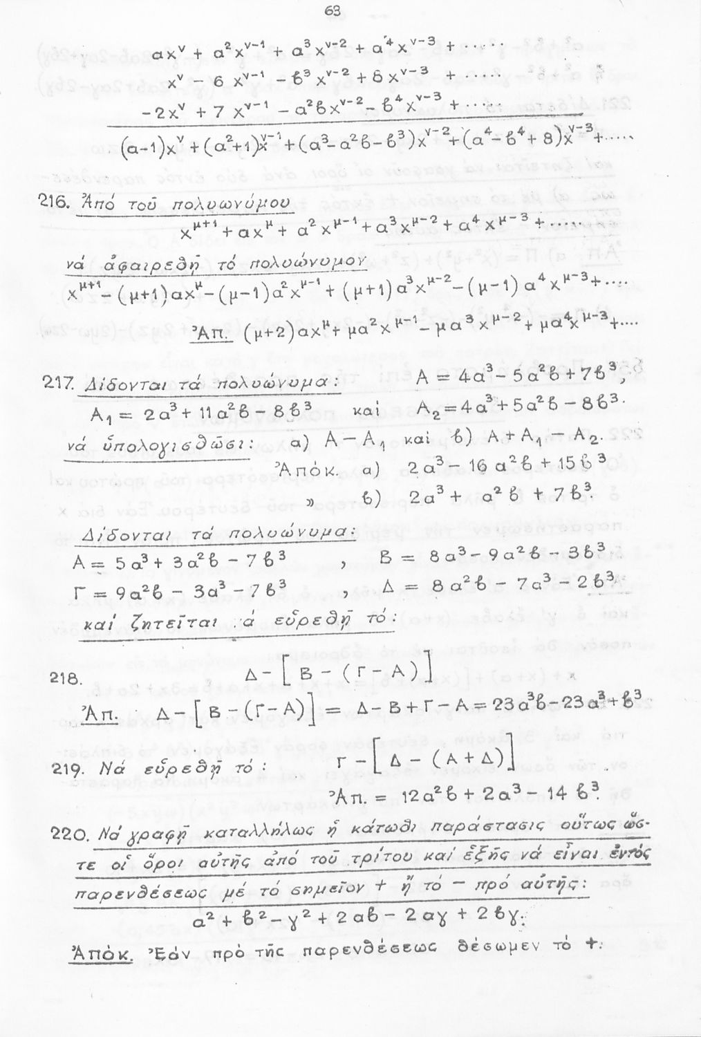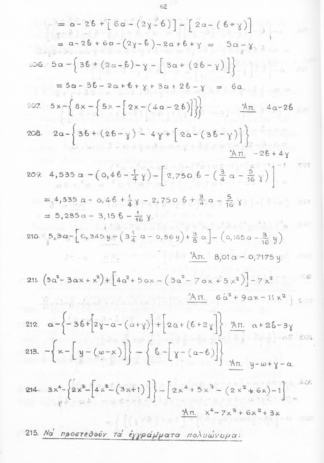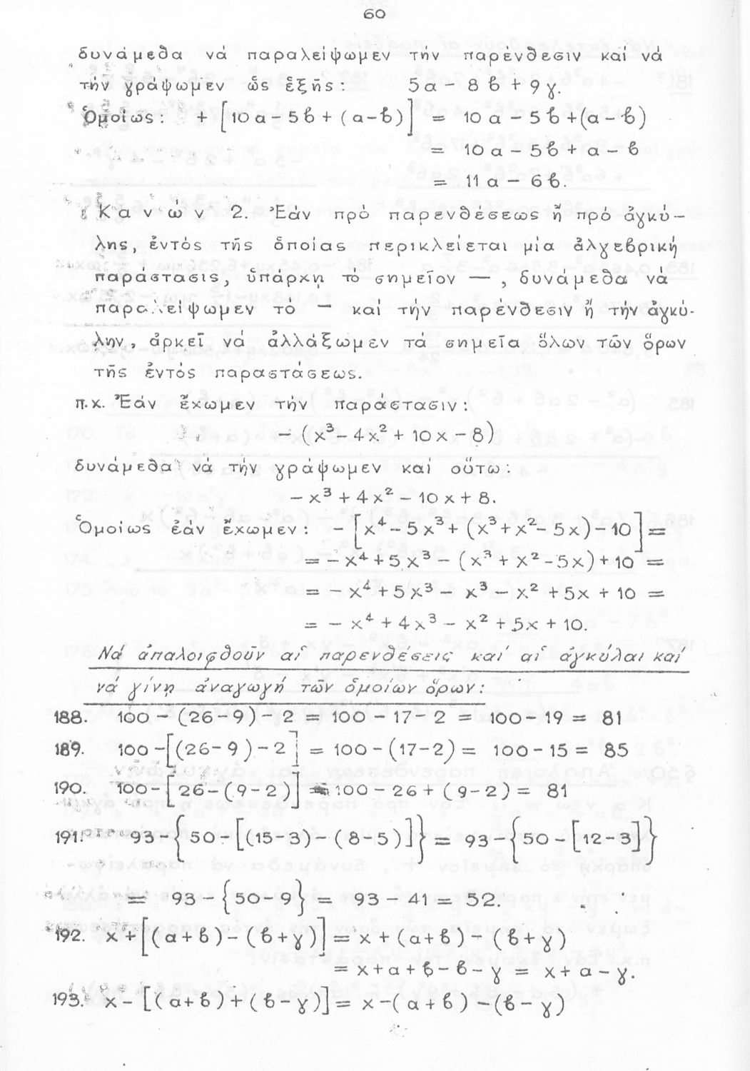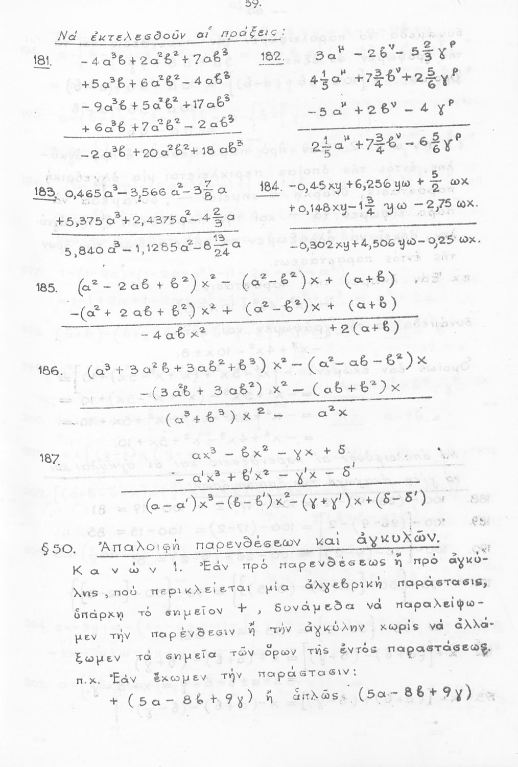 Μαθητικό βοήθημα Μαθηματικών για τα Γυμνάσια και Λύκεια που εστιάζει στις αλγεβρικές παραστάσεις, τις δυνάμεις, τα πολυώνυμα, τις ταυτότητες, και τα αλγεβρικά και σύνθετα κλάσματα. Περιέχει και ασκήσεις.