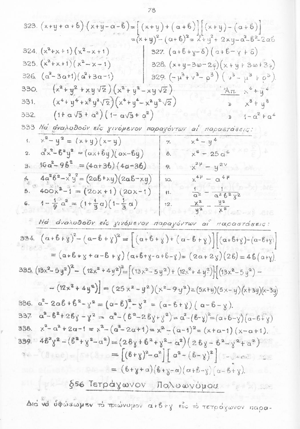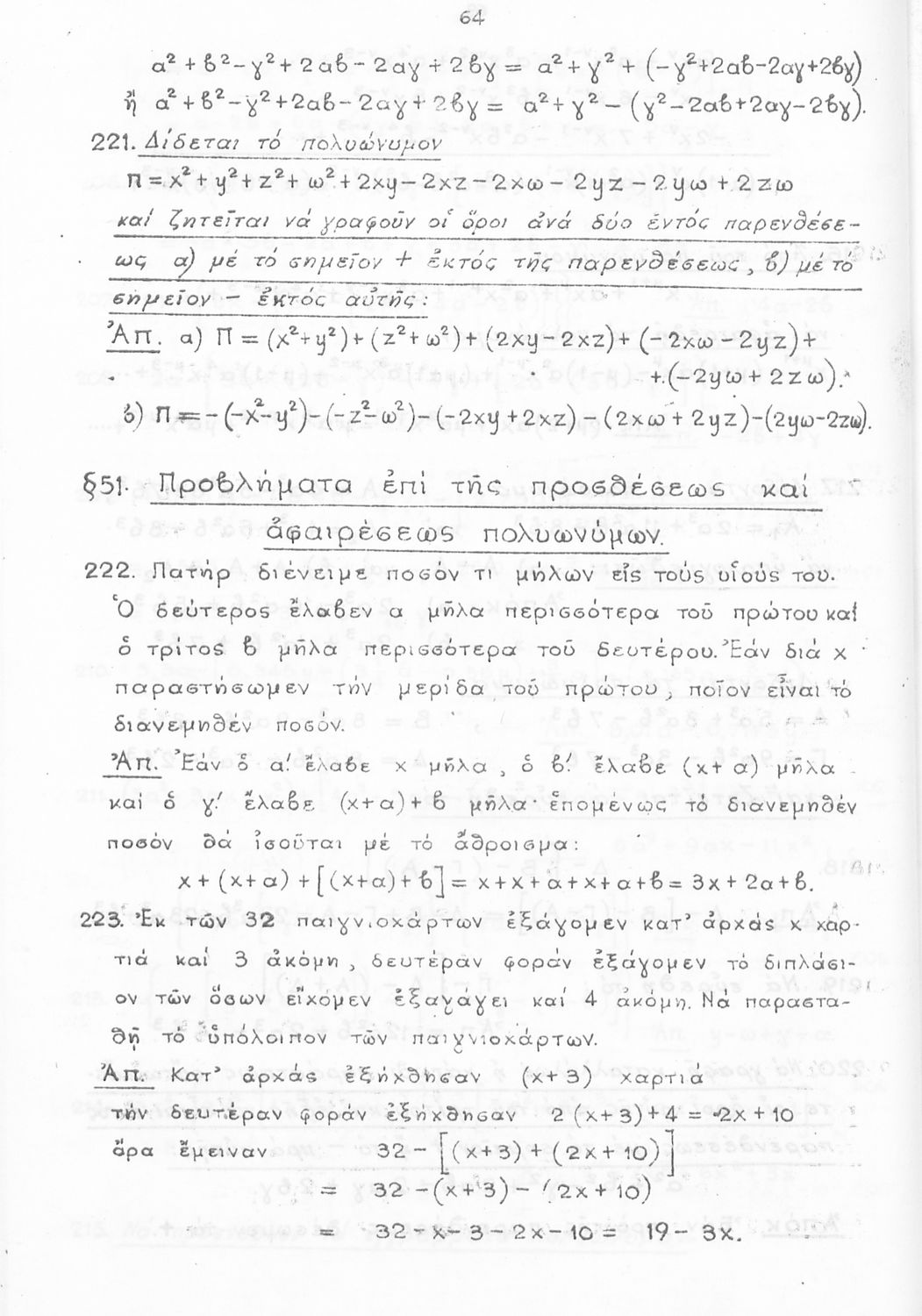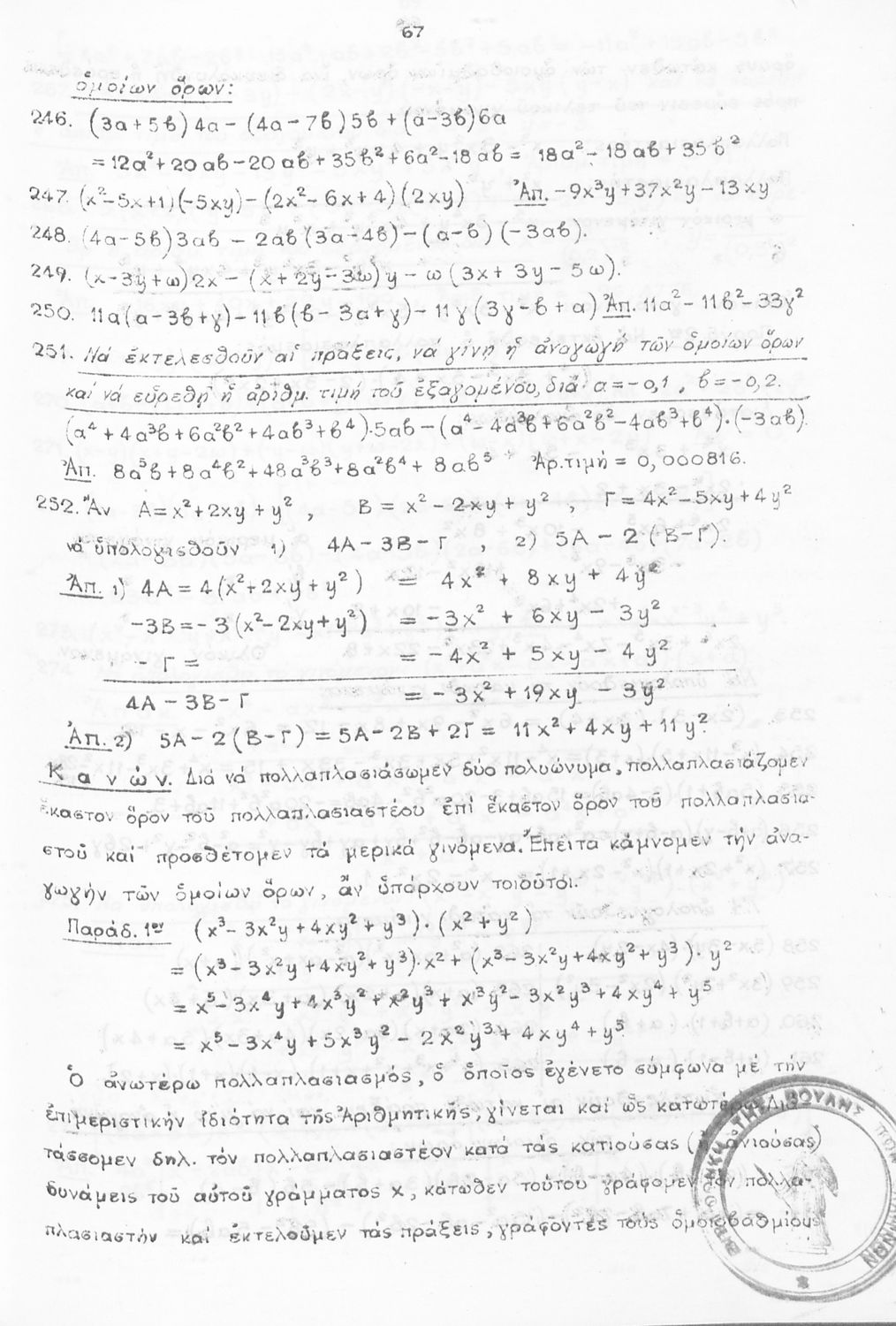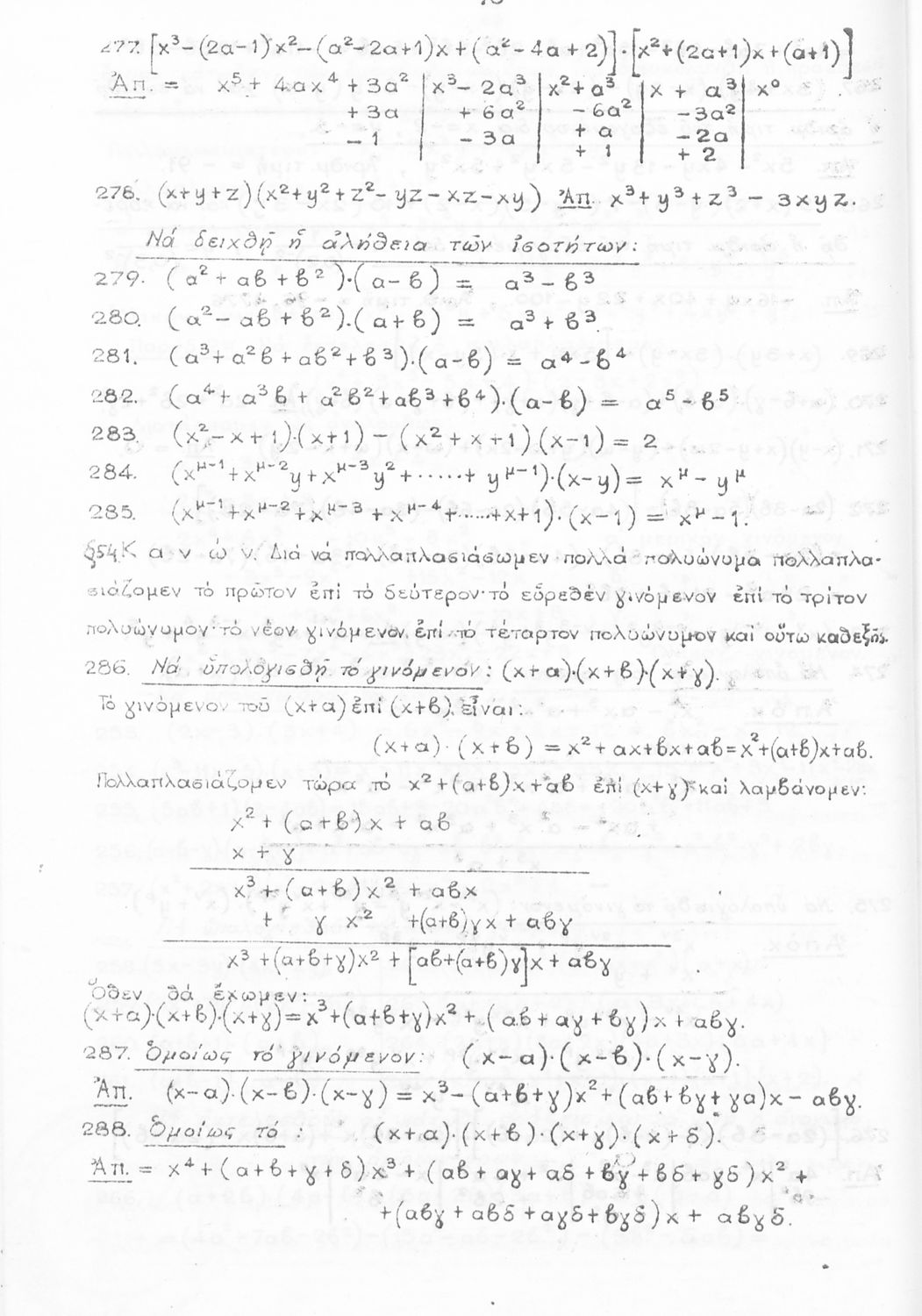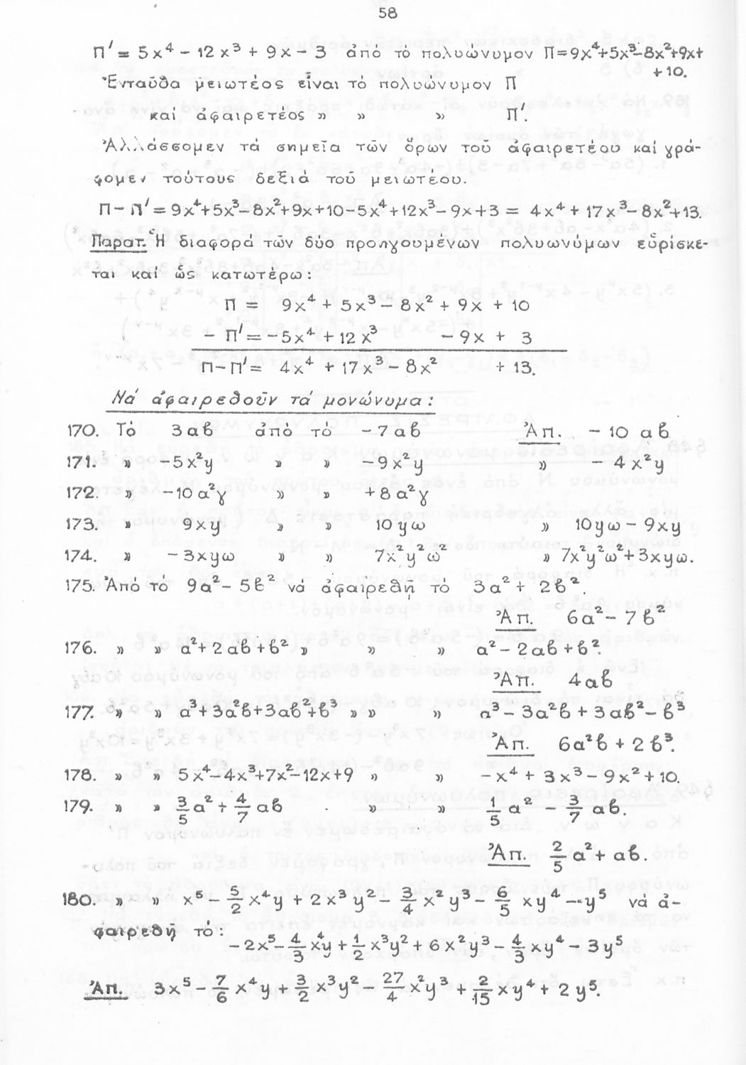 Μαθητικό βοήθημα Μαθηματικών για τα Γυμνάσια και Λύκεια που εστιάζει στις αλγεβρικές παραστάσεις, τις δυνάμεις, τα πολυώνυμα, τις ταυτότητες, και τα αλγεβρικά και σύνθετα κλάσματα. Περιέχει και ασκήσεις.